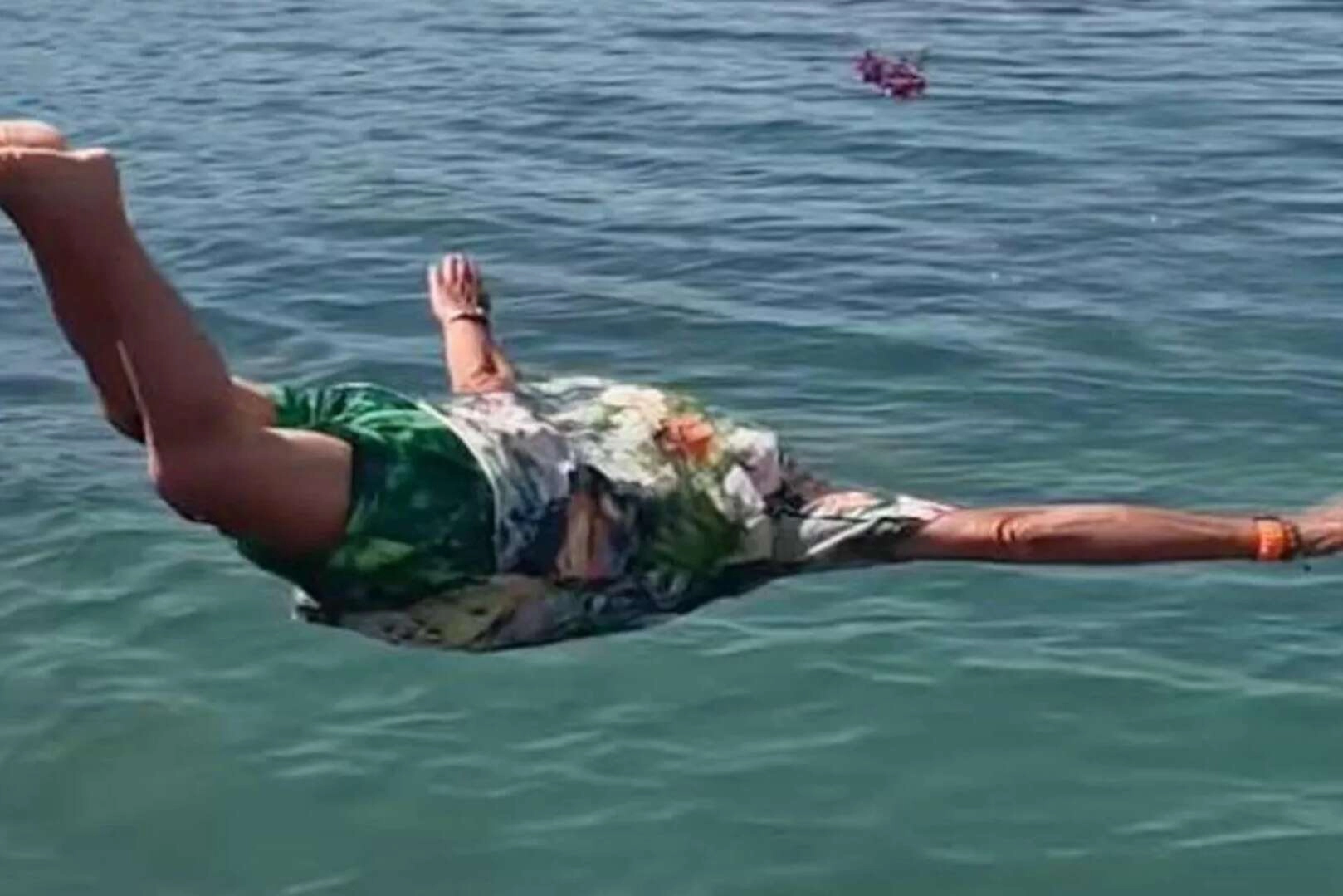Denize atladığı anları takipçileriyle paylaşan 76 yaşındaki Fedon, "Ve Fedon denize düştü" ifadelerini kullandı.