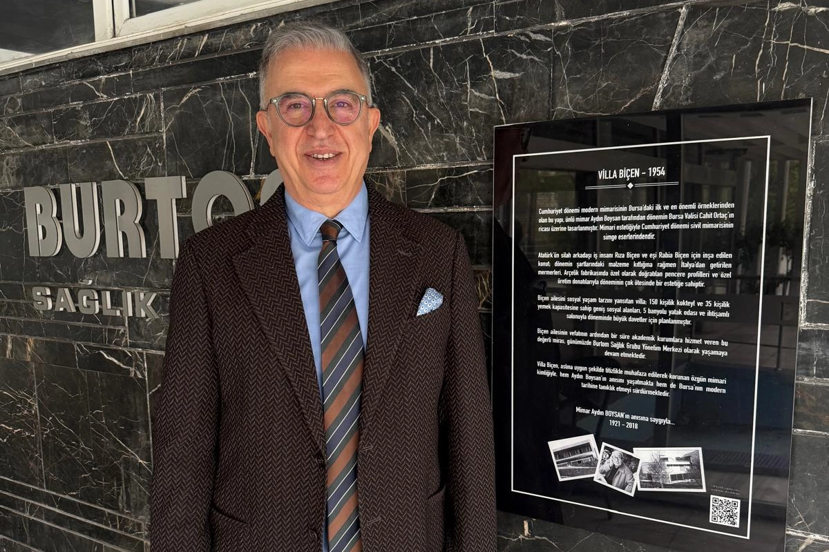 “Villa Biçen, sadece bir yönetim binası değil; Aydın Boysan’ın Bursa’ya bıraktığı en kıymetli modern mimari miraslardan biridir. Bizler, bu değerli mirası aslına uygun şekilde korurken, bugün bina girişine yerleştirdiğimiz anı plakasıyla hem usta mimarımıza bir saygı duruşunda bulunuyor, hem de bu yapının tarihi kimliğini kayıt altına alıyoruz. Burtom Sağlık Grubu olarak, sağlık hizmetinde, ülke geneline yaygın çalışmalarımızda yönetim merkezi olarak kullandığımız Villa Biçen’i, aslına uygun şekilde titizlikle muhafaza ediyor ve bakımını severek üstleniyoruz. Bu plaka, Bursa’nın kültürel mirasını koruma konusundaki kararlılığımızın ve bu simge yapıya duyduğumuz saygının kalıcı bir nişanesidir. Villa Biçen’in özgün mimari kimliği ile hem binanın mimarı Sayın Aydın Boysan‘ın anısını yaşatıyor, hem de Bursa’nın modern tarihine ışık tutmaya çalışıyoruz.”