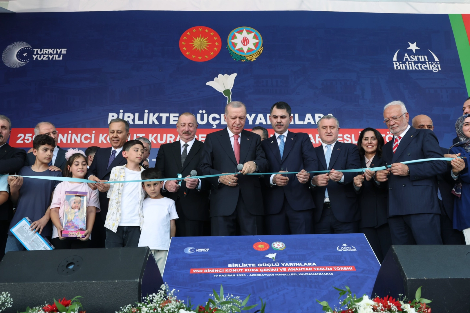 Asrın felaketi, 6 Şubat depremlerinin merkezi Kahramanmaraş ağır hazar almıştı. Depremin hemen ardından Azerbaycan bölgeye önemli miktarda yardım malzemesi ve arama kurtarma ekipleri gönderdi. Azerbaycan hükümeti ayrıca Kahramanmaraş'ta bin 183 konut ve bin 595 dükkandan oluşan Azerbaycan'ın Mahallesi'nin inşasını üstlendi. İnşası tamamlanan konut ve dükkanlar bugün Cumhurbaşkanı Recep Tayyip Erdoğan ve Azerbaycan Cumhurbaşkanı İlham Aliyev'in katıldığı törenle hak sahiplerine teslim edildi. Törenle ayrıca depremin etkilendiği illerde TOKİ tarafından yapımı tamamlanan 49 bin 56 iş yeri ve konutun da kurası ve anahtar teslimleri gerçekleştirildi. Kurası çekilen ve anahtar teslimleri yapılan konutlarla birlikte toplam teslim edilen konut sayısı 250 bini geçti. "53 BİN 735 CANIMIZI TOPRAĞA VERDİK. Burada konuşan Cumhurbaşkanı Recep Tayyip Erdoğan, 6 Şubat depremlerinde 53 bin 735 canın toprağa verildiğini hatırlatarak, "Türkiye ile Azerbaycan arasındaki gelecek birliğinin en somut örneklerinden biri, açılışını yaptığımız konutlardır. Biliyorsunuz, 6 Şubat 2023'te tarihimizin en büyük doğal afetlerinden birini yaşadık. Geçmişten bugüne pek çok acı hatıralarımız oldu. Ama o sabah 11 ilimizde gördüğümüz yıkım ve elem hepsinden ayrıydı. 12.796'sı Maraş'ta olmak üzere 53.735 canımızı toprağa verdik. Rabbim bizlere böyle bir acıyı tekrar yaşatmasın diyorum. Bu vesileyle depremde hayatını kaybeden kardeşlerimize bir kez daha Allah'tan rahmet, gelecek kalan kardeşlerime sabırlar diliyorum. Hamdolsun depremin ilk anından beri inancımızı hiç yitirmedik. Yaşadığımız imtihan karşısında bir gün bile ümitsizliğe kapılmadık. Milletimizle gönül gönüle verdik ve süratle kendimizi toparladık. Şimdi sevgili edeler, bu zorlu süreçte ülkemizin imdadına ilk koşanlardan biri canlı Azerbaycan'dır. Felaketin haberini alır almaz, seninleyim Türkiye'm diyerek, Kardeşlik örneği başlatan, arabasının tavanına varını yoğunu sararak milletimize yardım etmeye çalışan, duaları, destekleri, samimi gözyaşlarıyla acımızı paylaşan Azerbaycan halkının dayanışmasını hiçbir zaman unutamayız ve unutmayacağız. Özellikle İlham kardeşimiz ve saygıdeğer refikası Mehriban Hanım'ın yardım seferberliğimize verdiği güçlü katkının gönlümüzde hep ayrı bir yeri var "dedi. "Tarihi alanları aslına uygun şekilde yeniden ayağa kaldırıyoruz" Erdoğan, tarihi yapıların aslına uygun olarak yeniden ayağa kaldırıldığını ifade edip, "Çok değerli misafirler, işte buradaki gibi projelerle asrın felaketinde yıkılan şehirlerimize umut, geleceğimize güven verecek yeni ortamları inşa ediyoruz. Konut projelerinin yanında sosyal donatı alanları, altyapı projeleriyle yeni yaşam alanları kuruyoruz. Tarihi alanları aslına uygun şekilde yeniden ayağa kaldırıyoruz. Kahramanmaraş'ta, Kapalı Çarşı'da tescilli kültür varlıklarımızı restore ediyoruz. Tarihi demirciler çarşısında iş yerlerimizi yapıyoruz. Adıyaman'da tarihi kent meydanımızı, Malatya'da Şire Pazarı, Kuyumcular Çarşısı, Yüzüncü Yıl ve Bakırcılar Çarşısı'ını, Hatay'da Uzun Çarşı'yı, Habibi Neccar Camii'mizi, yüzlerce yıllık Kemalpaşa ve Kurtuluş Caddelerini tarihi kimliğine uygun olarak ihya ediyoruz" dedi. YIL SONUNDA HEDEF 453 BİN BAĞIMSIZ KONUT Erdoğan hiçbir ülkenin böyle büyük bir afetin altından bu denli hızlı bir şekilde kalkamayacağına vurgu yaparak, yılsonuna kadar 453 bin bağımsız konutu tamamlamayı hedeflediklerini dile getirdi. Erdoğan, "Hiçbir ülke böyle büyük bir afetin altından bu denli hızlı kalkamaz. Felaketin ilk gününden bu yana adeta bir Avrupa ülkesi büyüklüğündeki alanı inşa ettik. On bir ilimizde kurulan şantiyelerde yüz binler Mimar, mühendis ve işçi kardeşimiz gece gündüz çalıştı. Asrın inşası faaliyetlerinde teslim ettiğimiz yuvaların sayısı her geçen gün artıyor. İşte sizler de görüyorsunuz. Muhalefet tamamen kavgasıyla meşgulken biz altyapısı, üstyapısıyla tamamladığımız konutları hak sahipleriyle buluşturuyoruz. Teslim ettiğimiz konut, köy evi ve iş yeri sayısını Eylül'de yüz bine, ekimde 100 Kasımda 155 bine, ocakta 200 bir bine çıkardık. Bugün bu rakamı 250 bine yükseltiyoruz. 2025 yılı sonunda hedefimiz 453 bin bağımsız bölümü bitirmektir." Şeklinde konuştu. "2 TRİLYONU AŞAN YATIRIM YAPTIK" Erdoğan şuana kadar deprem bölgesinde 2 trilyonu aşan yatırım yaptıklarını ifade ederek, "Şimdiye kadar deprem bölgemizde 2 trilyon lirayı aşan yatırım yaptık. Asrın felaketi, tamamen ortadan kalksın diye 2025 bütçemizde 584 milyar liralık kaynak ayırdık. Yıl sonunda tüm şehirlerimizi yeniden ayağa kaldırmayı, geride yarım kalan tek bir hikaye bırakmamayı hedefliyoruz Muhalefet anlamasa da yaşadığımız süreç milli mücadele ile eş değerdir. Ve biz Allah'ın izniyle bu mücadeleyi alnımızın akıyla veriyoruz. Ne diyorlardı? Hükümet bu enkazın altında kalkamaz. Bu muhterislere rağmen, azimle, sabırla, kararlılıkla çalışıyoruz. Her zaman söylüyorum, herkesin denizi ufku kadardır. Her seçim döneminde bol keseden adım tutan, Şimdi deprem bölgesinin yolunu dahi hatırlayamayanların ufku da ancak sandıkları kadardır. İşleri bitince maalesef millet akıllarına da iyi gelmiyor. Koltuk kavgasından, rant mücadelesinden, Başlarını bile kaldıramıyorlar. Gerçekten acınacak haldeler. Kardeşlerim bizim pusulamız hiçbir zaman muhalefet olmadı. Biz yirmi üç yıldır olduğu gibi yine sadece işimize bakıyoruz. Onlar umutsuzluk yayacak. Biz afetlerde kardeşimizin umudu, yoldaşı, kader arkadaşı olacağız. Onlar yapamazsınız diyecek. Biz şehirlerimizi hep birlikte daha güçlü biçimde ayağa kaldıracağız. Onlar enge