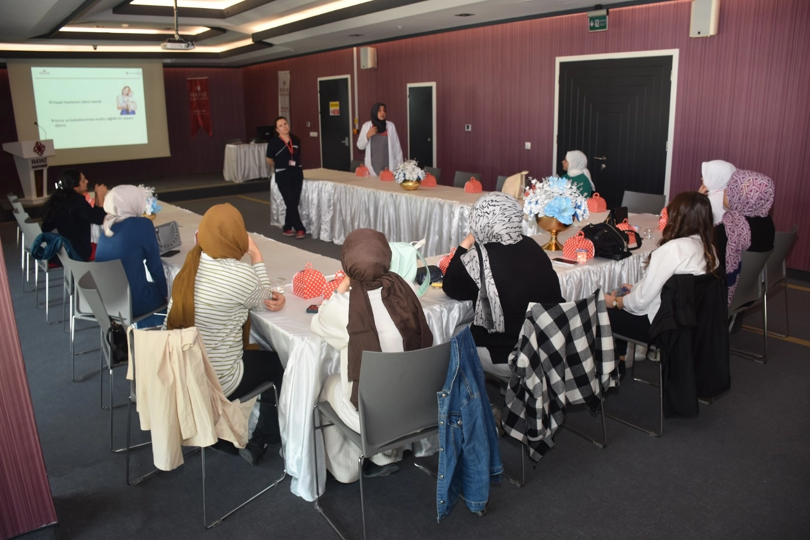 Hayat Hastanesi konferans salonunda anne adaylarının katılımıyla gerçekleştirilen 14. Gebe Okulu’nda, bebeklerine kavuşmayı bekleyen anne adaylarına, gebelik ve doğum süreci ile doğum sonrasında fiziksel ve psikolojik olarak yaşayacakları değişikliklere ilişkin bilgiler verildi.