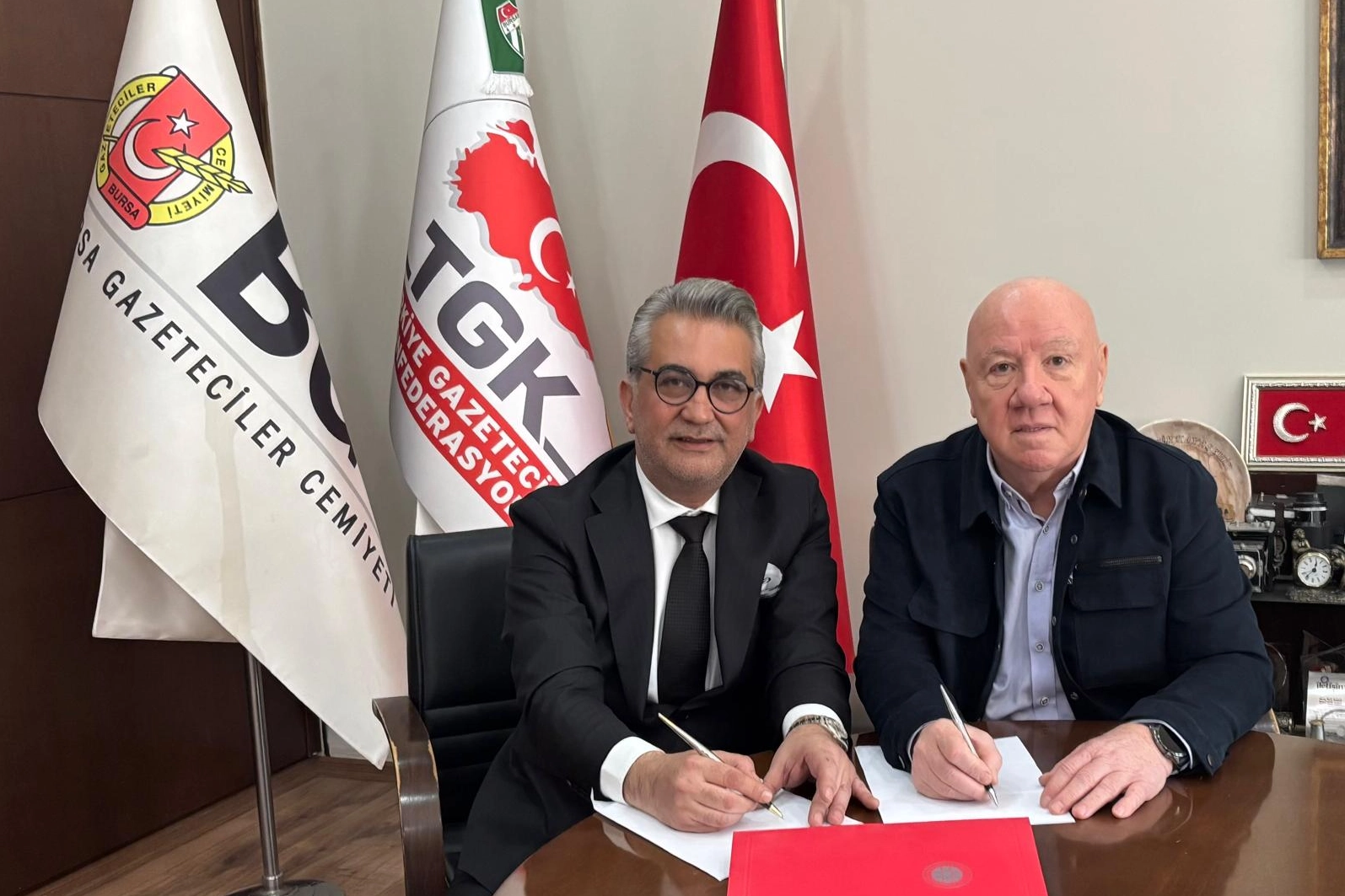 BGC Merkezi’nde, Bursa Gazeteciler Cemiyeti Başkanı Nuri Kolaylı ile NEV Sağlık Grubu Yönetim Kurulu Başkanı Dr. Ergin Kopal tarafından imzalanan yeni protokole göre, cemiyet üyeleri ve birinci derece yakınları sağlık hizmetlerinden yüzde 20 ile yüzde 50 arasında değişen oranlarda indirimli yararlanacak.