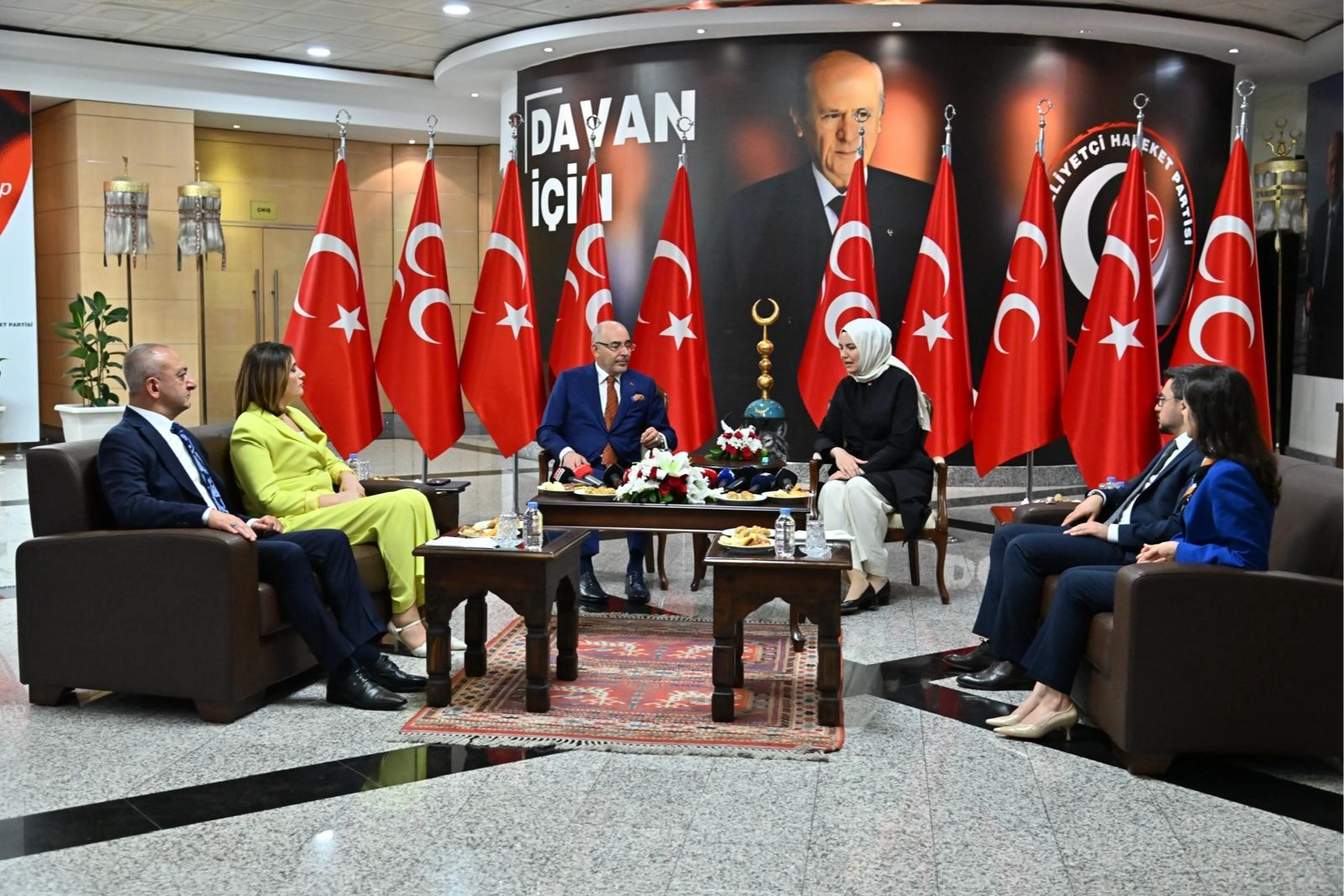 Kurban Bayramı çerçevesinde siyasi partilerin bayramlaşması başladı. Bu kapsamda AK Parti Ankara Milletvekili Zeynep Yıldız, Genel Merkez Kadın Kolları MKYK Üyesi Derya Öztekin, Genel Merkez Gençlik Kolları MKYK Üyesi Sayın Salih Aydın'dan oluşan AK Parti heyeti, MHP Genel Başkan Yardımcısı Mevlüt Karakaya, Genel Başkan Başdanışmanı MKYK Üyesi Esma Özdaşlı, MYK Üyesi Fatih Çetinkaya'dan oluşan heyetle bayramlaştı.