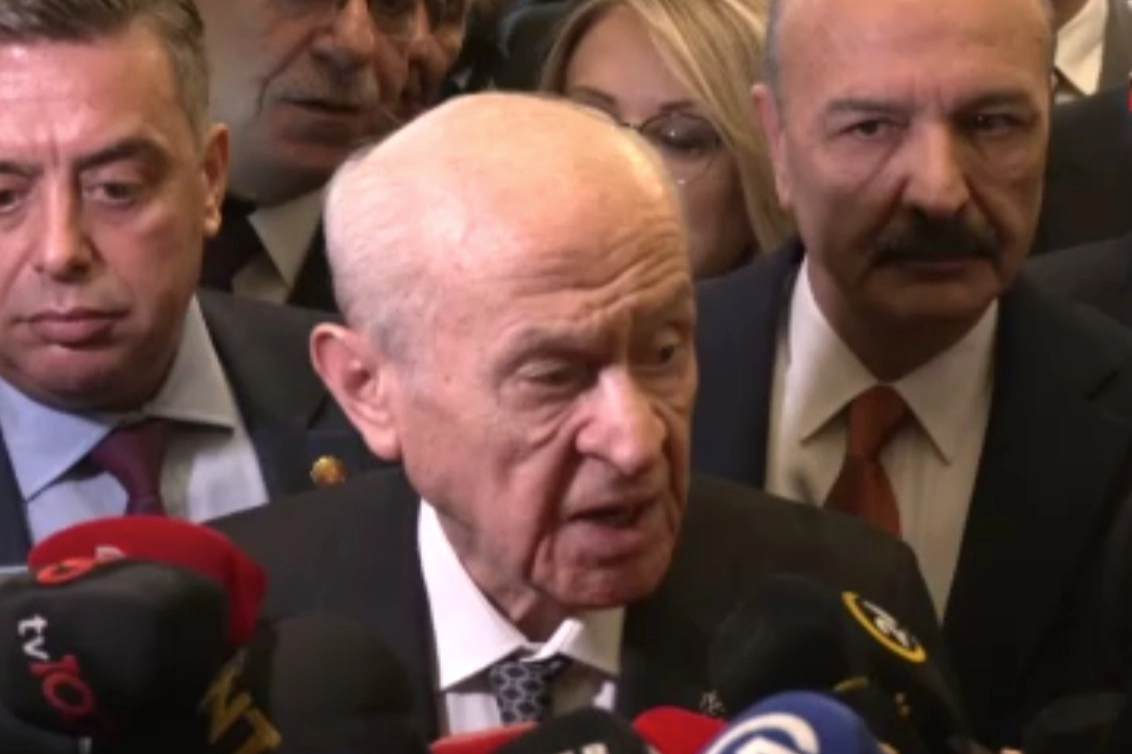 Bahçeli, TBMM MHP Grup toplantısı sonrasında gazetecilerin sorularını cevapladı. Bahçeli, Cumhurbaşkanı Erdoğan ile çözüm süreci konusun da ayrılık yaşayıp yaşamadıklarına ilişkin soruya, “Basın mensubu kardeşlerim Türkiye’yi tahrik edici, yanlış bilgilerle ayrımcı ve körükleyici davranışlardan vazgeçsin. Vazgeçemiyorsanız gazeteciliği bırakın” dedi