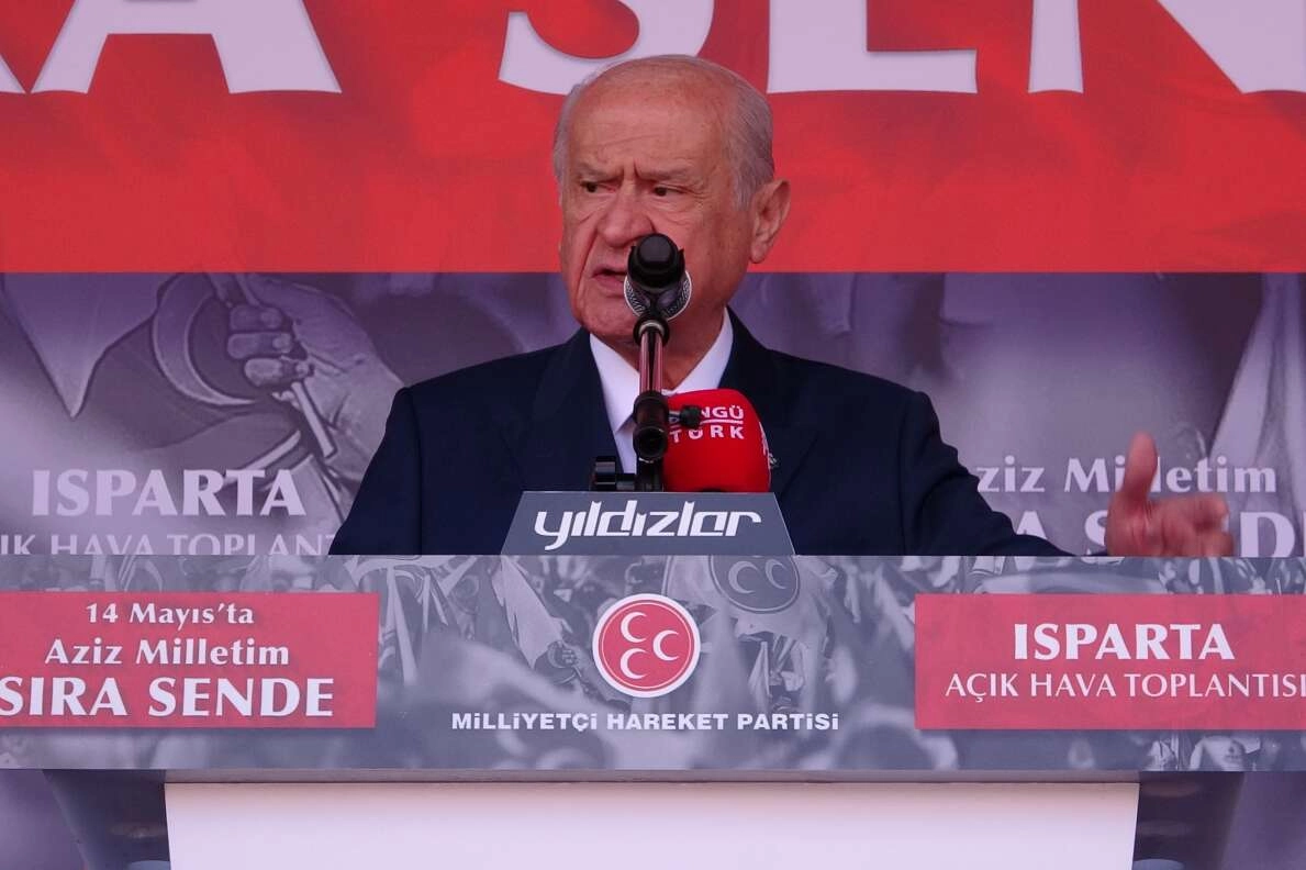 MHP Lideri Bahçeli, Cumhurbaşkanı adayı Kemal Kılıçdaroğlu'nun etnik ve mezhep tahrikçiliğine saptığını vurgulayarak” Demişti ki: “Milyonlarca Kürt'e terörist muamelesi yapılıyor. Peki Terörist Demirtaş ne demişti: “Kürtler potansiyel terörist muamelesi görüyor. HDP'li Pervin Buldan neyi söylemişti: “Halkı terörist görüyorlar.” Terörizmin Kürt kökenli kardeşlerimle ilişkilendirilmesi hakarettir, hıyanettir. Şu hususun önemle ve özellikle bilinmesini isterim ki, Kürt kökenli kardeşlerimle bölücü terör örgütü PKK'nın en küçük bağ ve bağlantısı yoktur. Kürt kökenli kardeşlerim Türk milletinin şerefli mensuplarıdır. Zillet ittifakı paydasında buluşan partilerin hepsinin ağzı PKK ağzıdır. Terörist Demirtaş ne diyorsa Kılıçdaroğlu aynısını tekrarlamaktadır. HDP'li Buldan neyi söylüyorsa İYİ Parti Başkanı onu iddia etmektedir. Bunlar menfur emel birliği içindedir. Bunlar küresel emperyalizmin dayatmalarına boyun eğmişlerdir. Alçak hedef sahipleri aklını başına alsın, Türk ile Kürt kardeştir, bölücü ve şifreli mesajlarla ayırmak isteyenler millet düşmanıdır. Bin yıllık kardeşlik hukukumuz üzerinde hesap yapanlara müsamaha gösteremeyiz. Fitneden nemalanan zillet partilerine hoş görüyle bakmayız, bakamayız. Kandil'e yuvalanmış PKK terör örgütünün ele başları Kılıçdaroğlu'na aleni destek açıklaması yapıyor. Biri susuyor, diğeri konuşuyor. Biri duruyor, diğeri başlıyor. Türkiye'den ve Türk milletinden intikam almak için fırsat kollayan ne kadar Türk düşmanı varsa aynı kuyrukta sıraya giriyor. Sayın Kılıçdaroğlu Isparta sana inanmayacak, milletimiz sana asla itibar etmeyecek. 14 Mayıs'tan sonra kalan ömrünü geçirmek için gideceğin tek yer de evindeki mutfağın olacak. Zillet ittifakı İmralı canisinin, FETÖ'nün, PKK'nın, Firavun'un, müstevlilerin, sömürgecilerin yanındadır, Milliyetçi Hareket Partisi ve Cumhur İttifakı Isparta'nın safındadır” açıklamalarında bulundu. Konuşmalarının ardından Milliyetçi Hareket Partisi İl Başkanlığı tarafından Devlet Bahçeli'ye özel olarak dokutulan üç bayrak motifli Türk Bayrağı halısı hediye edildi.