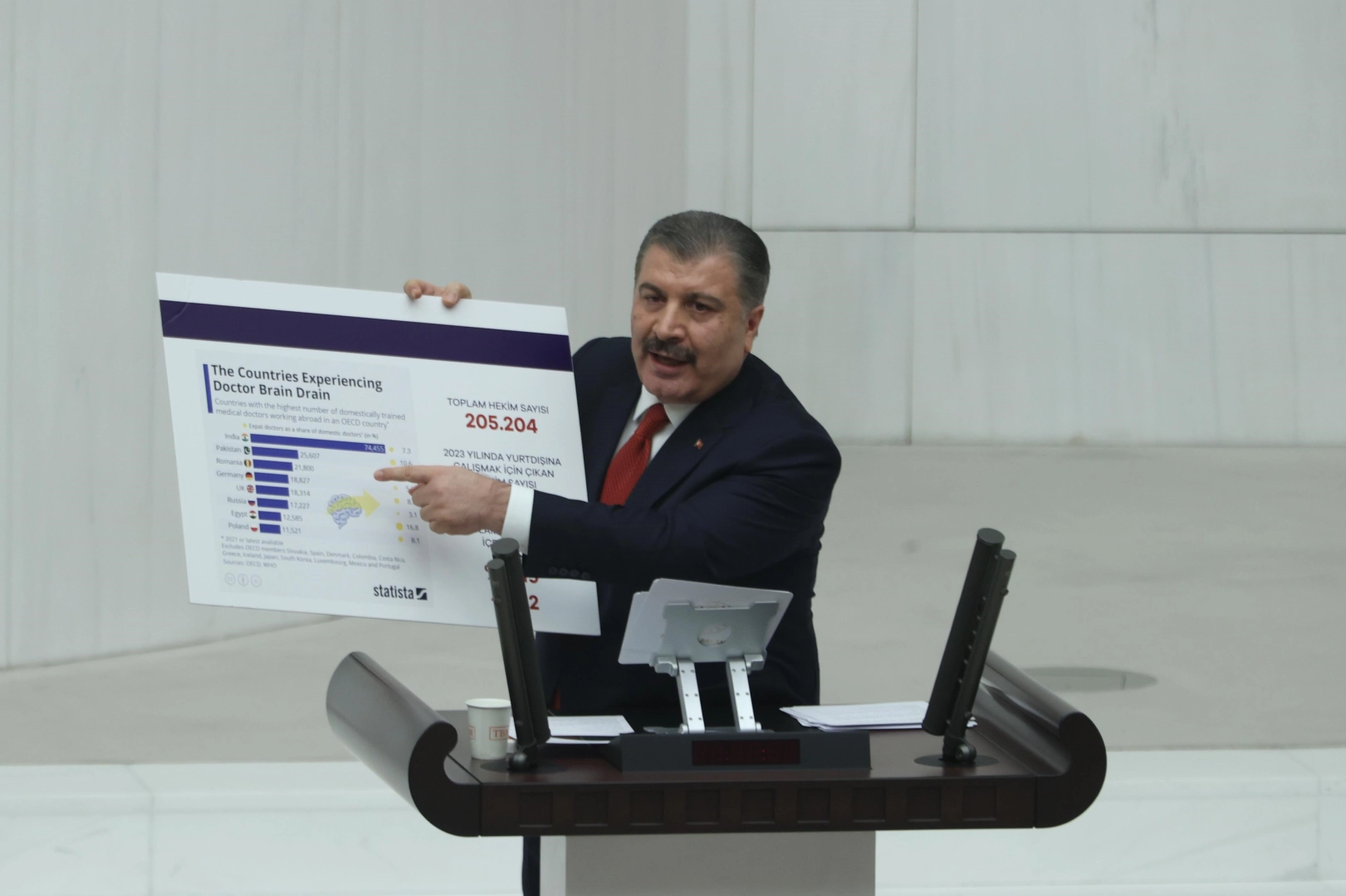 Sağlık Bakanı Fahrettin Koca, Türkiye Büyük Millet Meclisi (TBMM) Genel Kurulu’nda Sağlık Bakanlığının 2024 Yılı Bütçesi ve 2022 Yılı Kesin Hesabı görüşmelerinde milletvekillerine bilgi verdi. Koca, 6 Şubat’ta meydana gelen deprem sürecinde 50 bini aşkın yaralıyı deprem bölgesinden hava, kara ve deniz yoluyla güvenli alanlardaki hastanelere sevk ettiklerini ifade ederek, “Bu operasyon, dünyada ikinci bir örneği olmayan bir acil sağlık müdahalesi operasyonuydu. Dünya Sağlık Teşkilatı Genel Direktörü Tedros’un deprem bölgesini ziyaretinde hayretini ve şaşkınlığını saklayamadığı bir konuydu. ‘Bunu nasıl başardığınızı hepimize anlatın, örnek olun’ ricasında bulundu” ifadelerini kullandı. “Defne Devlet Hastanesinin yapımı başlarken ‘60 günde hastane yapılamaz, bu bir göz boyamadır’ propagandası yapıldı” Bakanlık olarak deprem bölgesinde yapılması gereken işlerin 'göz boyama' yaftasıyla karşı karşıya kaldığını ve bu sebepten dolayı en üzücü tecrübelerinden bir tanesini yaşadığını söyleyen Bakan Koca, “Defne Devlet Hastanesinin yapımı başlarken ‘60 günde hastane yapılamaz, bu bir göz boyamadır’ propagandası yapıldı. Temsili bazı görselleri gösterenler 'Yapacağınız hastane bu mudur?' dedi. Defne Devlet Hastanesi 60 gün dolmadan, 57’nci gününde hasta kabulüne başladı. İddia ve itham sahipleri hastaneyi ziyaret ettiler mi? Sözlerinden utandılar mı? Hakkımızı teslim ettiler mi? Milletimiz, hayır dualarıyla hakkımızı teslim etti. Hizmet, onun sahibine ulaştı” diye konuştu. Deprem bölgesinde 6 devlet hastanesi hizmete açıldı Bakan Koca, deprem bölgesinde 6 devlet hastanesinin hizmete açılmış vaziyette olduğunu kaydederek, “Bunlar; Defne, Samandağ, Arsuz, Hassa, İskenderun ve Belen Devlet Hastaneleridir. Antakya, Erzin, Altınözü, Payas, Oğuzeli, Nurdağı, Kahramanmaraş, Nurhak, Türkoğlu ve Çelikhan’da toplam bin 588 yatak kapasiteli 10 acil durum hastanemiz yaklaşık dört ay sonra hizmete açılacak. Hatay, Kahramanmaraş, Malatya Şehir Hastanelerinin proje çalışmaları başladı” diye konuştu. Beyaz Kod uygulamasının yanı sıra Gri Kod uygulamasının da pilot olarak başladığını belirten Koca, yapılan çalışmaların sonucunda Beyaz Kod sayısının bir milyonda 23’ten bir milyonda 12’ye indiğini ifade etti. Nadir hastalıklar için 'Hücre ve Gen Terapisi Hastanesi' kuracaklarını belirten Koca, böylece tedavinin Türkiye’de geliştirilerek uygulanacağını kaydetti. "2028’de tüm aşılar yüzde yüz Türkiye’de üretiliyor olacak" İnşaatı devam eden Hıfzıssıhha Aşı ve Biyoteknolojik Ürün Üretim Merkezi'nin tamamlanmasının ardından 2025 yılında pilot üretime başlayacağına dikkati çeken Bakan Koca, “Hedefimiz; ülkemizin ihtiyacı olan aşıların tamamının Türkiye’de üretilmesi. Çocukluk çağı bağışıklama programımızdaki 3 aşımız (Kuduz, Hepatit A ve Suçiçeği) teknoloji transferi ile ülkemizde üretilecek. Bağışıklama programındaki diğer tüm aşılar Hıfzıssıhha’da üretilecek. 2028’de tüm aşılar yüzde yüz Türkiye’de üretiliyor olacak” ifadelerini kullandı. Kamu-özel iş birliği ile yapılan şehir hastaneleriyle ilgili bitmek bilmez eleştiriler olduğunu ifade eden Koca, hazırlanan fotobloklar üzerindeki istatistikleri mecliste bulunan milletvekillerine gösterdi. Koca, hastanelerin kullanım bedelinde ödenebilecek en üst tavanın 27,5 milyar avroya, metrekare maliyetinin ise bugünkü değeriyle bin 465 avroya mal edildiğini kaydetti. Beyaz Reform uygulamasının ardından özel hastanede çalışan doktorların kamuya yönelişinde artış olduğunu belirten Koca, uzman hekim sayısının 7 bin 65 arttığını, özel sektörde çalışan uzman hekim sayısının ise bin 112 azaldığını vurguladı. İyi Hal Belgesi alan doktorlar ile ilgili ise Bakan Koca, 16 Aralık itibarıyla belge alan bin 51 doktordan 373’ünün yurtdışına çıktığını dile getirdi. "Tüm imkanlarımızla Gazze’deki kardeşlerimizin yanındayız" Bugüne kadar, 13 uçak ve iki gemi dolusu yardım malzemesini Gazze’ye ulaştırdıklarını belirten Bakan Koca, “İsrail ve Mısır sağlık bakanları ile yaptığımız görüşmeler sonucu kurmaya karar verdiğimiz üçlü koordinasyon ekibi ile Gazze’den öncelikle hasta çocuklarla kanser hastalarını ülkemize getirmeye başladık. Daha çok yara sarabiliriz. Bunun için, taraflarla olan diyaloğumuzu canlı tutarak erişebildiğimiz kadar mazluma erişip, onları tedavi etmeye çalışıyoruz. Evet, insanlığın onurunu tek başımıza koruyamayız ama yapabileceğimiz ne varsa yapmakta çok kararlıyız. Tüm imkanlarımızla Gazze’deki kardeşlerimizin yanındayız” ifadelerini kullandı.