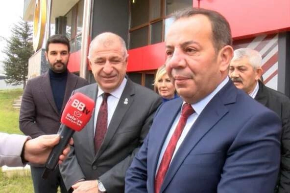 Bolu Belediye Başkanı Tanju Özcan, Zafer Partisi Genel Merkezi’nde Ümit Özdağ’ı makamında ziyaret etti. İkili basına kapalı olarak gerçekleşen görüşmenin ardından parti genel merkezi önünde açıklamalarda bulundu. Türkiye siyaseti üzerine Bolu Belediye Başkanı Özcan ile önemli konularda fikir alışverişinde bulunduklarını belirten Zafer Partisi Genel Başkanı Özdağ, partinin kuruluş sürecinin ardından Bolu’da kendisini ziyaret ettiklerini hatırlattı. Özdağ’ın hem partisini kurmadan önce hem de genel başkanlığı süresinde Bolu’da makamında ziyaret ettiğini aktaran Bolu Belediye Başkanı Özcan, iade-i ziyareti ancak şimdi gerçekleştirdiklerini söyleyerek çalışmalarında başarılar diledi.