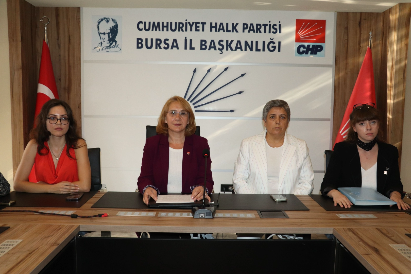 CHP Bursa İl Kadın Kolları Başkanlığı’nın, İl Başkanlığı’nda gerçekleştirdiği; kadın cinayetlerini ve son olarak Diyarbakır’da öldürülen 8 yaşındaki Narin Güran cinayeti ile ilgili basın açıklamasına CHP Bursa İl Kadın Kolları Başkanı Fatma Özgür, İlçe Kadın Kolları Başkanları ve İl Yöneticileri katıldı.