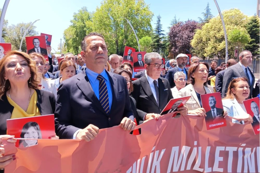 Cumhuriyet Halk Partisi (CHP) Grup Başkanvekilleri Gökhan Günaydın, Ali Mahir Başarır ve CHP milletvekilleri, belediyelere yönelik operasyonlara tepki göstererek Türkiye Büyük Millet Meclisi'nden (TBMM) Adalet Bakanlığına slogan atarak yürüdü. Belediyelere yönelik operasyonlara tepki gösteren CHP'li Grup Başkanvekilleri Gökhan Günaydın, Ali Mahir Başarır ve milletvekilleri, pankart ve afişlerle birlikte TBMM'den Adalet Bakanlığına yürüdü. Grup Başkanvekili Günaydın'ın açıklamalarının ardından CHP'li vekiller slogan atarak tekrar Meclise yürüdü.