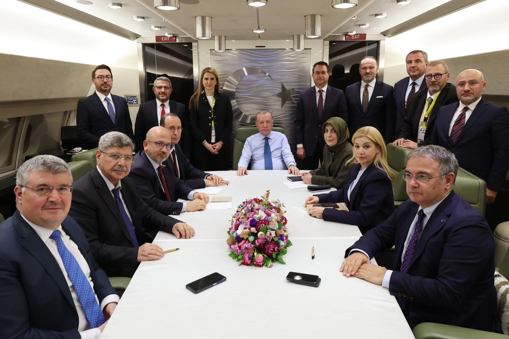 Cumhurbaşkanı Recep Tayyip Erdoğan, Suudi Arabistan ve Mısır ziyaretlerinin ardından uçakta gazetecilerin sorularını yanıtladı. Bölgesel istikrardan savunma sanayiine, deprem konutlarından su yönetimine kadar kritik açıklamalarda bulunan Erdoğan, özellikle İran-ABD gerilimi konusunda “Barışçıl diplomasiyi güçlendirmek zorundayız” uyarısında bulundu.
