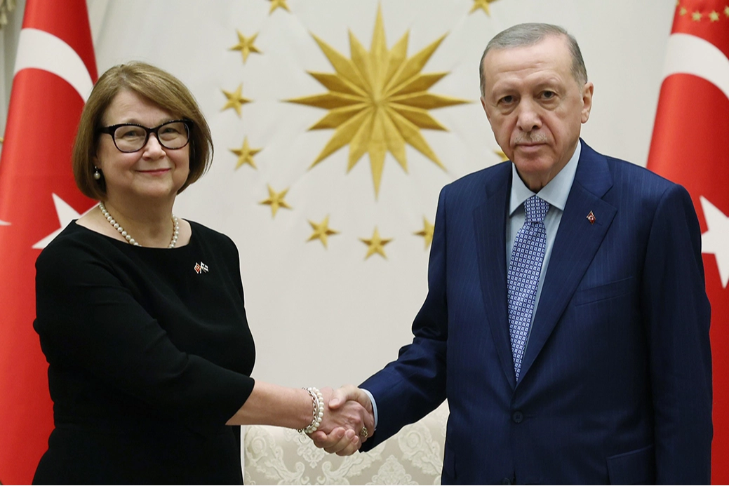 Cumhurbaşkanlığı Külliyesi’ndeki kabulde Finlandiya Büyükelçisi Pirkko Mirjami Hamalainen, Cumhurbaşkanı Erdoğan’a güven mektubu sundu. Hamalainen’in eşi ve bazı büyükelçilik mensuplarını Cumhurbaşkanı Erdoğan’a takdiminin ardından hatıra fotoğrafı çektirildi.