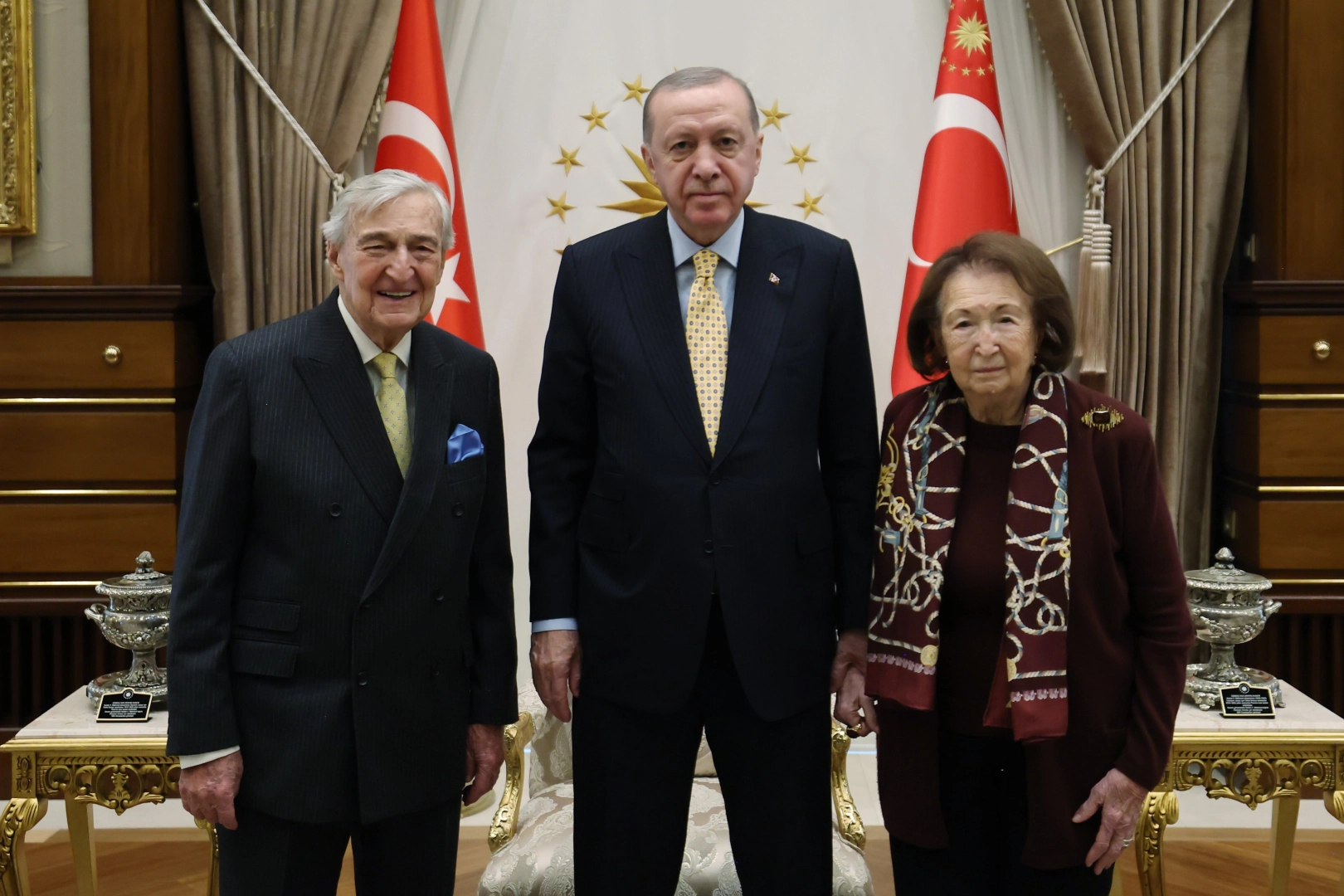 Cumhurbaşkanı Recep Tayyip Erdoğan, iş adamı Rahmi Koç ve Vehbi Koç Vakfı Yönetim Kurulu Başkanı Semahat Arsel'i Cumhurbaşkanlığı Külliyesi'nde kabul etti.