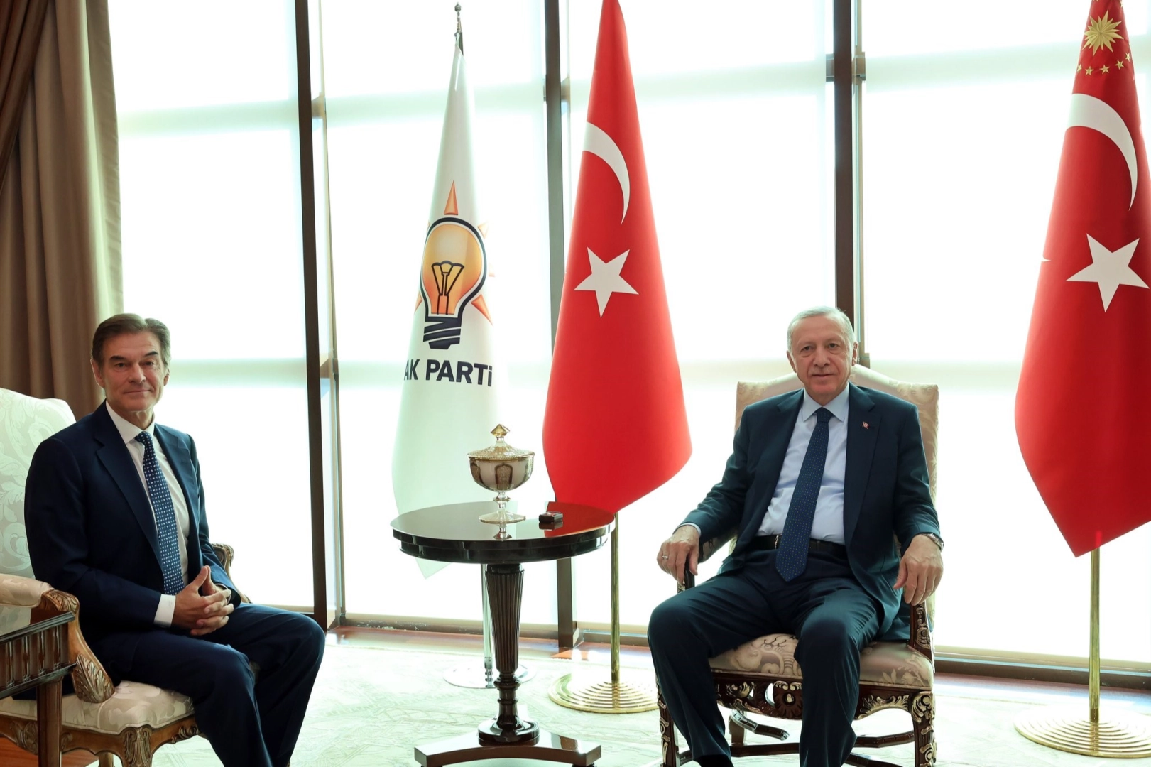 Cumhurbaşkanı Recep Tayyip Erdoğan, Türk kalp cerrahı Prof. Dr. Mehmet Öz'ü AK Parti Genel Merkezi'nde kabul etti.