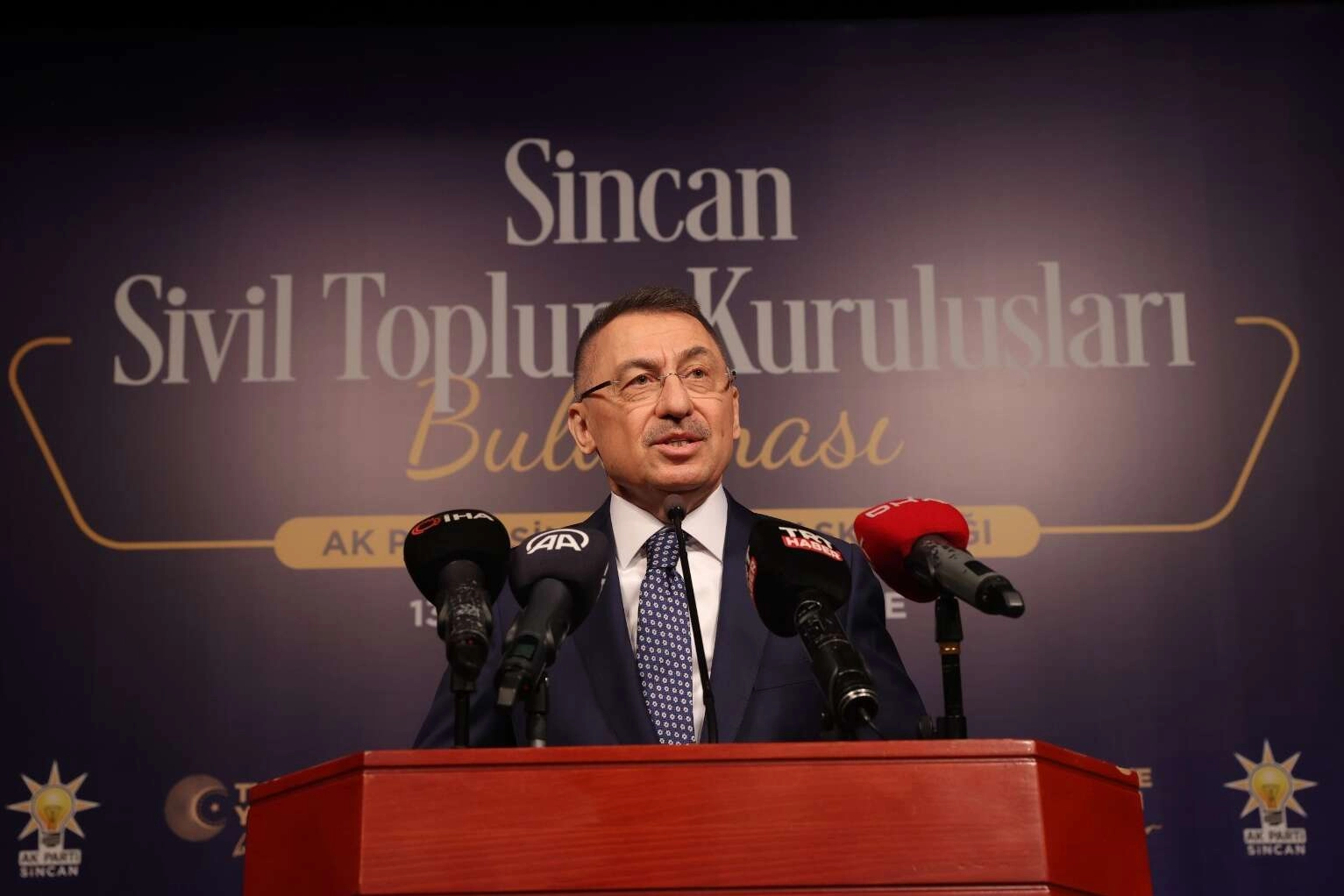 Cumhurbaşkanı Yardımcısı Fuat Oktay, Sincan’da sivil toplum kuruluşlarıyla buluştu. Burada bir konuşma yapan Oktay, Cumhurbaşkanı Erdoğan’ın STK’ların her zaman yanında olduğunu ve selamlarını, muhabbetlerini iletti. Ankaralı STK’lara, derneklere özel teşekkürlerini sunan Oktay sözlerini şu şekilde sürdürdü: