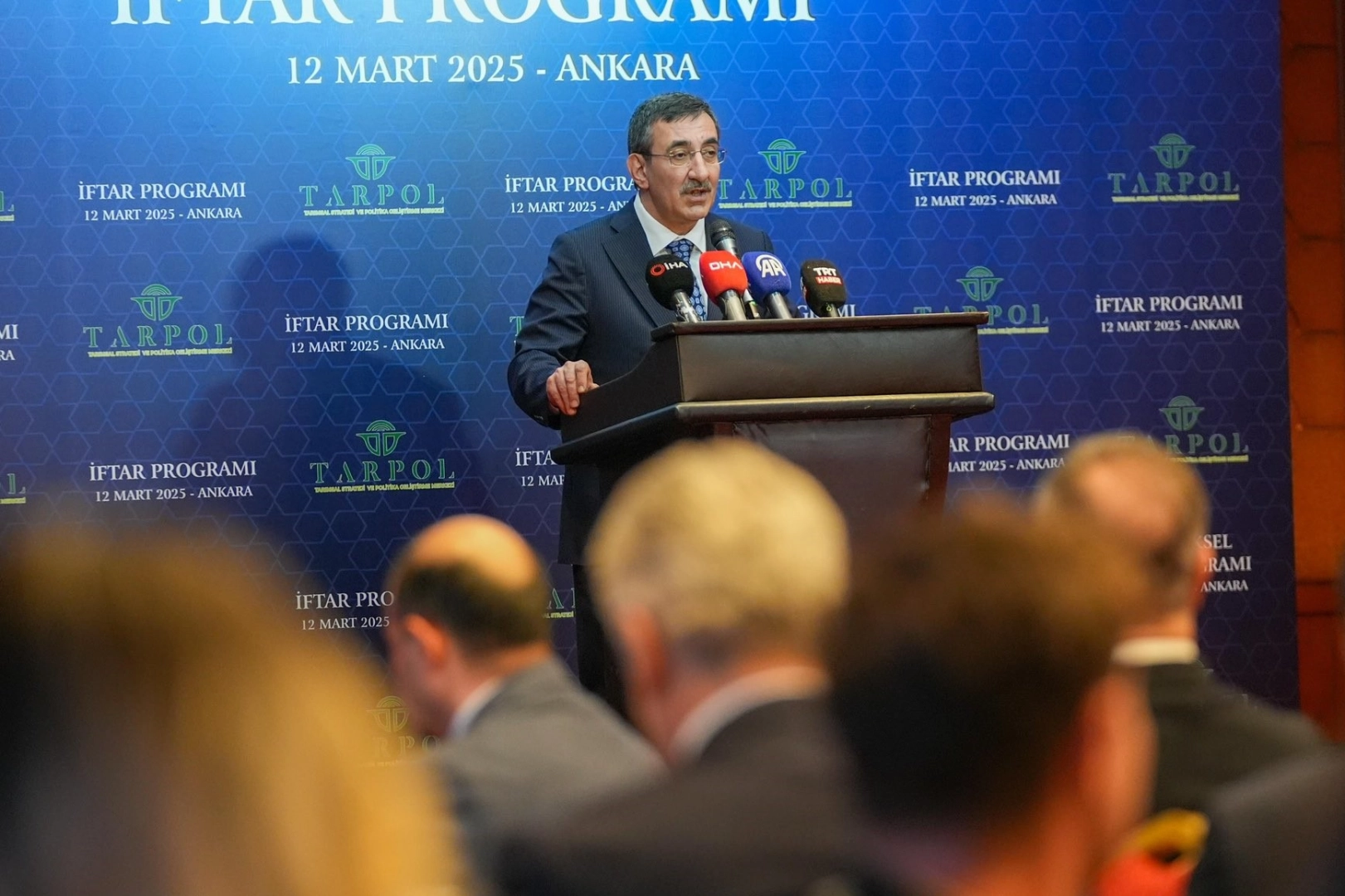 Cumhurbaşkanı Yardımcısı Cevdet Yılmaz, Tarımsal Strateji ve Politika Geliştirme Merkezi'nin TARPOL'un bir otelde düzenlediği iftar programına katıldı. Yılmaz, Ramazan, gönüllerin birleştiği, sofraların paylaşıldığı mübarek bir ay olduğunu vurguladı. İftar sofralarında yenilen her lokma, toprağın bereketinden, çiftçinin alın terinden, milletin dayanışmasından doğan bir nimet olduğunu belirten Yılmaz, "Sofralarımızın bereketi ancak tarlalarımızın bereketiyle mümkündür. Bu nedenle, toprağımızın ve çiftçimizin değerini bilmek, onları desteklemek ve tarımsal üretimi artırmak hepimizin ortak sorumluluğudur. Tarım ve gıda arz güvenliğini stratejik bir alan olarak değerlendiriyoruz. Modası hiçbir zaman geçmeyecek bir alan olarak addediyoruz. İnsanlıkla birlikte başlamış, insanlık var oldukça devam edecek bir alan olduğuna inanıyoruz. Tarımdaki dönüşüm, verimlik artışı, tarımdaki gelişme seviyesi aslında bir toplumun kalkınma seviyesini ortaya koymaktadır" diye konuştu. "Avrupa'dan Çin'e günümüz modern ekonomilerinin sanayi devriminden önce tarım devrimi ile bugünlere geldiğini unutmamalıyız" ifadelerini kullanan Yılmaz, "Bu çerçevede baktığımız zaman tarımı genel kalkınma perspektifimizin de çok önemli bir bileşeni olarak gördüğümüzü ifade etmek istiyorum. Tarımın bu tarihsel konumunun yanı sıra özellikle son dönemlerde iklim değişikliği, tedarik zincirlerinde kırılmalar, dünya nüfusunun geldiği nokta, afetler birçok unsurla birlikle gıda arz güvenliğinin çok önemli olduğunu görüyoruz. Pandemi, savaşlar, iklim değişikliği ve küresel tedarik zincirlerindeki kırılmalar, bize bir gerçeği tekrar hatırlattı: gıda arz güvenliğini sağlayamayan ülkeler, ekonomik ve sosyal olarak büyük bedeller ödemek zorunda kalıyor. Ukrayna-Rusya savaşında maalesef gıda arzının savaşlardan, jeopolitik gelişmelerden nasıl etkilendiğini gördük. Burada Sayın Cumhurbaşkanımızın inisiyatifi ile Tahıl anlaşması yapılması hem dünyadaki gıda fiyatlarının düşmesine hem de Afrika başta olmak üzere en fazla ihtiyaç duyan ülkelerin gıdaya erişimine büyük bir katkıda bulundu" diye konuştu. Tarımsal verimliliğin artık sadece bir kalkınma meselesi değil küresel güvenliğin ve jeopolitik dengelerin de önemli unsurlarından birisi olduğuna dikkat çeken Yılmaz, "Bu nedenle gıda arz güvenliğimizi sürdürülebilir bir yönetim modeliyle sağlamamız son derece önemlidir. Sürdürülebilir gıda arz güvenliği için, sadece üretim değil, aynı zamanda dağıtım, tüketim ve atık yönetimi gibi tüm süreçlerin de dikkate alınması ve bu süreçlerde işbirliği yapılması öne çıkıyor. Bu noktada, hükümetin görevleri olduğu kadar üniversitelerimizin ve TARPOL gibi düşünce üretim merkezlerinin de tarım alanında politika önerileri geliştirmesi ve bu önerileri hayata geçirecek projeler üretmesi gerekmektedir. Özellikle TARPOL'ün araştırma merkezi olarak bu alandaki öncü rolünü takdirle karşılıyor ve çalışmalarından dolayı tebrik ediyorum" dedi. "SON 22 YILDA GIDA VE TARIM ÜRÜNLERİNDE 107 MİLYAR DOLARLIK DIŞ TİCARET FAZLASI VERDİK" Cumhurbaşkanı Erdoğan liderliğinde, Türkiye tarım alanında güçlü bir yol haritası oluşturdu ve önemli kazanımlar elde ettiğine dikkat çeken Yılmaz, şunları kaydetti: "Bu süreçte, tarımsal üretimde modern teknolojilerin kullanımını yaygınlaştırarak, çiftçilerimizin rekabet gücünü artırmaya ve sürdürülebilir tarım uygulamalarını teşvik etmeye odaklandık. Son 22 yılda gıda ve tarım ürünlerinde 107 milyar dolarlık dış ticaret fazlası verdik. Tarım sektörü, genel ekonomimizde kritik bir mesele olan cari açık konusunda, Türkiye'ye sürekli katkı sağlayan, istikrar sunan alanlardan biri oldu. Ayrıca, Türkiye sebze üretiminde dünyada dördüncü, meyve üretiminde altıncı sırada yer alıyor. 206 farklı tarımsal ürün yetiştirebilen bir ülke olarak, bitkisel üretimimizi 2002 yılına göre yüzde 41 artırarak 2023 yılında 139 milyon tona ulaştırdık. Bu, Cumhuriyet tarihimizin en yüksek üretim rakamıdır." Tarımsal ihracatı artırmak için yeni pazarlar buluyor, çiftçileri destekleyen programları genişlettiklerini altını çizen Yılmaz, "Türkiye gibi geniş ve farklı ekolojik bölgelere sahip bir ülkede, bölgesel kalkınma politikaları tarımsal üretimin sürdürülebilirliği açısından ne denli önemli olduğunun da farkındayız. Bu bilinçle, GAP, KOP, DAP ve DOKAP gibi projelerle, her bölgenin kendi tarımsal potansiyelini en iyi şekilde değerlendirmesini sağlıyoruz" dedi. "Sulama yatırımları, üretim destekleri ve sanayi entegrasyonuyla, tarımı sadece daha verimli hale getirmekle kalmıyor, üreticilerin gelirini artırıyor, ihracat kapasitemizi güçlendiriyoruz" diyen Yılmaz, "Tarımsal kalkınmayı, Türkiye'nin güçlü ve sürdürülebilir büyümesinin ayrılmaz . Mesele sadece üretimi artırmak değil, tarımı geleceğe hazırlamak, onu bilimle, teknolojiyle ve akıllı sistemlerle yönetmektir. Su kıtlığı, iklim değişikliği, karbon ayak izi gibi küresel meseleler tartışılıyor. Yeşil ve dijital dönüşüm, tarımda verimliliği artıran, kaynak kullanımını optimize eden ve üreticiyi destekleyen yeni modelleri beraberinde getiriyor. Bu noktada, akıllı tarım teknolojilerine yatırım yaparak sensör destekli sulama sistemlerinden yapay zeka tabanlı tarımsal analizlere, gıda fiyatlarını öngören erken uyarı sistemlerinden blokzincir tabanlı tedarik zinciri yönetimine kadar birçok yeniliği devreye alıyoruz. Tarım ve Orman Bakanımız İbrahim Yumaklı ve ekibinin 'planlı tarım' kavramı ile verimliliğe odaklanan yaklaşımını makro politikalarımızın önemli bir bileşeni olarak görüyoruz" diye konuşt