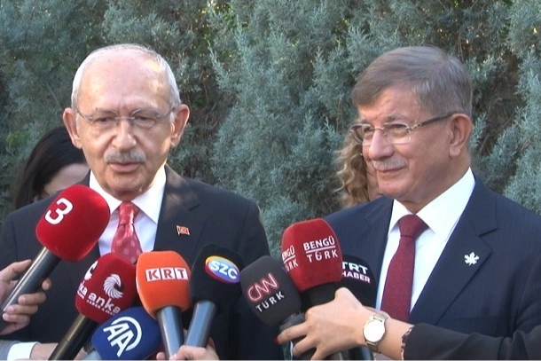 Gelecek Partisi Genel Başkanı Ahmet Davutoğlu, CHP'nin eski Genel Başkanı Kemal Kılıçdaroğlu'nu, Ankara'nın Çankaya ilçesinde bulunan ofisinde saat 16.00'da ziyaret etti. Görüşmenin ardından açıklama yapan Kılıçdaroğlu, "Türkiye'nin sorunlarını, ekonomiyi, teknolojiyi, dış politikayı, bürokrasiyi konuştuk. Dolayısıyla dertleştik. Çözümler konusunda da zaten daha önce 6 genel başkan ortak mutabakat metnini hazırlamıştık, o metin üzerinde de konuştuk. Onun da yeri ve zamanı geldiğinde güncellenmesi konusunda da düşüncelerimizi birbirimize aktardık” açıklamasında bulundu. Eski İzmir Belediye Başkanı Tunç Soyer'in CHP Genel Başkanlığı üzerine görüştüğü iddiaları sorulması üzerine Kılıçdaroğlu, “Onu Tunç Bey'e soracaksınız” ifadelerini kullandı. "Meral Hanım dava açacaksa açsın” Kılıçdaroğlu, Meral Akşener'in kendisine yönelik dava açacağı söyleminin de hatırlatılması üzerine, “Türkiye'nin bu kadar sorunu varken Meral Hanım dava açacaksa açsın” şeklinde konuştu.