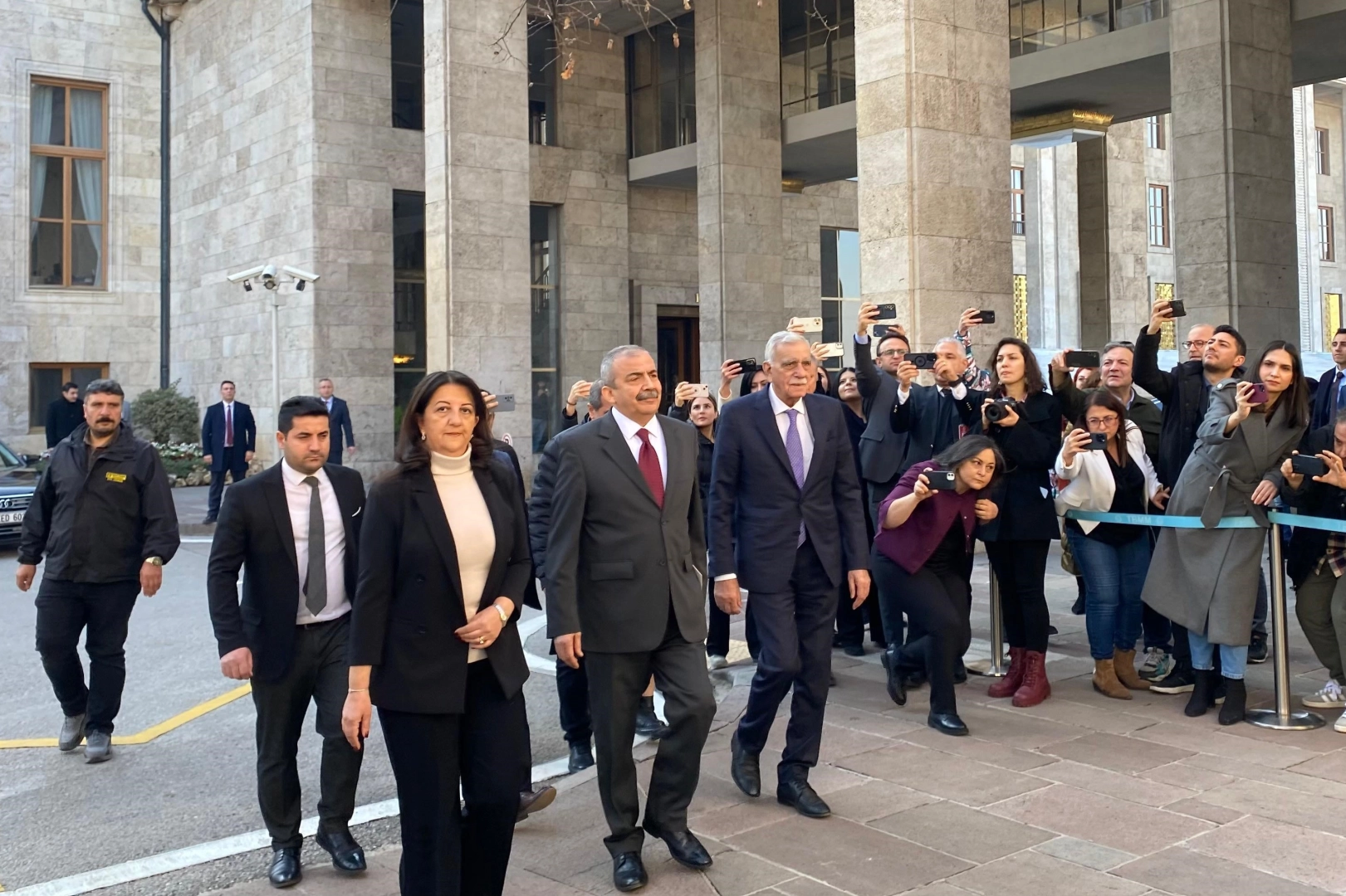 İstanbul Milletvekili Sırrı Süreyya Önder, Van Milletvekili Pervin Buldan ve eski Mardin Büyükşehir Belediye Başkanı Ahmet Türk’ten oluşan DEM Parti heyeti, İmralı’da terör örgütü PKK elebaşı Abdullah Öcalan ile yapılan görüşmenin ardından TBMM Başkanı Numan Kurtulmuş ile görüştü. Heyet, İmralı’daki görüşme sonrası ilk ziyaretini TBMM Başkanı Kurtulmuş’a yaptı. Basına kapalı gerçekleşen görüşme, yaklaşık 1 saat sürdü. Görüşmenin ardından basın mensuplarına açıklamalarda bulunan DEM Parti İstanbul Milletvekili Sırrı Süreyya Önder, “Sayın Meclis Başkanımız Numan Kurtulmuş Bey’i yaptığımız görüşme hakkında bilgilendirdik, önerilerini dinledik. Genel değerlendirme yaptık. Şimdi görüşmeler Sayın Bahçeli ile devam edecek. Sanırım pazartesi CHP, AK Parti ve TBMM’de temsil edilen bütün partileri ziyaret edeceğiz. Bunun zamanlaması randevularla şekillenir. Ziyaretlerden sonra heyet olarak kapsamlı açıklama yapacağız. Görüşmemiz iyi geçti, umutluyuz” dedi. Heyet, saat 15.00’te MHP Genel Başkanı Devlet Bahçeli ile görüşecek.