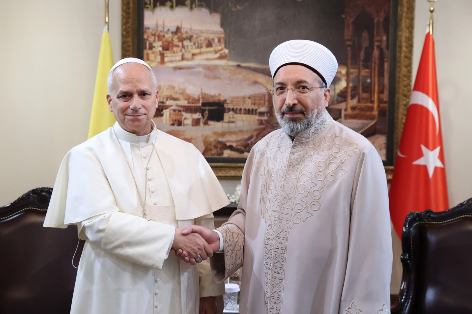 Vatikan Devlet Başkanı Papa 14. Leo, Diyanet İşleri Başkanı Safi Arpaguş'u makamında ziyaret etti. Ziyaret basına kapalı olarak gerçekleşti. Ziyarette, Din İşleri Yüksek Kurulu Başkanı Prof. Dr. Abdurrahman Haçkalı, Diyanet İşleri Başkan Yardımcıları Prof. Dr. Ahmet İshak Demir, Dr. Hafiz Osman Şahin ve Dr. Hüseyin Hazırlar da yer aldı.