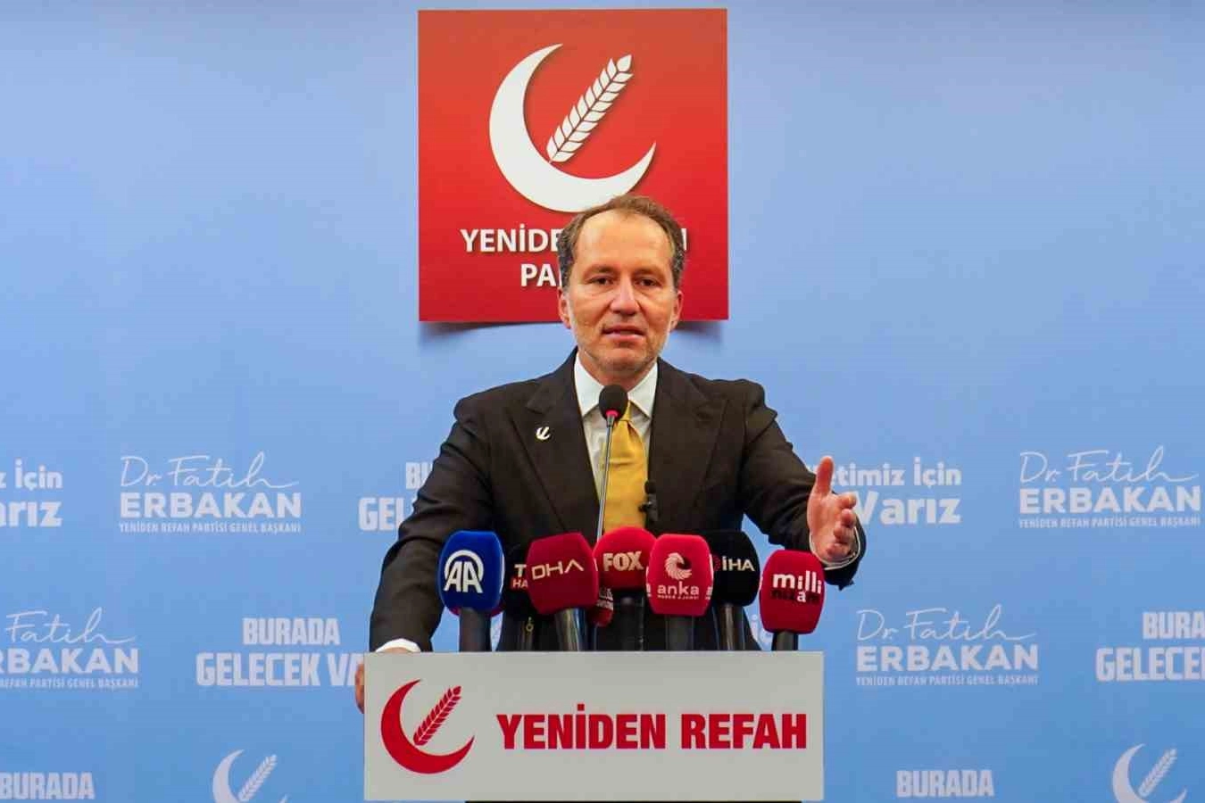 Yeniden Refah Partisi Genel Başkanı Fatih Erbakan, TBMM'de düzenlediği basın toplantısında MHP Genel Başkanı Devlet Bahçeli'nin teröristbaşı Abdullah Öcalan'a yönelik “Şayet teröristbaşının tecriti kaldırılırsa, gelsin DEM Parti grup toplantısında konuşsun, terörün bittiğini, örgütün lağvedildiğini ilan etsin” sözlerini eleştirdi. TUSAŞ'a düzenlenen saldırıya değinen Erbakan, şehitlere Allah'tan rahmet ve yaralılara şifa diledi. Erbakan, “Bizler terörü kimden, nereden gelirse gelsin, hangi amaçla neye hizmet ediyor olsun kınıyoruz, lanetliyoruz. Buradan hain emelleri herkesçe bilinen ihaneti tescilli PKK terör örgütünün milletimize ve devletimize asla diz çöktüremeyeceğini bir kez daha haykırıyoruz” şeklinde konuştu. Erbakan, TUSAŞ yerleşkesinin ön kısmında jandarma kontrol noktası olduğunu hatırlatarak, teriristlerin jandarma kontrol noktası ve plaka tanıma sistemini uzun namlulu silahlarla nasıl geçtiklerini sordu. Erbakan, “Bir güvenlik ve istihbarat zaafımız olduğu ve yetkililerin de ifade ettiği gibi terörün tam anlamıyla bitirilmiş olmadığını görmüş olduk. Tabii ki zaafların giderilmesi, tedbirlerin alınması ve olayın çok yönlü araştırılması gerekmektedir” ifadelerini kullandı. Erbakan, teröristbaşı Abdullah Öcalan'ın TBMM'ye davet edilmesine değinerek, “Böyle bir olay milletimizin terörle mücadelesine, şehitlerimizin hatırasına vurulmuş ağır bir darbedir. 40 senedir Türküyle, Kürdüyle bu kadar kayıplar, şehitler verdik, mücadele ettik. Güvenlik güçlerimiz gözünü, kulağını kaybetti, on binlerce yavru yetim kaldı, eşler dul kaldı. Ekonomik, maddi, manevi, sosyolojik olarak ne büyük bedeller ödedik. Bütün bu mücadele bunun için miydi sorusu elbette ki soruluyor. Terör örgütü eylemleri yüzünden bölge geri kaldı, işsizlik, fakirlik aldı başını gitti. Sadece Türkler değil, batıdaki vatandaşlarımız değil, doğudaki vatandaşlarımız, Kürt kardeşlerimiz terör örgütünden zarar gördü” dedi. Erbakan, çözüm için muhatapların siyasi partiler, STK'lar, kadim aşiretler ve Kürt vatandaşlar olduğunu belirterek, “Kürt kardeşlerimizin haklarının teslim edilmesi, bizim herkesten daha çok istediğimiz bir husustur. Milli görüş tarihi merhum Erbakan hocamızın bu konudaki konuşmalar ve icraatları hepinizin malumudur. Bütün bunlarla birlikte güvenlik güçlerimizden kundaktaki masum bebeklere kadar 50 bin insanın kanı elinde olan bir bebek katilinin, teröristin Türkiye Büyük Millet Meclisi'nde konuşturulması ve umut hakkından yararlanarak özgürlüğüne kavuşturulması her şeyden önce milletimizi ve devletimizi aciz gösterir. Böyle bir durum Türkiye'nin hayrına ve yararına değildir. Bu bir acziyettir, teslimiyettir, 40 yıllık mücadelemize ve şehitlerimizin aziz hatıralarına saygısızlıktır. Böyle bir şeyin gerçekleşmesi, teröristbaşından yardım istememiz anlamına gelir. Türkiye Cumhuriyeti Devleti'ni, ordumuzu, güvenlik güçlerimizi aciz gösterir. Terörle masaya oturulmaz, terörle pazarlık yapılmaz, teröriste söz verilmez, teröristlerin sözüne güvenilmez. Oslo sürecinde ve hendek olaylarında benzer süreçler yaşandı” dedi. PKK'nın tek başına lav edilmesinin işe yaramayacağını söyleyen Erbakan, “Yanımızda Amerika tarafından eğitilmiş, donatılmş, 140 bin kişilik terör ordusu konuşlandırılmışken, sadece PKK'da birkaç yüz kişinin silah bırakması bir anlam ifade etmeyecektir” diye konuştu.