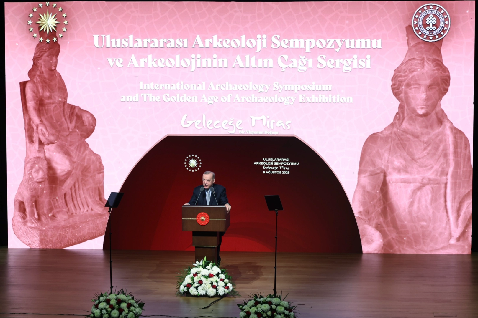 Cumhurbaşkanı Recep Tayyip Erdoğan, Beştepe Millet Kütüphanesi'nde gerçekleştirilen Uluslararası Arkeoloji Sempozyumu ve Arkeolojinin Altın Çağı Sergisi'nin açılışında konuştu. Cumhurbaşkanı Erdoğan, vefat eden eski Bayındırlık ve İskan Bakanı, Samsun eski Büyükşehir Belediye Başkanı ve 22, 23, 24. Dönem Samsun Milletvekili Mustafa Demir için taziye dileklerini ileterek sözlerine başladı. Sempozyum ve sergiye ilişkin değerlendirmelerde bulunan Cumhurbaşkanı Erdoğan, "Uluslararası Arkeoloji Sempozyumu ve Arkeolojinin Altın Çağı Sergisi münasebetiyle sizlerle bir arada olmanın bahtiyarlığını yaşıyorum. Türkiye'nin yanı sıra dünyanın farklı ülkelerinden programımızı teşrif eden her bir konuğumuza şükranlarımı sunuyorum" dedi.