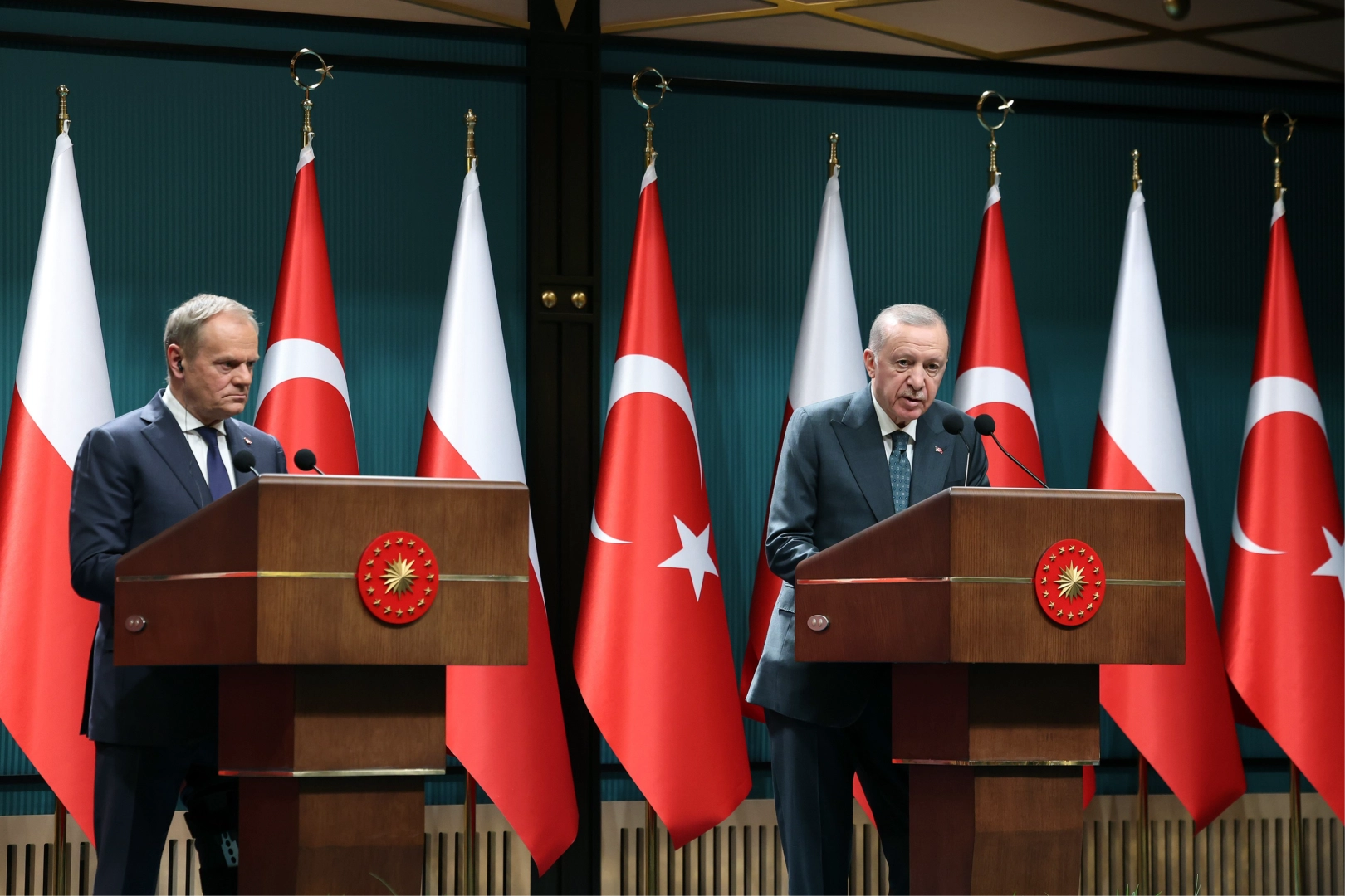 Cumhurbaşkanı Recep Tayyip Erdoğan, Polonya Başbakanı Donald Tusk ile ortak basın toplantısında konuştu. Cumhurbaşkanı Erdoğan, "Polonya ile 6 asrı aşan köklü tarihimizden aldığımız güçle, bugün bölgemizi ilgilendiren her konuyu açık yüreklilikle, iki müttefik ve stratejik ortak olarak ele aldık. Sayın Tusk ve heyetiyle yaptığımız görüşmelerde Türkiye-Polonya ilişkilerine güçlendirme ve çeşitlendirme irademizi teyit ettik. Bu yönde atacağımız müşterek adımları değerlendirdik" dedi. Önümüzdeki dönemde Polonya'ya bir ziyaret gerçekleştirmeyi öngördüklerini belirten Cumhurbaşkanı Erdoğan, "Ticaret, yatırımlar, savunma alanında işbirliği ve beşeri ilişkiler başlıklarında güçlü potansiyele sahibiz. Bugün bunları kapsamlı bir şekilde mütalaa ettik. Ukrayna'daki savaşın sona erdirilmesine yönelik atılabilecek adımları görüşme fırsatı bulduk. Avrupa güvenliğinin geleceğine dair gelişmeler ile Suriye ve Filistin dahil bölgesel meseleler hakkında fikir teatisinde bulunduk. 2024 yılında yaklaşık 12 milyar dolara ulaşan ticaret hacmimizi ve karşılıklı yatırımlarımızı daha da ileriye taşımakta kararlıyız. Yeni ticaret hacmi hedefi olarak 15 milyar doları tespit ettik" diye konuştu. Polonya'nın yurtdışı müteahhitlik sektörü için önemli pazarlardan biri olduğunun altını çizen Cumhurbaşkanı Erdoğan, "Şirketlerimizin üstlendiği projelerin sayısının artmasından memnuniyet duyduğumuzu burada özellikle ifade etmek isterim. Türkiye ve Polonya NATO'nun Avrupa'daki en büyük iki kara ordusuna komuta eden ittifakın doğu ve güney kanatlarında konumlanan iki kilit müttefiktir. Ülkelerimiz Avrupa'nın güvenlik mimarisinin geleceğinde vazgeçilmez yere sahiptir" dedi. Tusk ile Avrupa'da güvenliğin geleceğini de değerlendirdiklerini aktaran Cumhurbaşkanı Erdoğan, "Ülkelerimiz arasında hızla gelişmekte olan savunma sanayi iş birliğinin yeni projelerle güçlendirilmesine yönelik çalışmalara değindik. Münasebetlerimizin eğitim ve kültürden bilim ve turizme uzanan geniş bir alanda güçlendirilmesi dostluğumuzun geleceğine yapılmış mühim bir yatırımdır. İş insanlarımız ve öğrencilerimiz başta olmak üzere vatandaşlarımızın vize sorunlarının çözülmesine önem veriyoruz. Bu konuda değerli dostumun ilgisine güvendiğimi ifade ettim" ifadelerini kullandı. Tusk ile Polonya'nın Avrupa Birliği Konseyi dönem başkanlığı çerçevesinde Türkiye-Avrupa Birliği ilişkilerinin yanı sıra güncel, bölgesel ve küresel meseleleri ele aldıklarını da ifade eden Cumhurbaşkanı Erdoğan, "Avrupa Birliği'ne tam üyeliğin stratejik hedefimiz olduğunu her vesileyle vurguluyoruz. Avrupa Birliği ile işbirliğimizi karşılıklı fayda ve saygı temelinde ilerletme arzusunda olduğumuzu muhataplarımızla sık sık paylaşıyoruz" dedi. Mevcut tartışmaların bu işbirliğinin ne kadar kritik ve önemli olduğunu bir kez daha gösterdiğini vurgulayan Cumhurbaşkanı Erdoğan, "Şunu bugün bir kez daha açıkça söylemek isterim. Avrupa Birliği güç ve irtifa kaybının önüne geçmek, hatta tersine çevirmek istiyorsa bunu ancak Türkiye'nin tam üyeliği ile başarabilir. Polonya'nın üyelik sürecimize yönelik desteğini arttırarak sürdürmesine dair beklentimi Sayın Tusk ile paylaştım" ifadelerini kullandı. Rusya-Ukrayna savaşındaki son durumun da gündemlerinin en ön sıralarında yer aldığını bildiren Erdoğan, "Dün Amerika ile Ukrayna arasındaki görüşmelerde Ukrayna'nın ateşkesi kabul etmesini olumlu ve önemli buluyoruz. Şimdi Rusya'nın da bu adıma yapıcı şekilde mukabele etmesini temenni ediyoruz. Türkiye'nin bu savaşla ilgili tutumu ilk günden beri gayet sarihtir. Bir daha fazla kan akmamasını, her iki komşumuzun adil bir barışla savaşı sonlandırmasını istiyoruz. Son gelişme Rusya ve Ukrayna'nın müzakere masasına dönüşünü sağlarsa biz görüşmelere ev sahipliği yapmak da dahil adil ve kalıcı bir barışın tesisi için her türlü katkıyı sunmaya hazırız. Daha önce de ifade ettiğim gibi bölgemiz savaşa, çatışmaya ve gözyaşına doymuştur. Ümidimiz bölgemizin uzun bir süredir içinde bulunduğu cendereden bir an önce çıkması huzura ve istikrara kavuşmasıdır. Türkiye olarak bunun için çalışmaya inşallah devam edeceğiz. Başbakan Sayın Tusk'un ziyaretinin ikili ve çok taraflı iş birliğimize katkıda bulunmasını diliyorum. Kendisine ziyareti için teşekkür ediyorum. İstişarelerimizin hayırlara vesile olmasını temenni ediyorum" dedi.