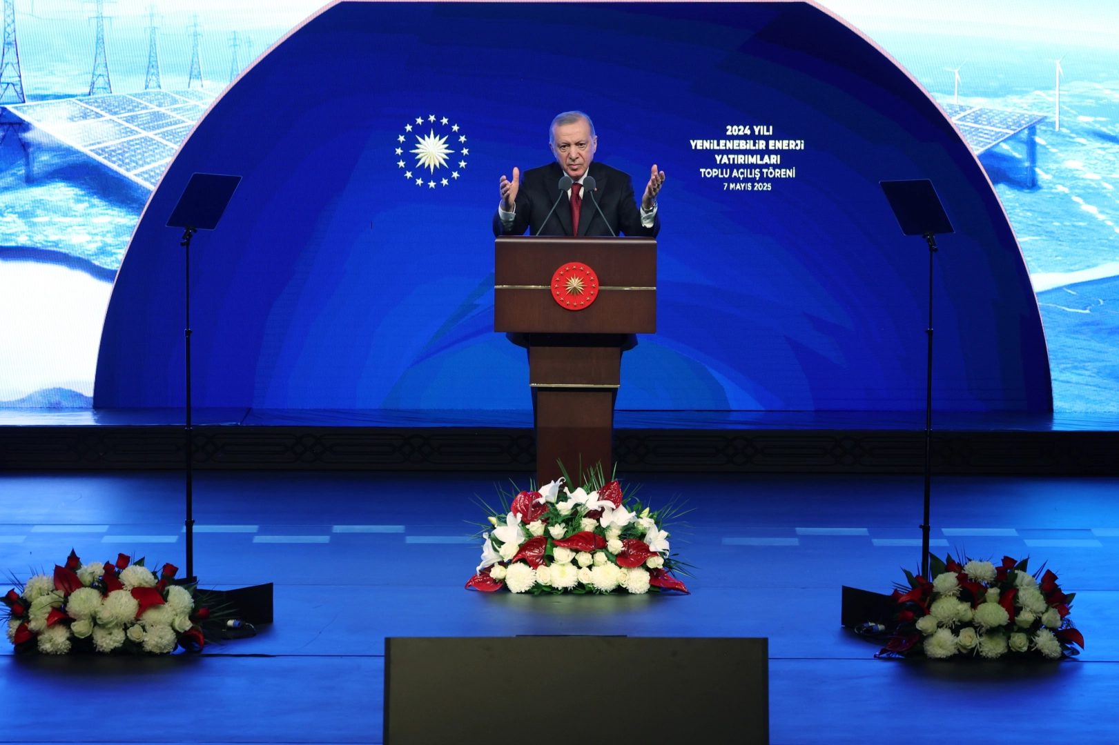 Daha doğrusu gözlerine bant çekmişler. Gerçekleri bal gibi bildikleri halde maalesef bunu dillendirmeye cesaret edemiyorlar. Kafasını kuma gömerek görünmez olduğunu zannedenlere bir an önce kaçtıkları hakikatle yüzleşmelerini tavsiye ediyoruz" dedi. Cumhurbaşkanı Recep Tayyip Erdoğan, Beştepe Kongre ve Kültür Merkezi'nde düzenlenen 2024 yılı yenilenebilir enerji yatırımları toplu açılış töreninde konuştu. Cumhurbaşkanı Erdoğan, programın düzenlenmesine katkı sunan Enerji ve Tabii Kaynaklar Bakanlığı’na, Bakan Alparslan Bayraktar’a ve tüm ekibine teşekkür etti. Geçtiğimiz hafta İstanbul’da gerçekleştirilen Doğal Kaynaklar Zirvesi’ne de değinen Erdoğan, zirvede enerji dönüşümünden madenciliğe, arz güvenliğinden kritik minerallere kadar birçok önemli başlıkta Türkiye’nin potansiyelini yeniden değerlendirme fırsatı bulduklarını vurguladı. Enerji yatırımlarında Türkiye’nin kararlı adımlar attığını kaydeden Erdoğan, "Ülkemizin enerji alanında farklı bir ivme yakaladığı herkes tarafından ifade ediliyor. Türkiye olarak enerjide adeta kendimizle yarış halindeyiz. Bugün de son yıllarda atılım yaptığımız yenilenebilir enerji alanında hizmete alınan projelerin toplu açılış merasimini gerçekleştiriyoruz. Törenimizin ve bugün resmen hizmete sunduğumuz yatırımların ülkemiz, milletimiz ve enerji sektörümüz için hayırlı olmasını diliyorum. Bu önemli yatırımları ülkemize kazandıran firmalarımızı, kurumlarımızı ve bakanlığımızı canı gönülden tebrik ediyorum" ifadelerini kullandı. Enerjinin ve özellikle enerji arz güvenliğinin günümüz dünyasında tüm ülkelerin en öncelikli konularından biri haline geldiğine işaret eden Erdoğan, "Dünyamız büyüyor, ekonomiler gelişiyor. Buna bağlı olarak enerji talebi de hızla artıyor. Bilhassa gelişmekte olan ekonomiler hem geçmişi telafi etmek hem de belli bir kalkınma düzeyine ulaşabilmek için dünya ortalamasının da üzerinde büyüme oranları kaydediyor" şeklinde konuştu. Cumhurbaşkanı Erdoğan, dünyada hızla artan enerji ihtiyacının tabiatta ciddi etkiler oluşturduğunu belirterek, "Enerji ihtiyacının her gün arttığı bir tabloda zaten küresel ısınma tehdidiyle karşı karşıya olan doğal çevreye yeni riskler eklenmektedir. Şu ikilemle giderek daha fazla muhatap oluyoruz. Bir taraftan hayatımızı devam ettirmek için daha fazla enerji kullanırken, diğer taraftan hayatımızı sürdürdüğümüz çevreyi tahrip ediyoruz" dedi. Küresel büyüme ve teknolojik gelişmelerle birlikte enerji ihtiyacının katlanarak arttığını söyleyen Erdoğan, enerji tüketimine paralel olarak artan sera gazı salınımlarının çevreye zarar verdiğini vurguladı. Erdoğan, "Tabii bir de buna küresel riskleri ve yaşam alanlarına yönelik tehlikeleri ilave ettiğimizde nasıl karmaşık bir sorunla yüzleştiğimiz daha net görülecektir. Uluslararası kuruluşların tamamı, ekonomik büyüme ve teknoloji ile birlikte enerji ihtiyacımızın da katlanarak artacağını söylüyor. Enerji kullanımına paralel olarak enerji sarfiyatından doğan sera gazlarının dünyamıza verdiği zarar da istikrarlı bir şekilde büyüyor" ifadelerini kullandı. Enerji kaynaklarına erişim konusunda rekabetin her geçen gün arttığını kaydeden Erdoğan, "Bu temel gerçeklerin bize anlattığı şudur değerli kardeşlerim; enerji talebimiz hızla yükselirken hidrokarbon başta olmak üzere temel enerji kaynaklarımız erimekte, yine aynı süreçte dünyamız kirlenmektedir. Ekonomik bakımdan gelişmiş devletler dahil dünyadaki tüm ülkeler enerji politikalarını bu tabloya göre planlamakta, adımlarını buna göre atmaktadır" dedi. Cumhurbaşkanı Erdoğan, enerji meselesinin yalnızca bir ekonomi ya da mühendislik alanı olmaktan çıktığını vurgulayarak, "Enerji kaynaklarına erişimle ilgili rekabet kızışırken enerji arz güvenliğini garanti etmeye yönelik çabalar yoğunlaşıyor. Fosil yakıtlar noktasında avantajlı konumda olan ülkeler bile rezervlerinin çok uzak olmayan bir tarihte biteceğini bilerek hareket ediyor. Mevcut durumda hepimiz şunu çok net görebiliyoruz. Arz güvenliği, enerji diplomasisi, kaynak çeşitliliği, sadece teknik meseleler değil, doğrudan milli güvenliğe dair konular olarak görülmeye başlanmıştır. Enerji arz güvenliğinin sağlanması hemen her devlet için bir beka meselesi haline dönüşmüştür" açıklamasını yaptı. Avrupa’nın bazı bölgelerinde yakın zamanda yaşanan enerji kesintilerinin enerjinin hayatımızdaki vazgeçilmez yerini bir kez daha gözler önüne serdiğini hatırlatan Erdoğan, "Geçtiğimiz günlerde Avrupa'nın kimi yerlerinde yaşanan kesintiler enerjinin hayatımızda tekabül ettiği vazgeçilmez yeri bir kez daha göstermiştir. Gelecekte enerji kaynakları üzerindeki rekabet daha da sertleşecek, daha yıkıcı bir hal alacaktır. Son yıllarda patlak veren krizlerin hepsinde enerji belirleyici role sahiptir" dedi. Cumhurbaşkanı Erdoğan, Afrika’dan Asya’ya, Orta Doğu’dan Latin Amerika’ya kadar pek çok bölgede tırmanan gerilimlerin enerji rekabetinden bağımsız değerlendirilemeyeceğini belirterek, "Bir damla petrolü oluk oluk akan insan kanından daha değerli gören zihniyet hiç değişmedi, hiçbir zaman değişmeyecek. Bunlar kendi rahatları, kendi güvenlikleri, kendi gelecekleri için mazlumların kanlarından beslenmeye unutmayın devam edecektir. Burada şunun altını bir kez daha çizmek istiyorum. Biz enerji meselesini bir rekabet unsuru olarak değil, çıkarların uzlaşacağı, herkesin fayda sağlayacağı bir işbirliği vesilesi olarak görüyoruz. Hep söylediğim gibi sömürmeye değil, beraberce kazanmaya talibiz. Hangi coğrafyada enerji hamlemiz varsa özünde işte böyle bir hassasiyet vardır. İnşallah bu hakkaniyet