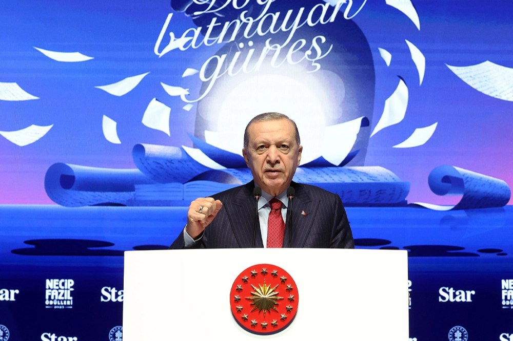 Programda konuşan Cumhurbaşkanı Recep Tayyip Erdoğan, “Kaleme aldığı eserlerle zor zamanlarda verdiği mücadeleyle merhum üstadımız deha derecesinde inşa kudretine sahip mümtaz bir şahsiyetti. Şiirden nesire, tiyatrodan hikayeye edebiyatın her alanında eser veren bir münevverdi. Üstadımızın emaneti değerli dostumuz Mehmet Kısakürek'i de burada rahmetle anıyorum. Ekol haline gelmiş değerlerimizin vefatları geride doldurulması çok güç boşluklar bırakıyor. Yeni yetişen gençlerimizin üstatlarından aldığı emaneti hakkıyla taşıyıp kendinden sonrakilere en güzel şekilde teslim edeceğine inanıyorum. İşte bu noktada Necip Fazıl Ödülleri büyük bir önem arz etmektedir. 10 ayrı kategoride ödülleri tevcih edeceğiz. Üstad Necip Fazıl, siyasi, sosyal ve kültürel bakımdan Türkiye'nin en sancılı döneminde yaşadı. İki cihan harbi dahil ekonomik ve siyasi dar boğazlar gördü. Tüm dönüm noktalarına bizzat şahitlik etti. Ezanın değiştirilmesine tanık oldu. Ayasofya'nın kapısına vurulan zincirler en çok da üstada ağır geliyordu. O dava adamıydı. Şiirleriyle, tiyatrolarıyla bir hakikat yolcusuydu. Türkçeyi en mahir şekilde kullanan ediplerimizden biriydi. Devrinin tatsız, tuzsuz lisan dayatmalarına asla itibar etmemiştir. Dilden daha büyük dilden daha gerçek dilden daha müdafaalı vatan yoktur diyerek Türkçe'yi savunmuştur. Necip Fazıl'a göre mutlak hakikat Allah'tır. Şiir Allah'ı güzellik yolunda arama işiydi. Tüm yasaklara rağmen 35 yıl boyunca neşrettiği Büyük Doğu Dergisi ile gençlere ilham aşılamanın gayretindeydi. O mücadelesini milletin içinde bilhassa gençlerle birlikte yürüttü. Binlerce kişinin katıldığı konferanslar düzenledi. Defalarca hapse girdi ama asla inandığı yoldan geri adım atmadı. Necip Fazıl Kısakürek'in 40. yıl mücadele jübilesinin takdimini yapmak bu fakire nasip oldu. Üstadın en büyük hayali olan Ayasofya'yı açma şerefine de eriştik. Ayasofya aslına rücu etti. Üstadın hayalini kurduğu şekilde bu yüce mabedi açmayı başardık. Rabbime bir kez daha bu onuru bize bahşettiği için sonsuz hamd ediyorum. Ayasofya'yı yeniden açan Cumhurbaşkanı olarak anılmak bizim gönül dünyamızda şereflerin en büyüğü” dedi.