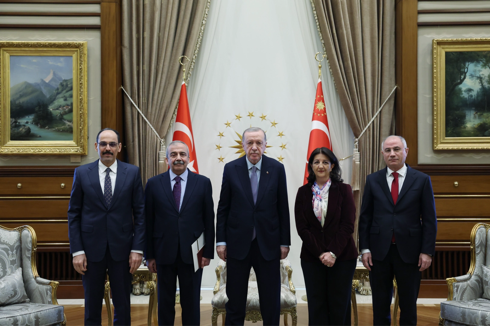 Cumhurbaşkanı Recep Tayyip Erdoğan, DEM Parti Van Milletvekili Pervin Buldan ve İstanbul Milletvekili Sırrı Süreyya Önder’i kabul etti. Cumhurbaşkanlığı Külliyesi'ndeki kabulde Milli İstihbarat Teşkilatı (MİT) Başkanı İbrahim Kalın ve AK Parti Genel Başkanvekili Efkan Ala da yer aldı.