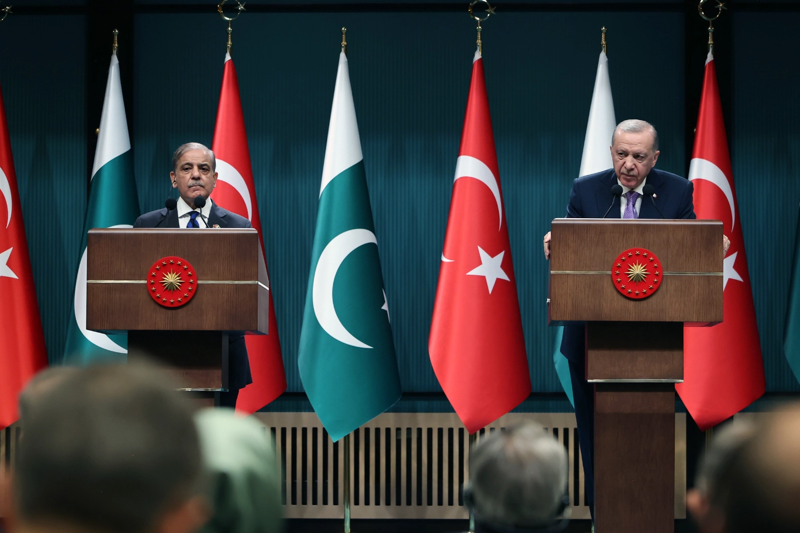 Pakistan'ın Filistin meselesindeki kararlı duruşunu her zaman takdir ettiğimizi ifade etmek istiyorum. Gazze'deki soykırıma da en güçlü tepkiyi veren ülkelerden biri Pakistan'dı" dedi. Cumhurbaşkanı Recep Tayyip Erdoğan, Pakistan Başbakanı Şahbaz Şerif ile Cumhurbaşkanlığı Külliyesi’nde bir araya geldi. Erdoğan görüşmenin ardından Pakistan Başbakanı Şahbaz Şerif ile Ortak Basın Toplantısı gerçekleştirdi. Pakistan'ı son olarak Yüksek Düzeyli Stratejik İşbirliği Konseyi’nin 7. Toplantısı vesilesiyle Şubat ayında ziyaret ettiğini ifade eden Cumhurbaşkanı Erdoğan, "Bu vesileyle Sayın Başbakan'a ve Pakistan makamlarına sıcak misafirperverlikleri için bir kez daha teşekkür ediyorum. Bu karşılıklı temaslar, ülkelerimiz arasındaki ilişkilerin ulaştığı müstesna düzeyi ortaya koyuyor. Aziz kardeşimle bugün yaptığımız görüşmede ikili ilişkilerimizin yanı sıra bölgesel ve küresel meseleler hakkında görüş alışverişinde bulunduk. Biliyorsunuz Türkiye ve Pakistan terörle mücadelede en güçlü iradeyi ortaya koyan ülkelerin başında geliyor. Ben de bu vesileyle Pakistan'da yaşanan terör saldırılarında şehit düşen kardeşlerimize Allah'tan rahmet yaralılara acil şifalar diliyorum" dedi. Türkiye’nin terörün her türlüsüyle mücadelesinde Pakistan'a desteğinin baki olduğunu vurgulayan Cumhurbaşkanı Erdoğan, "Şubat ayında Pakistan'ı ziyaretim vesilesiyle ticaret, su kaynakları, tarım, enerji, kültür, aile ve sosyal hizmetler, bilim, bankacılık, eğitim, savunma ve sağlık alanlarında toplam 25 belge imzalamıştık. İslamabad’da aldığımız kararların kısa sürede ilgili kurumlarımızca hayata geçirilmeye başlandığını müşahede ediyoruz" açıklamasında bulundu. Ekonomik işbirliğinin lokomotifi olan yatırımcıları Pakistan'da daha fazla faaliyette bulunmaya ve ortak projeler geliştirmeye teşvik ettiklerini kaydeden Cumhurbaşkanı Erdoğan, "Değerli kardeşimle karşılıklı yatırımların teşvik edilmesi ve Pakistan'da şirketlerimize serbest ekonomik bölge tahsis edilmesi hususlarını görüştük. Askeri ve savunma sanayi alanındaki ilişkilerimizi ortak projelerle daha da geliştirme arzusundayız. Enerji bakanımın Pakistan'ı ziyaretinde gündeme gelen enerji ve kritik madenler alanlarında yeni işbirliği projelerine özellikle işaret ettik. Pakistan üniversitelerinde Türkçe eğitim verecek öğretim görevlisi ihtiyacının karşılanması konusunu da ele aldık" ifadelerini kullandı. "GAZZE'DEKİ SOYKIRIMA DA EN GÜÇLÜ TEPKİYİ VEREN ÜLKELERDEN BİRİ PAKİSTAN'DI" Türkiye ve Pakistan arasındaki işbirliğinin bölgelerdeki barış ve istikrara şüphesiz önemli katkı sağladığının altını çizen Cumhurbaşkanı Erdoğan, "Pakistan'la hemen her konuda tam bir uyum içinde hareket ettiğimizi görmekten memnuniyet duyuyoruz. Bu vesileyle Pakistan'ın Filistin meselesindeki kararlı duruşunu her zaman takdir ettiğimizi bir kez daha ifade etmek istiyorum. Gazze'deki soykırıma da en güçlü tepkiyi veren ülkelerden biri Pakistan'dı. Bugüne kadar Pakistan'la Birleşmiş Milletler, İslam İşbirliği Teşkilatı ve diğer platformlarda Filistinli kardeşlerimizin haklı davalarına gerekli desteği sağlamaya çabaladık. Bu girişimlerimizi önümüzdeki dönemde de sürdürmeye kararlıyız. 1967 sınırları temelinde başkenti Doğu Kudüs olan coğrafi bütünlüğe sahip bağımsız ve egemen Filistin devleti tesisi yolunda birlikte çalışmaya devam edeceğiz" diye konuştu. Van Hakkari yolunda meydana gelen trafik kazasında vefat eden vatandaşlara Allah'tan rahmet yaralılara acil şifalar dileğinde bulunan Erdoğan, "Yaralılarımızın sağlık kuruluşlarına sevkini süratle gerçekleştirdik. Şu an itibariyle tedavileri devam ediyor. Kazazedelerimize tekrar geçmiş olsun diyor. Yakınlarını kaybeden ailelerimize Rabbimden sabır niyaz ediyorum" dedi. Pakistan Başbakanı Şahbaz Şerif ise, Cumhurbaşkanı Erdoğan’ın cesur ve büyük bir lider olduğunu, Türk halkını muhteşem bir yere taşıdığını kaydetti. Şerif, "Çok sevgili kardeşim Sayın Cumhurbaşkanı Erdoğan, sizin liderliğinizde Türkiye halkının son derece üst seviyelerde bir ilerleme ve bir refah seviyesine ulaşacağına eminim. Sayın Cumhurbaşkanı Erdoğan'a Türkiye'nin Keşmir konusundaki desteğinden dolayı teşekkür etmek istiyorum. Ve aynı zamanda bizim de Kuzey Kıbrıs Türk Cumhuriyeti halkına desteğimizi burada tekrar yineledik. Bu anlamda işbirliğimizi çok taraflı ortamlarda hem Birleşmiş Milletler'de hem de İslam İşbirliği Örgütü'nde devam ettireceğiz" ifadelerini kullandı.