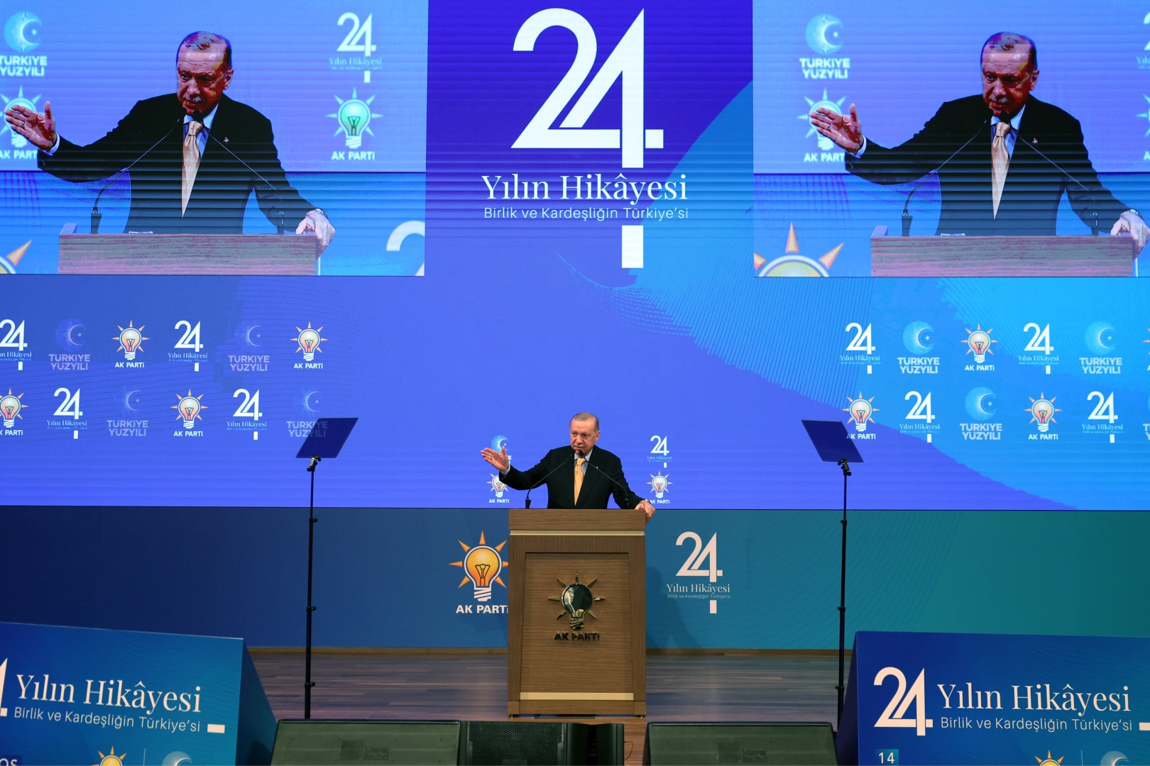 Cumhurbaşkanı Recep Tayyip Erdoğan, AK Parti Kongre Merkezi'nde partisinin 24. Kuruluş Yıl Dönümü programına katıldı. Program İstiklal Marşı'nın okunmasıyla başlarken " 24 Yılın Hikayesi" belgeseliyle başladı. Tarihi bir yatırım, hizmet, eser ve hizmet seferberliğiyle 81 vilayetinin her metrekaresine mühürlerinin vurduklarını söyleyen Erdoğan, "Sabit sermaye yatırımları dahil 2025 yılı fiyatlarıyla toplam, eğitime, yükseköğrenimle birlikte 31 trilyon lira. Sağlığa 11,5 trilyon lira. Gençlik ve spora 4 trilyon lira. Aile ve sosyal hizmetlere 10 trilyon lira, Adalete 4 trilyon lira, İçişlerine, 3 trilyon lirası AFAD bünyesinde olmak üzere 4 trilyon lira harcama yaptık. Çalışma ve Sosyal Güvenliğe 1.5 trilyon lira. Ulaştırmaya, kamu-özel ortaklığı dahil 10 trilyon lira, Çevre ve Şehirciliğe 15 trilyon lira, Kültür ve Turizme 1,5 trilyon lira, Tarım ve Ormana 7 trilyon lira, Enerjiye 8 trilyon lira, Savunma Sanayine 374 milyar dolar, Sanayi ve Teknolojiye 1,5 trilyon lira yatırım yaptık. Kobilerde, 1 milyon 388 bin işletmeye 278 milyar liralık destek sağladık. Teşviklerimizle 19 trilyon liralık 126 bin yatırımın ve 4 milyon 58 bin nitelikli istihdamın önünü açtık. Katma değerli alanlarda 45 milyar dolarlık yatırım tutarına sahip 72 projeyi destekledik. Savunma projelerimizin bütçesi 5,5 milyar dolardan, bugün 100 milyar dolar büyüklüğe ulaştı. 2002 yılında 36 milyar dolar olan ihracatımızı, temmuz ayında yıllık bazda 270 milyar dolara çıkardık. Uluslararası doğrudan yatırımların tutarı 19 kattan fazla artışla 281 milyar dolara kadar yükseldi. Merkez bankamızın rezervleri, bugün itibarıyla 175 milyar dolar ile rekor kırdı. 2024 yılı verilerine göre dünyanın 17'nci, Avrupa'nın 7'nci büyük ekonomisiyiz. Kişi başına düşen milli gelirimiz 2002 yılında 3 bin 608 dolar seviyesindeyken, 2024 yılında 15 bin 463 dolar seviyesine kadar ulaştı. 2025 yılı sonu itibarıyla ise kişi başına düşen milli gelirin 17 bin dolar aşmasını bekliyoruz. Dışişlerinde 163 olan dış temsilcilik sayımızı, 263'e ulaştırarak temsil ağımızı güçlendirdik. Dünyanın en kapsamlı, en kuşatıcı sosyal güvenlik sistemini ülkemize kazandırdık. Bugün 2,9 milyon vatandaşımızın ayağına evde sağlık hizmeti götürüyoruz. Toplamda 37 bin 127 yataklı 25 şehir hastanemizi tamamlayıp hizmete sunduk" diye konuştu. "ELDE ETTİĞİMİZ BÜTÜN BAŞARILARIN SAHİBİ AZİZ MİLLETİMİZDİR" İhtiyaç sahibi vatandaşlara 4 trilyon 970 milyar lira tutarında ödeme yaptıklarının altını çizen Erdoğan, "Asrın felaketinin yaralarını sarmak için şimdiye kadar yaklaşık 75 milyar dolar kaynak kullandık. Daha saymaya kalksak, değil saatler günler alacak nice yatırım, hizmet, eser ve destekle Türkiye'nin çehresini değiştirdik. Şunu bugün bir kez daha altını çizerek söylemek isterim: Elde ettiğimiz bütün başarıların sahibi aziz milletimizdir. Ne yaptıysak, öncelikle onların güçlü desteğiyle yaptık. Elbette bu başarı sizin de eserinizdir. 24 yıllık hikâye sizin de hikayenizdir. Birlik ve Kardeşliğin Türkiye'sinde sizin de alın teriniz var. Ülkemizin bugünlere gelmesinde şu salondaki her bir arkadaşımın katkısı, emeği, fedakarlığı ve mücadelesi var. Her birinize çabalarınızdan ve gayretlerinizden dolayı yürekten teşekkür ediyorum" ifadelerini kullandı. AK Parti, kurulduğu günden bu yana, bir siyasi parti olmanın yanında, aynı zamanda bir okul olduğunu vurgulayan Erdoğan, "14 Ağustos 2001'den itibaren hem parti kadrolarımızı, hem hükümetlerimiz döneminde bürokrasideki kadroları sürekli yeniledik, sürekli gençleştirdik ve Türkiye'ye alanında tecrübeli çok sayıda isim kazandırdık. Şunu büyük bir memnuniyetle söylemeliyim ki; AK Parti, bugün, siyaset yapma ve devleti yönetme hususunda Türkiye'nin en iyi, en tecrübeli, en bilgili ve birikimli kadrolarıyla mücehhezdir. AK Parti'yi Türkiye'nin en büyük partisi yapan, işte bu yetişmiş, işte bu liyakatli insan kaynağına sahip olmasıdır. Bu dinamik, bu hareketli yapıyı muhalefet partilerinde asla göremezsiniz. Partimiz içinde lise yıllarından, üniversite yıllarından itibaren siyaset yapmaya başlayan bir genç, aslında siyasete istikamet çizme ve devlet yönetme idealiyle bu yola girmektedir. O yol daima açıktır. Ağabeylerinin, ablalarının yanında pişen gençlerimiz, bugün bakanlık kadrolarımızda, milletvekili olarak, belediye başkanları olarak, genel merkez kadrolarımızda kendilerine yer buluyor, çok önemli hizmetlere imza atıyor. AK Parti, insan öğüten bir değirmen asla değildir, değerli arkadaşlarım Bizde emeklilik yoktur, bizde kenara çekilmek, inzivaya çekilmek yoktur. Soluklanmaları için bir süreliğine dinlenmeye aldığımız arkadaşlarımızla bağımızı asla koparmaz, irtibatımızı kesmez, vefamızı hiçbir zaman eksik etmeyiz. Her yaştaki arkadaşımız, bizimle yol yürümeye devam ettiği müddetçe, elbette biz de onun bilgisinden, tecrübesinden, görgüsünden istifade etmeyi sürdürürüz. Bu haliyle bakıldığında, AK Parti, Türkiye'nin birikimidir, hazinesidir" açıklamalarında bulundu. "SİYASETTE DİYALOG VE UZLAŞI KÜLTÜRÜNÜ GÜÇLENDİRMEKTİR" AK Partiyle birlikte Türkiye'de siyaset asli misyonuna kavuştuğunu belirten Erdoğan, "Türkiye; iç politikada, dış politikada, ekonomide, güvenlikte yıllarca birikmiş, zamanla kronikleşmiş sorunlarını çözebileceğini, böyle bir kapasiteye sahip olduğunu tüm dünyaya göstermiştir. Ülkemizin kazanç hanesine yazdırdığımız en büyük başarılarımızdan biri, hiç şüphesiz, siyasette diyalog ve uzlaşı kültürünü güçlendirmektir" dedi. "Cumhur İttifakı olarak birlikte başlattığımız, bir devlet politikası olarak yine beraberce yürüttüğümüz 