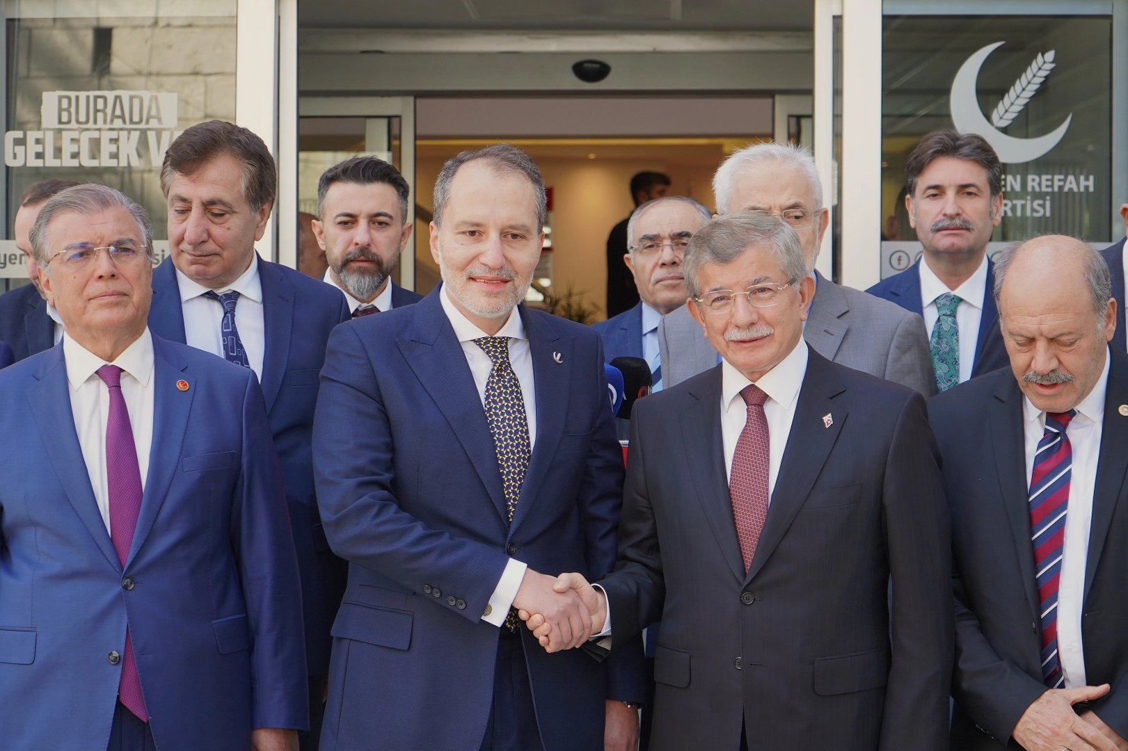 Yeniden Refah Partisi Genel Başkanı Fatih Erbakan, partisinin genel merkez binasında Gelecek Partisi Genel Başkanı Davutoğlu ve beraberindeki heyet ile bir araya geldi. Heyetler arası gerçekleştirilen görüşmede, son dönemde Türkiye'de yaşanan cinayetler, bölgesel sorunlar ve TBMM'de yapılabilecek iş birliği konuları ele alındı. İkili, yaklaşık bir saat süren görüşmenin ardından ortak basın açıklaması yaptı. İki Genel Başkan, hayatını kaybeden Saadet Partisi Kurucu Genel Başkanı Recai Kutan'a Allah'tan rahmet, sevenlerine ise baş sağlığı diledi. “Devlet kızlarını ve çocuklarını koruyamaz hale gelmişse hepimizin 10 kere düşünmesi lazım” Türkiye'nin kritik süreçlerden geçtiğini vurgulayan Davutoğlu, “Geçtiğimiz hafta içerisinde İstanbul'da yaşanan cinayetler dahi toplumdaki iki önemli çözülmeyi gözler önüne serdi. İkbal kızımız ve Ayşenur kızımızın katledilmeleri, Narin kızımızın hala katilinin bulunmamış olması ve cinsel tacize uğrayan 2 yaşındaki Sıla kızımızın ise hayatını kaybetmesi bir toplumda iki şeyin işaretidir. Birisi ahlaki bozulma, çürüme ve kamu düzeni eksikliği. Eğer bir devlet, yargı sistemi ve kamu yönetimi bir masum kızın katlinden sonra katilini bir ayı geçmiş sürede katilini bulamadıysa, genç kızlarını ve çocuklarını koruyamaz hale gelmişse hepimizin 10 kere düşünmesi lazım” ifadelerini kullandı. “Ben de hükümete sormak istiyorum; siz ne yapıyorsunuz?” TBMM'de bugün kapalı oturumda Gazze ve Lübnan meselesinin konuşulacağını dile getiren Davutoğlu, “Baktığımızda ne ülke olarak Türkiye'nin ne İslam dünyasının ne de uluslararası toplum ve BM'nin bu büyük insanlık katliamlarına cevap bulduklarını söylemek mümkün değil. Kimse topu başkasına atmasın. İslam ülkelerini ve dünyayı kritik edebiliriz, yüksek sesle slogan atabiliriz. Katliam birinci yılını doldurdu ama insanlar dönüp siz ne yapıyorsunuz? Derler. Ben de hükümete sormak istiyorum; siz ne yapıyorsunuz? Gittikçe İsrail'e yönelen ticaretin tekrar artmaya başladığı hiçbir müeyyidenin uygulanmadığı yerde kapalı meclis oturumunda söylenecek sözlerin anlamı kalmaz” açıklamasında bulundu. “Mecliste Güçlü bir üçüncü blok için hepimizin gerekli fedakarlığı yapması lazım” Türkiye'de kutuplaşma ve partiler arasında bölünme gibi iki büyük siyasi tehlike gördüğüne vurgu yapan Davutoğlu, “Ahlaki çürüme, kamu düzeni bozukluğu, bölgesel sorunlar gibi sorunlarda aynı hassasiyeti taşıyan partilerin bir araya gelmesi, mümkünse bazılarının birleşmesi, mümkün değilse en azından bu aşamada mecliste güçlü bir üçüncü blok oluşturması bizim siyasi tercih ve düşüncemizdir. Bu konuda hepimizin gerekli fedakarlığı yapması lazım. Böyle bir bloğun oluşması hem iktidarı terbiye edecektir ve yanlışlardan uzaklaştıracaktır hem de" iktidardan kopmakta olan geniş kitlelere alternatif oluşturacaktır” değerlendirmesinde bulundu. Erbakan ise görüşmede Türkiye'nin, Tük milletinin temel sorunlarını ele aldıklarını ve karşılıklı fikir alışverişinde bulunduklarını dile getirerek, “Bunların en başında gelenlerden bir tanesi Türkiye'deki kadın ve çocuk cinayetleri ve bu noktada yasaların yeterli olmaması sebebiyle toplumdaki ahlaki erozyon nedeniyle bu gibi sorunlarla karşı karşıya olduğumuzu ortaya koyduk. Sıla, narin, İstanbul'da katledilen 2 kızımız ve yine İstanbul'da bir kadın polisi şehit eden zanlının 26 ayrı suçtan suç kaydının bulunması ve hiçbir zamanda hapse girmemiş olmaması ceza infaz sisteminin de çöktüğünü gösteriyor. Bu noktada kasten adam öldürmeye yönelik suçlarda idam cezası gibi caydırıcı cezanın olmaması bu gibi cinayetlerin ardı arkası kesilmeden devam etmesine yol açıyor” açıklamasında bulundu. “Kürecik Radar Üssünün kapatılmasına yönelik herhangi girişim göremiyoruz” İsrail'in Gazze'den sonra Lübnan'da da saldırılarına devam etmesi ve adım adım ‘Büyük İsrail' hedefine yürümek istemesinin çok önemli bir tehdit olduğunu söyleyen Erbakan, “Mevcut iktidarın maalesef gerekli adımları atmadığını ve hala da atmamakta olduğunu görüyoruz. 20 sene boyunca D-60 hedefine ulaşılabilirdi. İslam ülkeleri bir araya toplanıp bir yaptırım ortaya konmaları sağlanabilirdi. Maalesef bundan uzak duruldu. Bunun arkasından İsrail'le ticaret geçen yıllar içerisinde 4-5 misli artırıldı. Arkasından İsrail'in NATO'da ofis açmasına onay verildi. Şuanda da Azerbaycan petrolü, Bakü-Ceyhan Petrol Boru Hattı üzerinden İsrail'e yakıt olarak ulaşmaya devam ediyor. Kürecik Radar Üssü asıl olarak İsrail'i İran füzelerine karşı korumak üzerine kurulmuş bir üs. Bunun kapatılmasına yönelik herhangi girişim göremiyoruz” dedi. Erbakan, TBMM'de bulunan yeni yasama yılında daha aktif olarak rol olabilmek adına iş birliğini ele aldıklarını kaydederek, “Bununla ilgili önümüzdeki dönemde görüşmelerimizi devam ettireceğiz” şeklinde konuştu. İkili basın açıklamasının ardından basın mensuplarının sorularını cevapladı. “Mecliste güçlü bir grubun oluşturulmasına yönelik görüşme yapıldı” Bir gazeteci tarafından gelecekte gerçekleştirilecek toplantıların yol haritasının nasıl şekilleneceğini sorması üzerine Erbakan, “Partilerin birleşmesi herhangi bir partinin kapanıp diğer bir parti ile birleşmesinden ziyade bu aşamada TBMM'de güçlü bir grup oluşturulması ve bu grup sayesinde mecliste daha etkin rol alınması konusunda görüşme yaptık. Belki seçime yakın dönemde bu grubu oluşturan partiler arasında seçim ittifakının da gündeme gelmesi söz konusu olabilir ama onun için şu anda erken. Öncelikle olarak mecliste güçlü bir grubun oluşturulmas