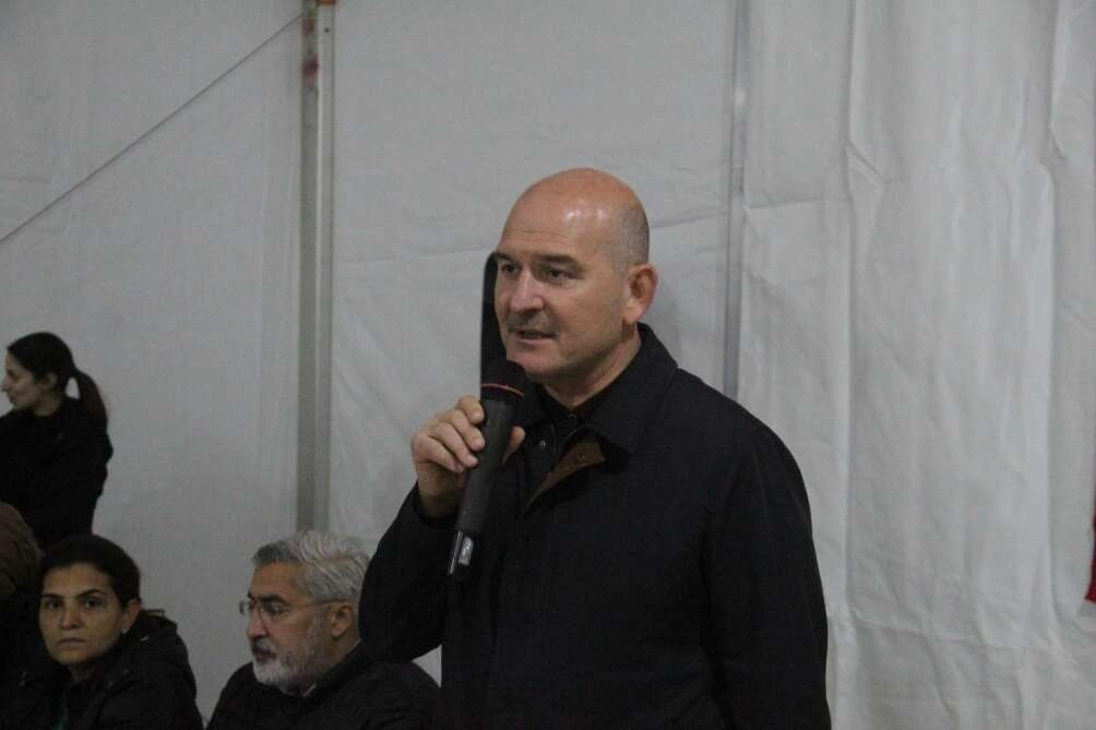 "Memleketimizin dört bir yanından vatandaşlarımız burada. Kardeşliğimizin ne olduğu, nasıl bir sonuç ortaya koyduğu bugün net bir şekilde ortadadır" diyen Soylu, "Bir büyük kucaklaşma içindeyiz. Birlik içinde olursak mükafat alırız. Büyük bir zorluktan geçiyoruz. Bu devlet sizin devletinizdir. Bu millet hepimizin tabi olduğu büyük bir millettir. Eskisinden çok daha güçlü şehirler kuracağız, gelecek nesillerimiz onlara mahcup olmayacağız. Hem güçlü binalar hem güzel çevreler hem de güzel şehirler oluşturacağız. Bize inanın ve itimat edin. Bugüne kadar deprem, sel yangın afetlerinin hiçbirinde vatandaşlarımızı yalnız bırakmadık. Hiçbirinde vatandaşımızı bir başına tek başına bırakmadık. Ne söz vermişsek yerine getirdik. Bugün vereceğimiz söz yapılacak evler, yapılacak şehirler değildir. Bugün vereceğimiz söz burada oluşturduğumuz birlikteliğin gelecek nesillerimize örnek olma sözüdür. Sadece şehirlerimizi ayağa kaldırmak değil birbirimizi ayağa kaldırmak konusunda da bir sözü gelecek nesillere bırakmaktır” dedi.