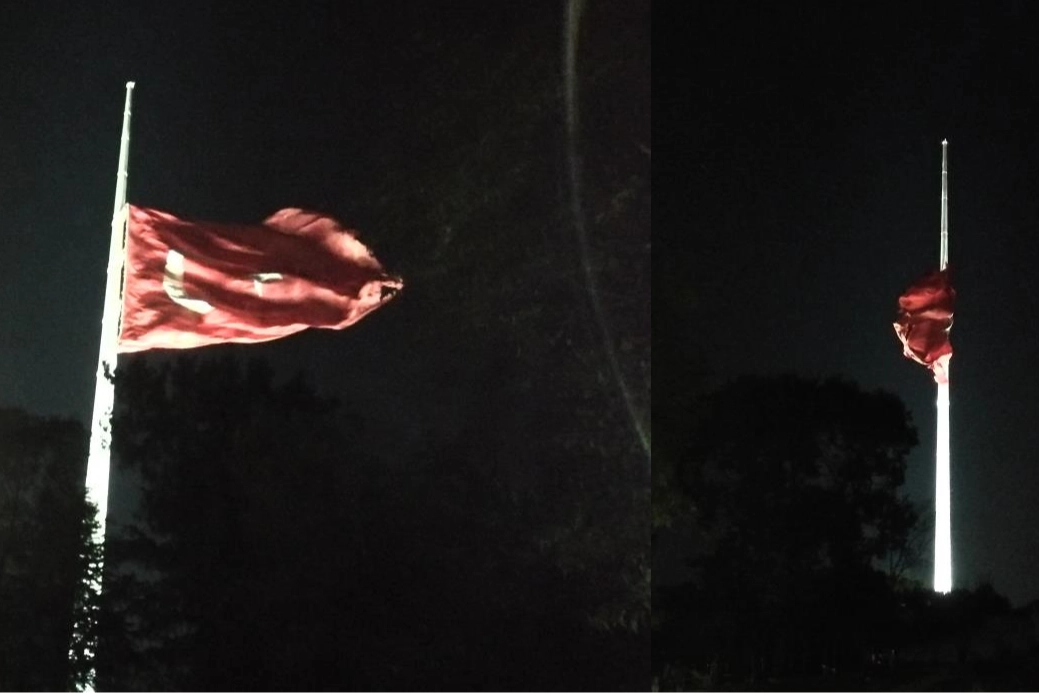 Milli yas nedeniyle yurtta çeşitli yerlerde olduğu gibi İstanbul'un Anadolu Yakası'nda bulunan Çamlıca Tepesi'nde de Türk bayrağı yarıya indirildi.