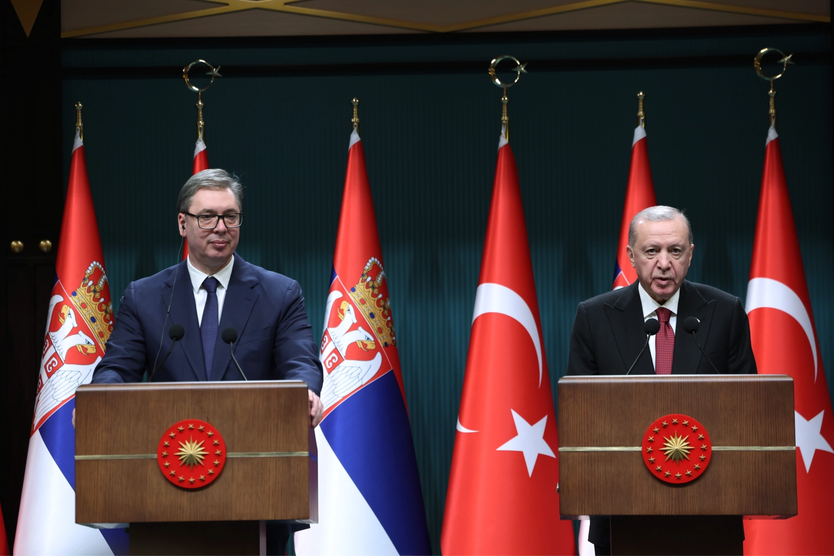 Cumhurbaşkanı Recep Tayyip Erdoğan, "Dünyada belirsizliğin arttığı bir dönemde Türkiye olarak yakın çevremizde ve ötesinde barışın ve huzurun tesisi için var gücümüzle çalışıyoruz" dedi. Cumhurbaşkanı Erdoğan, Sırbistan Cumhurbaşkanı Aleksandar Vucic ile Cumhurbaşkanlığı Külliyesinde bir araya geldi. Cumhurbaşkanı Erdoğan, Aleksandar Vucic’i resmi törenle karşıladı ve daha sonra ikili görüşme gerçekleştirdi. Heyetler arası gerçekleştirilen diğer görüşmenin ardından Cumhurbaşkanı Erdoğan ve Aleksandar Vucic ortak basın toplantısı düzenledi. "TOPLAM TİCARET HACMİ GEÇTİĞİMİZ YIL 3.5 MİLYAR DOLAR SEVİYESİNE ULAŞTI. 5 MİLYAR DOLARLIK HEDEFİMİZE ADIM ADIM YAKLAŞIYORUZ" Vucic ile son olarak 11 Ekim 2024’te Belgrad'da Dördüncü Yüksek Düzeyli İşbirliği Konseyi Toplantısını gerçekleştirdiklerini hatırlatan Cumhurbaşkanı Erdoğan, "Aradan geçen süre zarfında gerek ikili münasebetlerimizde gerek bölgesel ve küresel meselelerde önemli gelişmeler yaşandı. Bugün kendisiyle bu gelişmelerin ilişkilerimize etkilerini değerlendirip ileriye yönelik atacağımız adımları istişare ettik. Bilhassa Balkanlarda istikrarın korunması ve ekonomik kalkınmanın güçlendirilmesi açısından neler yapabileceğimizi ele aldık. Sırbistan'la her geçen gün artan ticaret ve yatırımlarımız ilişkilerimizin adeta lokomotifi durumunda. Toplam ticaret hacmi geçtiğimiz yıl 3.5 milyar dolar seviyesine ulaştı. 5 milyar dolarlık hedefimize adım adım yaklaşıyoruz. Sırbistan'ın ev sahipliğinde Belgrad'da gerçekleştirilecek EXPO 2027’ye katılacağımızı daha önce duyurmuştuk. Bu önemli etkinliğin ülkelerimiz arasındaki ekonomik, ticari ve kültürel ilişkileri geliştirmek için ilave bir vesile teşkil edeceğini düşünüyoruz" ifadelerini kullandı. "2015 YILINDA 100 CİVARINDA TÜRK SERMAYELİ FİRMA SIRBİSTAN'DA FAALİYET GÖSTERİRKEN BUGÜN BU RAKAM 1500’Ü AŞMIŞ TOPLAM YATIRIM MİKTARI 300 MİLYON DOLARI BULMUŞTUR" Türk yatırımcıların Sırbistan'a gösterdikleri alakadan mutlu olduklarını ifade eden Cumhurbaşkanı Erdoğan, "2015 yılında 100 civarında Türk sermayeli firma Sırbistan'da faaliyet gösterirken bugün bu rakam 1500’ü aşmış toplam yatırım miktarı 300 milyon doları bulmuştur. Müteahhitlerimiz ise üstlendikleri 100’ü aşkın projeyle Sırbistan'da konut, yol ve altyapı üretimine destek oluyor. Bu noktaya ulaşmamızda değerli dostumun altyapı yatırımlarını ve büyümeyi esas alan kalkınma stratejisinin etkisi olduğu görülüyor. Bizim de Sırbistan'dan yatırımcıları Türkiye'ye beklediğimizi bir kez daha ifade etmek istiyorum" diye konuştu. "BUGÜN TÜRKİYE, SIRP TURİSTLER İÇİN İKİNCİ TURİZM GÜZERGAHIDIR. VATANDAŞLARIMIZ DA SIRBİSTAN'I ZİYARET EDEN TURİSTLER SIRALAMASINDA İLK SIRADA YER ALIYOR" İki ülke arasındaki ilişkilerin artırılması için konuşulan konulara dair bilgi veren Erdoğan, "Beşeri ilişkilerimiz, münasebetlerimizin önemli bir boyutunu oluşturuyor. Halklarımızın birbirine daha yakından özellikle tanıma isteğinin en güzel tezahürü artan karşılıklı turist sayılarıdır. Bugün Türkiye, Sırp turistler için ikinci turizm güzergahıdır. Vatandaşlarımız da Sırbistan'ı ziyaret eden turistler sıralamasında ilk sırada yer alıyor. Bu ziyaretleri daha da artırmak ve kolaylaştırmak için Türkiye ile Sırbistan arasında uçuşların arttırılması konusunu da bugün değerlendirdik. Sırbistan'da Türkçe öğrenimine yoğun bir ilgi görüyoruz. Bu ilginin Yunus Emre Enstitüsü ve Türkiye Maarif Vakfı gibi kurumlarımız tarafından layıkıyla karşılanması için çalışmalarımızı yürütüyoruz. Sırbistan'la aramızda dostluk köprüsü olarak gördüğümüz Sancak Bölgesinin kalkınması için yapılabilecekleri de Sayın Vucic ile ele aldık. Kendisinin bölgenin kalkındırılmasına yönelik projelerini takip ediyoruz. Ben de bu vesileyle Sırbistan'daki Müslüman toplumunun yaklaşan Ramazan-ı Şeriflerini canı gönülden tebrik ediyorum" dedi. "DÜNYADA BELİRSİZLİĞİN ARTTIĞI BİR DÖNEMDE TÜRKİYE OLARAK YAKIN ÇEVREMİZDE VE ÖTESİNDE BARIŞIN VE HUZURUN TESİSİ İÇİN VAR GÜCÜMÜZLE ÇALIŞIYORUZ Dünya’da barış için durmadan çalıştıklarını ifade eden Cumhurbaşkanı Erdoğan, "Dünyada belirsizliğin arttığı bir dönemde Türkiye olarak yakın çevremizde ve ötesinde barışın ve huzurun tesisi için var gücümüzle çalışıyoruz. Bu çalışmalarımızda bizim için müstesna yere sahip Balkanları asla ihmal etmiyoruz. Sayın Vucic'in ziyaretini de bu manada çok kıymetli görüyorum. Bir yandan bölge ülkeleriyle ikili ilişkilerimizi tahkim ederken diğer yandan da bölgesel sahiplenmeyi esas alan girişimlerle halkların huzur ve refahını desteklemeye matuf koşulları oluşturmaya gayret ediyoruz. Bu yaklaşımımızın en yeni örneklerinden olan Balkan Barış Platformu'nun ikinci toplantısına 23 Ocak 2026’da İstanbul'da ev sahipliği yaptık. Ben bu platformda verdiği şahsi destekten ötürü Sayın Vucic'e teşekkür etmek istiyorum. Bu düşüncelerle sözlerime son verirken Sayın Cumhurbaşkanı'na ziyaretleri için tekrar teşekkür ediyorum. Bugün aldığımız kararların ülkelerimiz ve bölgemiz için hayırlara vesile olmasını diliyorum" ifadelerine yer verdi. "ERDOĞAN ÇOK DAHA DENEYİMLİ BİR LİDER" Cumhurbaşkanı Erdoğan’ın sadece bölgede değil dünyada büyük bir lider olduğunu söyleyen Sırbistan Cumhurbaşkanı Vucic ise, Türkiye’nin Sırbistan için önemli ve büyük bir ortak olduğunu söyledi. Cumhurbaşkanı Erdoğan’ın deneyimli bir lider olduğunu söyleyen Vucic, "Kişileri, halkları Balkanlarda bir araya getirmek çok önemli. Bunu başka türlü ifade etmem gerekirse şunu söylemek istiyorum; Cumhurbaşkanı Erdoğan çok d
