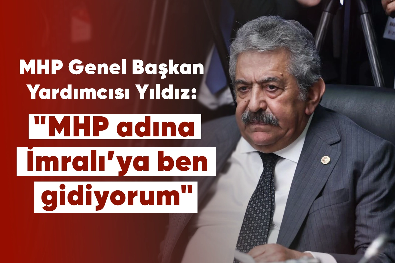 MHP Genel Başkan Yardımcısı Feti Yıldız, ""MHP adına İmralı’ya ben gidiyorum" dedi. MHP Genel Başkan Yardımcısı Feti Yıldız, "Terörsüz Türkiye" süreci kapsamında kurulan TBMM Milli Dayanışma, Kardeşlik ve Demokrasi Komisyonu'nun 'İmralı'ya gidiş gündemiyle yapacağı toplantı öncesinde konuştu. Yıldız, Komisyonu'nun, İmralı'ya gidişine ilişkin "Biz, 'Gidiyoruz' demekle gidilmez. Bunun bir izni var, bakanlığa bildirilecek, gidecek milletvekilleri için izin alınacak. Tahmince her partiden 4-5 milletvekili olur. Bunu söyleyebilirim; Milliyetçi Hareket Partisi adına ben gideceğim" ifadelerini kullandı.