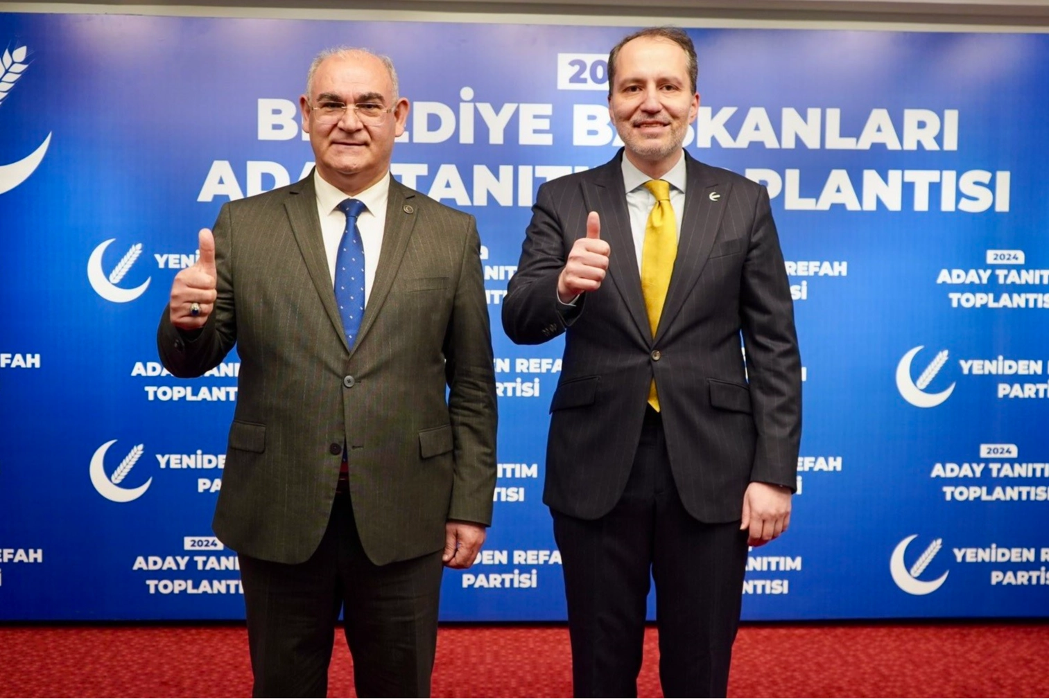 31 Mart Mahalli ve İdari Seçimleri yaklaşırken Yeniden Refah Partisi adaylarını açıklamaya devam ediyor. Yeniden Refah Partisi Genel Başkan Fatih Erbakan’ın katılımıyla, partisinin genel merkezinde gerçekleşen aday tanıtım toplantısında 6 il, 64 ilçe ve 4 belde olmak üzere 74 belediye başkan adayı daha açıklandı. Bugüne kadar 389 adayını açıklayan Yeniden Refah Partisi’nde açıklanan isimlerden birisi de mevcut Adana Pozantı Belediye Başkanı Mustafa Çay oldu. MHP’den istifa edip Yeniden Refah Partisi’ne katılan Mustafa Çay’a rozetini bizzat Genel Başkan Erbakan oldu. Erbakan ayrıca Mustafa Çay’ın partilerinin Pozantı Belediye Başkanı adayı olduğunu da açıkladı. Açıklanan diğer isimler ise şu şekilde: "Ağrı Belediye Başkan Adayı M. Şafi Erim, Bolu Belediye Başkan Adayı Faruk Bayrakdar, Erzincan Belediye Başkan Adayı Şafak Soy, Karabük Belediye Başkan Adayı İsmail Özer, Kırklareli Belediye Başkan Adayı Zekai Narin, Sinop Belediye Başkan Adayı Mete Çağdaş Adana Pozantı İlçe Belediye Başkan Adayı Mustafa Çay Ağrı Tutak İlçe Belediye Başkan Adayı Coşkun Akbaba Eleşkirt İlçe Belediye Başkan Adayı M. Hakkı Polat Aksaray Eskil İlçe Belediye Başkan Adayı Şerafettin Meralü Ardahan Göle Köprülü Belde Belediye Başkan Adayı Emirhan Sarıkaya Aydın Didim İlçe Belediye Başkan Adayı Ali Keskin Bolu Gerede İlçe Belediye Başkan Adayı Veysel Ayaroğlu Burdur Celtikçi İlçe Belediye Başkan Adayı Adnan Bilkay Çavdır Söğüt Belde Belediye Başkan Adayı Bekir Yıldız Bursa Yenişehir İlçe Belediye Başkan Adayı Kasım Kaya Orhaneli İlçe Belediye Başkan Adayı Hüseyin Acar Çorum Osmancık İlçe Belediye Başkan Adayı Celil Aksoy Denizli Kale İlçe Belediye Başkan Adayı Mustafa Tatarcım Sarayköy İlçe Belediye Başkan Adayı Fatma Güneş Diyarbakır Kocaköy İlçe Belediye Başkan Adayı Kadir Berat Özkaya Yenişehir İlçe Belediye Başkan Adayı Semih Yıldırım Elazığ Maden İlçe Belediye Başkan Adayı Orhan Yavuz Akçakiraz Belde Belediye Başkan Adayı İbrahim Ormanoğlu Erzincan Çayırlı İlçe Belediye Başkan Adayı Abbas Yıldız Üzümlü İlçe Belediye Başkan Adayı Ahmet Arıtaşı İliç İlçe Belediye Başkan Adayı Özkan Doğan Tercan Pekariç Belde Belediye Başkan Adayı İlyas Yıldız Gaziantep Nurdağı İlçe Belediye Başkan Adayı Orhan Yılmaz Nizip İlçe Belediye Başkan Adayı Mustafa Doktoroğlu Oğuzeli İlçe Belediye Başkan Adayı Bekir Öztekin Isparta Şarkikaraağaç İlçe Belediye Başkan Adayı R. Bayram Kabalak Atabey İlçe Belediye Başkan Adayı Ebubekir Taşkıran İstanbul Adalar İlçe Belediye Başkan Adayı Faruk İlerisoy Sancaktepe İlçe Belediye Başkan Adayı Cemil Cebir Bahçelievler İlçe Belediye Başkan Adayı Metin Türk İzmir Torbalı İlçe Belediye Başkan Adayı İsmail Banaz Güzelbahçe İlçe Belediye Başkan Adayı İ. Emre Akbaş Kınık İlçe Belediye Başkan Adayı H. Hüseyin Levent Konak İlçe Belediye Başkan Adayı Selim Taşkın Foça İlçe Belediye Başkan Adayı Nazif Tunahan Şen Kahramanmaraş Göksun İlçe Belediye Başkan Adayı Selim Yüce Afşin İlçe Belediye Başkan Adayı Adem Yıldız Karabük Eflani İlçe Belediye Başkan Adayı Yaşar Bulut Kayseri Sarıoğlan İlçe Belediye Başkan Adayı Lütfi Ünsal Yahyalı İlçe Belediye Başkan Adayı Mustafa Camcı Pınarbaşı İlçe Belediye Başkan Adayı Nizamettin Akça Kırklareli Pınarhisar İlçe Belediye Başkan Adayı Kemal Karakaş Vize İlçe Belediye Başkan Adayı Recep Arslan Demirköy İlçe Belediye Başkan Adayı Murat Doğan Babaeski İlçe Belediye Başkan Adayı Görkem Köksal Lüleburgaz İlçe Belediye Başkan Adayı Hamit Hamitoğlu Pehlivanköy İlçe Belediye Başkan Adayı Emine Omay Kofçaz İlçe Belediye Başkan Adayı İsa Küskü Konya Emirgazi İlçe Belediye Başkan Adayı Mesut Mertcan Ereğli İlçe Belediye Başkan Adayı Özkan Özgüven Manisa Salihli İlçe Belediye Başkan Adayı Aydın Dalkıran Alaşehir İlçe Belediye Başkan Adayı Harun Uçar".