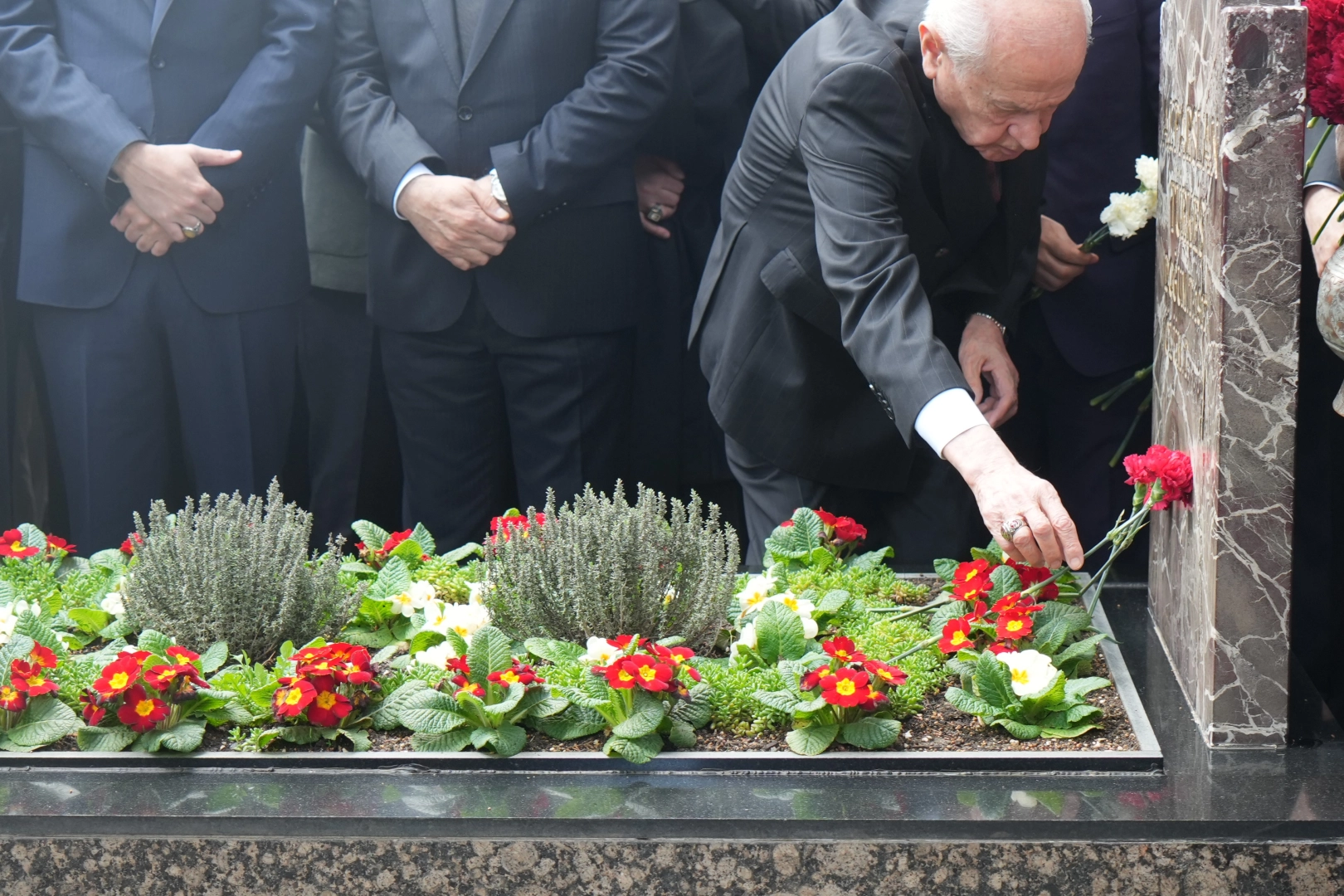 Milliyetçi Hareket Partisi (MHP) Genel Başkanı Devlet Bahçeli, 29'uncu ölüm yıl dönümünde MHP'nin kurucu lideri Alparslan Türkeş'in kabrini ziyaret etti. MHP Genel Başkanı Devlet Bahçeli, MHP'nin kurucu lideri Türkeş'in 29'uncu ölüm yıl dönümünde Ankara'daki mezarını ziyaret etti. Bahçeli'ye partinin genel başkan yardımcıları ve partililer eşlik etti. Bahçeli, Kur'an-ı Kerim tilavetinin ardından Türkeş'in anıt mezarına karanfil bırakıp bakır ibrikle su dökerek, ardından dua etti. Türkeş'in mezar taşına eliyle dokunup seven Devlet Bahçeli, mezarlık görevlileri ile de görüştü. Kısa bir süre sonra tekrar kabir başına gelen Bahçeli, Taşmedreseli Ülkücüler ile fotoğraf çekildi.