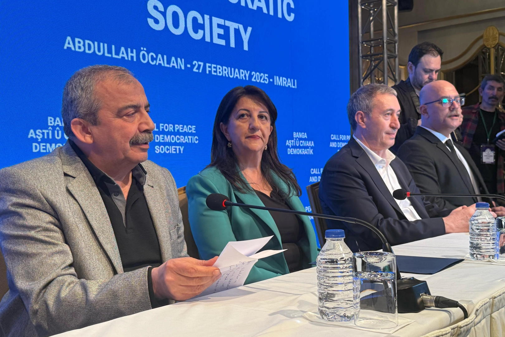 İstanbul'a dönen heyet, Taksim’de bir otelde Öcalan’ın silah bırakma çağrısını açıkladı.
