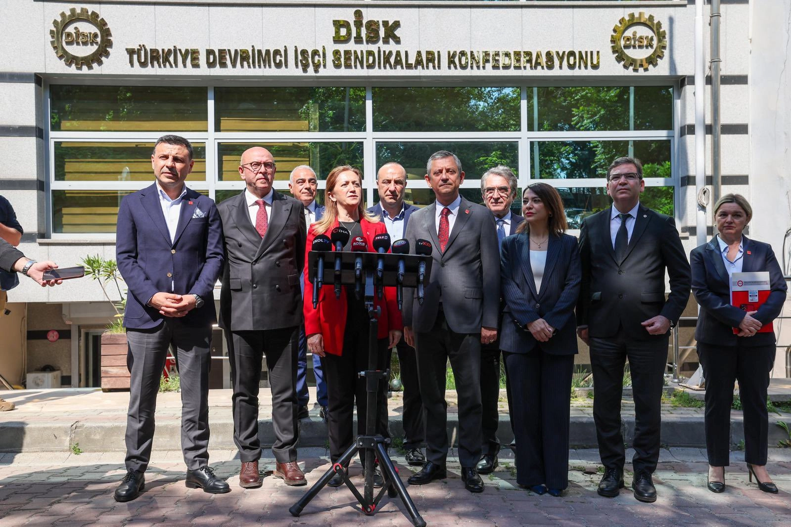 Ziyaret sonrası açıklama yapan CHP Genel Başkanı Özgür Özel, "Asgari ücrete yapılan iyileştirme bütün ücretlere yansıyor. Yani Haziran ayı boyunca iktidarı asgari ücretin yeniden belirlenmesi için Asgari Ücret Tespit Komisyonunu çalışmaya çağıracak bir mücadele herkesin ekmek mücadelesidir. Asgari ücrete bir ara zam yapılması için büyük bir mücadeleyi hep birlikte yapmak zorundayız" dedi. Cumhuriyet Halk Partisi (CHP) Genel Başkanı Özgür Özel, Türkiye Devrimci İşçi Sendikaları Konfederasyonu (DİSK) Genel Başkanı Arzu Çerkezoğlu ile asgari ücrete ara zam konusunda görüş alışverişinde bulundu. Yaklaşık bir saat süren ziyarete, CHP İstanbul İl Başkanı Özgür Çelik de katıldı. Özgür Özel görüşmenin ardından basın mensuplarına açıklamalarda bulundu. "ASGARİ ÜCRETE ARA ZAM YAPILMASI İÇİN BÜYÜK BİR MÜCADELE YAPMAK ZORUNDAYIZ" CHP Genel Başkanı Özgür Özel yaptığı basın açıklamasında, "Asgari ücrete yapılan iyileştirme bütün ücretlere yansıyor. Yani Haziran ayı boyunca iktidarı asgari ücretin yeniden belirlenmesi için Asgari Ücret Tespit Komisyonunu çalışmaya çağıracak bir mücadele herkesin ekmek mücadelesidir. Bugün AK Partili işçi de MHP'li işçi de başka görüşlerden olan işçiler de aynı açlıkla aynı yoklukla aynı yoksullukla karşı karşıyadır. Siyaseti bir kenara bırakalım. Elbette bu da bütün siyasetin ana konusudur ama siyaseti bir kenara bırakalım ekmek için mücadele edelim. Ekmek için talepte bulunalım. Asgari ücrete bir ara zam yapılması için büyük bir mücadeleyi hep birlikte yapmak zorundayız" diye konuştu.