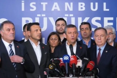 Cumhuriyet Halk Partisi (CHP) Genel Başkanı Özgür Özel, İstanbul Büyükşehir Belediyesi ziyaretinin ardından basın açıklaması yaptı. Ekrem İmamoğlu'nun gözaltına alınmasına tepki gösteren Özel, "Bu ülkenin umudunu çalmak isteyenler, geleceğini çalmak isteyenler, yargı eliyle uzun süredir başlatmış oldukları tacizlerini bugün en hadsiz evresine getirdiler. Günün ilk saatleri ile birlikte 16 milyon İstanbulluya hizmet etmek için İstanbullular tarafından 3 kez üst üste görevlendirilmiş Büyükşehir Belediye Başkanımız Ekrem İmamoğlu ve 106 arkadaşımız, çağrıldıklarında gidecekleri bir yere suçlularmış gibi o kötü fotoğrafları vererek, çalınan kapıların açılması beklenmeden, duvarların üzerinden atlayarak, karşısındaki her şeyi yıkarak ayıplı bir muameleyle götürüldüler. Yapılan iş bir darbe girişimidir" ifadelerini kullandı. Özel, "Recep Tayyip Erdoğan milletin verdiği mesajı almamıştır. Yenilmeyi kabullenememiştir. Güya yenilmezdi. 31 Mart'ta ilk kez kaybetti" ifadelerini kullandı. "Demokrasi treninden indi, darbecilerin safına katıldı" Konuşmasında Cumhurbaşkanı Erdoğan'ın eleştiren Özgür Özel, "Demokrasi treninden indi, darbecilerin safına o istasyonda katıldı. İndiği istasyonda 15 temmuz darbecileri vardı, Kenan Evren vardı, Türkiye Cumhuriyeti'nde darbeye kalkışmış herkes vardı. Artık onların yol arkadaşıdır. Bu yüzden tercihi bir kez daha milletin karşısına devleti dikmek olmuştur. Bu millet devletini sever, saygı duyar, çağırır askere gider, ister vergi verir, evladını şehit verir ama devlet milletin karşısına dikilirse millet kazanır. Daha önce Kenan Evren ‘geç bu kişiyi seç' dediğinde onun dediğini değil bir sivil adayı seçen bu milletin, 15 Temmuz'da o meczuplar ordusuna karşı sandığın seçtiklerin koruyan bu millet, karşısına devleti diken Erdoğan'a karşı yine kazanacaktır. Bu millet bütün kazanımlarını camisinden özgürce okunan ezanın da, dalgalanan ay yıldızı bayrağın da, kendisini tüm özgürlüklerinin de, elindeki tapusunun da diplomasının da, cumhuriyet ve onun var ettiği sandık güvencesinde olduğunu bilir" diye konuştu. "Buyurun Saraçhaneye" Saraçhane'de toplanma çağrısında bulunan Özgür Özel, "Ekrem başkan hakim karşısına çıkana kadar, Ekrem başkanın hepimize emaneti İBB'ye sahip çıkacağız. Buradayız bir yere ayrılmıyoruz. Dayanışma ziyaretlerini de burada kabul edeceğiz. Milletin emanetine sonuna kadar sahip çıkan bir belediye başkanına, bir belediye meclisine ve İstanbul'un iradesine katkı sağlamak için saraçhanedeyim. Nerede olalım diye soranlara ‘buyurun Saraçhaneye' diyoruz" açıklamalarında bulundu. "Dayanışma sandığı kuracağız" Pazar günü partisi tarafından yapılacak Cumhurbaşkanlığı belirleme seçimini gerçekleştireceklerini vurgulayan Özel, "Pazar günü 81 ilde 973 ilçede ilçelerin mahallelerinde kurulacak sandılar tek değildir. Oraya bir sandık koyacağız. 1 milyon 750 bin üyemizle adayımızı belirleyeceğiz. Yanında bir sandık daha olacak. O sandığın adı dayanışma sandığıdır. O sandığa oy vermeye tüm siyasi partilerden, tüm siyasi görüşlerden herkes davetlidir" dedi.