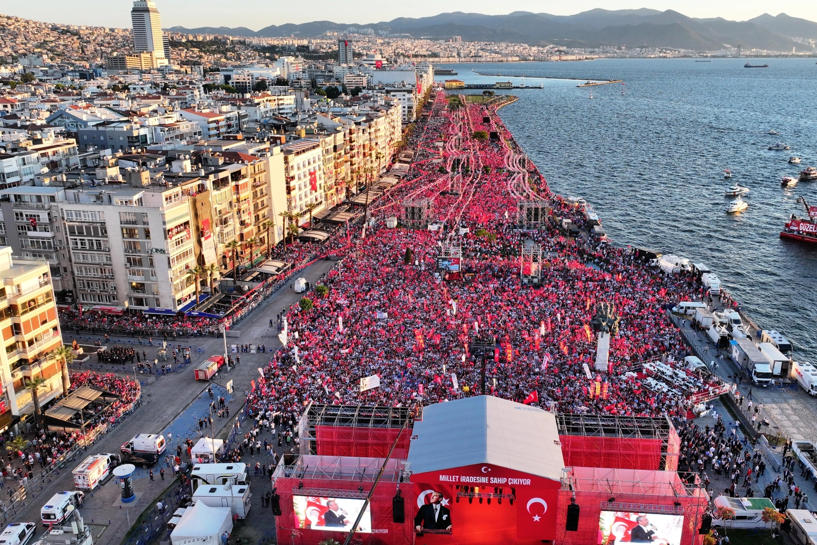 CHP Genel Başkanı Özgür Özel’in çağrısıyla her hafta bir şehirde düzenlenmesi planlanan "demokrasi mitingleri" kapsamında "Millet İradesine Sahip Çıkıyor" sloganıyla Gündoğdu Meydanı’nda miting düzenlendi. Mitinge katılmak için vatandaşlar Kordon'a akın etti. Miting alanındaki giriş noktalarında emniyet görevlilerinin sıkı arama yaptığı görüldü.