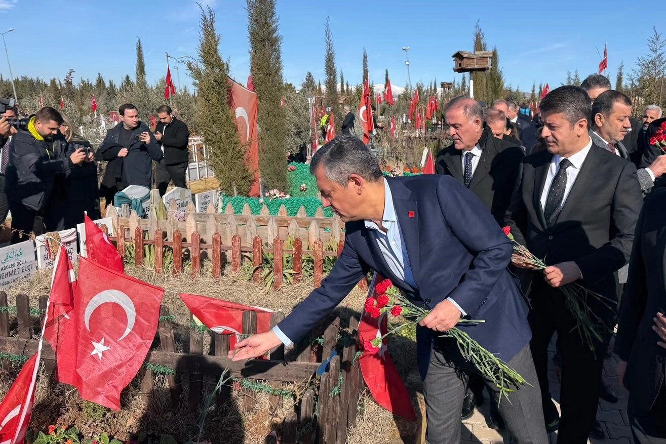 Kahramanmaraş merkezli 6 Şubat depremleri dolayısıyla Adıyaman'a gelen Cumhuriyet Halk Partisi (CHP) Genel Başkanı Özgür Özel, deprem şehitliğini ziyaret etti. 6 Şubat depremlerinin yıl dönümü dolayısıyla Adıyaman'a gelen CHP Genel Başkanı Özgür Özel, ilk olarak Adıyaman Belediye Mezarlığı'ndaki deprem şehitliğini ziyaret etti. Başkan Özgür Özel'e, Adıyaman Belediye Başkanı Abdurrahman Tutdere ile partililer eşlik etti. Depremde hayatını kaybeden vatandaşlar için dua edilmesinin ardından Özel, mezarlara karanfil bıraktı.
