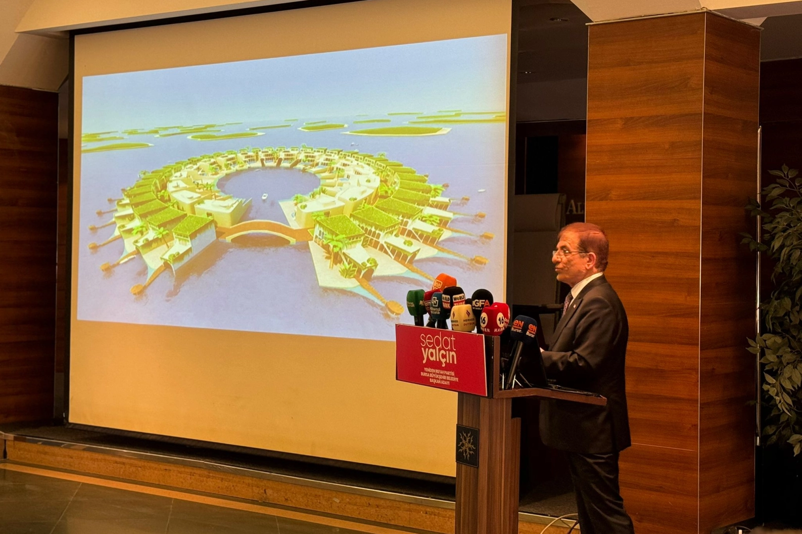 YRP Bursa Büyükşehir Belediye Başkan Adayı Sedat Yalçın, genişletilmiş 6. proje toplantısını Almira Hotel’de gerçekleştirdi. Yalçın, toplantıda; ilk 100 günde hayata geçirecekleri projeleri, şu ana kadar anlattığı projelerden öne çıkanları ve merak edilen soruların cevaplarını aktardı. İlk 100 gün projelerine ‘Bütün sorunumuz liyakat eksikliğidir’ diyerek başlayan Yalçın; “2. Gün Akademik Danışma Kurulu oluşturacağız. Bilmeden yaptığınız her iş yanlıştır. Bilimsel insanlar olacak. Hemen 3. gün emekliler için sosyal toplantı yapıyoruz. 4. gün kabaca Bursa'nın ana çerçevesini çiziyoruz. 7. gün bütçe toplantısı yapacağız. 8. gün halen devam eden projelerin incelemesini yapacağız. 9. gün kentsel planlama toplantısı, 10. gün kentsel ulaşım toplantısı, 11. gün afet yönetim planı değerlendirme toplantısı, 12. gün kentsel dönüşüm durum tespiti toplantısı yapacağız. Nasip olursa 5 yıl içerisinde çok ciddi bir nüfusun kırsala döneceğini görecekseniz” ifadesini kullandı.