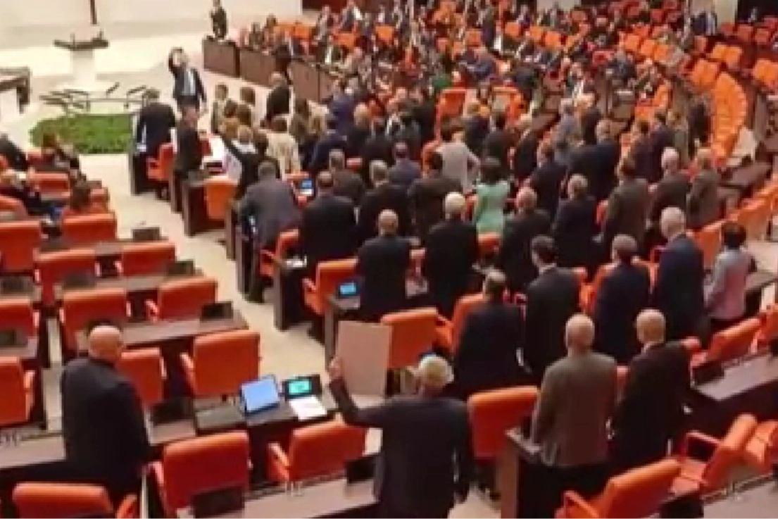 TBMM Genel Kurulu'nda AK Parti ile CHP arasında İstanbul Büyükşehir Belediyesi Başkanı İmamoğlu tartışması yaşandı. AK Parti İstanbul milletvekili Cüneyt Yüksel, Avrupa İnsan hakları Mahkemesi'nden toplantı yürüyüş ve gösterilere ilişkin örnek verdi. Daha sonra AK Parti Grup Başkanvekili Muhammet Emin Akbaşoğlu, İstanbul Büyükşehir Belediyesi'ni CHP'lilerin şikayet ettiğini söyledi. Bunun üzerine CHP Grup Başkanvekili Murat Emir MASAK raporlarının bir haftada hazırlandığını ve raporda komik ifadelerin olduğunu ifade etti. Akbaşoğlu, AK Parti'nin yargıya bir talimatı olmadığını eski belediye Başkanlarının kurultaya itiraz ettiğini sözlerine ekledi. Bunun üzerine CHP milletvekilleri ‘Darbeye hayır', ‘Kurtuluş yok, tek başına ya hep beraber ya hiç birimiz' şeklinde slogan attılar. TBMM başkanvekili Celal Adan oturuma beş dakika ara verdi.