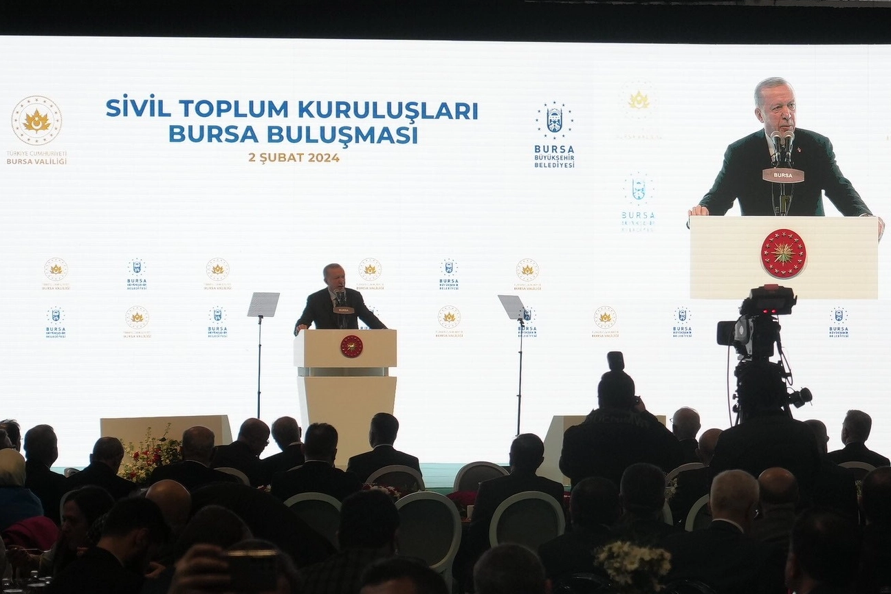 Samimiyetle ifade etmek isterim, bizim kanaatimize göre ortaya saçılanlar; buzdağının sadece görünen kısmıdır. Turpun büyüğü aslında hala heybededir. Tamamen siyaset mühendisliği ürünü olan altılı masa kurgusunun organizatörleri eninde sonunda ortaya çıkacaktır. Türkiye’nin ve Türk Milleti'nin verilmiş sadakası olduğunu gün geçtikçe göreceğiz" dedi. Bursa'da sivil toplum örgütlerinin ve iş dünyasının temsilcileri ile Merinos Atatürk Kongre Kültür Merkezi'nde biraraya gelen Cumhurbaşkanı Recep Tayyip Erdoğan, 28 Mayıs seçimlerinde yüzde 54 şahsına verilen desteğe teşekkür ederek, aynı desteği 31 Mart'ta Cumhur ittifakı olarak beklediklerini söyledi. Halkın ve iş dünyasının nabzını tutmaya büyük önem verdiklerini, şehirlerin sorunları, sıkıntıları ve talepleri konusunda ilk elden bilgiler aldıklarını kaydeden Cumhurbaşkanı Erdoğan, "İstişareyi siyaset tarzının merkezine yerleştirmiş bir kadro olarak toplumumuzun farklı kesimleriyle yakın diyalog içinde olmaya özen gösterdik. Gönüllü teşekküllerimizden vakıf ve derneklere kadar hangi siyasi görüşe sahip olursa olsun milletimizle yüz yüze iletişim çabasındayız. Seçim dönemlerini halkımızla gönül köprülerimizi güçlendirme vasıtasına dönüştürmeyi arzu ediyoruz. Sokağa çarşıya pazara tüm dikkatimizle kulak veriyoruz. Bu amaçla sanayicilerimizle diyalogumuzu daha da arttıracağız. Gençlerimizle daha sık bir araya geleceğiz, hanım kardeşlerimizi daha sık dinleyeceğiz. Milletin gündemiyle siyasetin ve hükümetin gündemine bir birine raptederek ülkemize hizmet mücadelemizi sürdüreceğiz. 21 yılı iktidarda olmak üzere 40 yıllık siyasi hayatımızın en önemli prensibi işte budur. Biz milletimiz için varız, milletimizle birlikte varız. Milletimizin olmadığı yerde biz de olmayız. Milletimizin sevinci nasıl bizim mutluluk kaynağımızsa derdi ve tasası da bizim öncelikli meselemizdir. Vatandaşımızın her problemine çözüm üretmeyi, taleplerini karşılamayı boynumuzun borcu görüyoruz. Bursa'nın da beklentilerine cevap verecek, sorunlarını giderecek, eksiklerini tamamlayacak şehrimizin önünde yeni bir ufuk ve vizyon çizecek olan yine bizleriz. İnşallah bunu da son 21 yıldır olduğu gibi yine birlikte gerçekleştireceğiz." dedi. "Bursa; Kandil ve Pensilvanya'dan medet umanlara geçit vermedi" Bursa’ya son olarak 14-28 Mayıs seçimlerinden önce 24 Nisan tarihinde geldiğini vurgulayan Erdoğan, "TOGG batarya fabrikasının temel atma törenini yapmıştık. Böylece tek kalemde toplam tutarı 30 milyar lirayı aşan stratejik yatırımı şehrimize ve Gemlik ilçemize kazandıracak olmamızın gururunu birlikte yaşamıştık. Türkiye’nin otomobili ve ilk elektrikli araç markası TOGG’a kulp takanlar bu yatırımdan rahatsızlıklarını dile getirmişlerdi. Muhalefet yapmayı, hizmete, esere, yatırıma düşmanlık gören kıyafetsiz muhterisleri kendi dünyalarında baş başa bırakıyoruz. “Fabrikası yok, araçlar İtalya’dan geliyor, bunlar elektrikli araç üretemezler, üretse bile satamazlar” iddiasında bulundukları, daha proje aşamasından itibaren tıpkı Devrim’e yaptıkları gibi bir bahane bulup diri diri mezara gömmek istedikleri TOGG Allah’a hamdolsun giderek artan üretim kapasitesi ile rakiplerini kıskandırmaya, hazımsızları rahatsız etmeye devam ediyor. Batarya fabrikamızın da şehrimize hayırlı olmasını diliyorum. Bugüne kadar bizleri asla yalnız bırakmayan Bursa ülkemiz açısından hayati öneme haiz 14-28 Mayıs seçimlerinde yine güçlü bir duruş sergiledi. İlk turda yüzde 51,5 oy oranı, ikinci turda 54.7 oy oranıyla şahsımıza olan teveccühünü çok net bir şekilde ortaya koydu. Orhangazi’nin şehri Bursa; iktidara gelmek için Kandil ve Pensilvanya’dan medet umacak kadar ihtiras kurbanı olanlara geçit vermedi. Bursa “güven ve istikrar” dedi. Ülkemizle ilgili farklı hesapları olanlar Bursa’nın da desteğiyle çok ağır bir hüsrana uğradı. Seçimlerden bu yana yaşananlara baktığımızda Bursalı kardeşlerimizin ne kadar doğru, isabetli, basiretli bir tercih yaptıklarını çok net görebiliyoruz. İşte sizler de takip ediyorsunuz. 8 ay öncesine kadar Türkiye’yi birlikte yönetmekten bahsedenler, bugün birbirlerine demediklerini bırakmıyorlar" ifadelerini kullandı "Turbun büyüğü heybede" 8 ay önce 85 milyonu kucaklaştırmaktan dem vuranların, bugün sabah akşam kavga ettiğini hatırlatan Cumhurbaşkanı Recep Tayyip Erdoğan, "Önce millete umut diye pazarladıkları Cumhurbaşkanı adaylarını, ellerine ilk geçirdikleri fırsatta siyasetten zorla emekli ettiler. Etrafında pervane oldukları Bay Kemal’e cüzzamlı muamelesi yaptılar. Ardından bu sefer kendi aralarında paylaşım kavgasına tutuştular. Gün geçmiyor ki milletçe yüzümüzü kızartacak bir skandala, itirafa, bütün bunlarla birlikte skandallara, gençlerimizin siyaset kurumunu zedeleyen ayak oyununa şahit olmayalım. Ülkemiz siyaseti adına üzüntü verici günlerden geçiyoruz. Samimiyetle ifade etmek isterim, bizim kanaatimize göre ortaya saçılanlar; buzdağının sadece görünen kısmıdır. Turpun büyüğü aslında hala heybededir. Tamamen siyaset mühendisliği ürünü olan altılı masa kurgusunun organizatörleri eninde sonunda ortaya çıkacaktır. Türkiye’nin ve Türk milletinin verilmiş sadakası olduğunu gün geçtikçe göreceğiz. Siyasi rakiplerimizin elbette kendilerini böyle bir duruma düşürmesini arzu etmeyiz. Toplumumuzun belli kesimlerinde yayılan karamsarlık dalgasını, demokrasimiz adına ürkütücü buluyoruz. Siyaset kurumunun görevi umut aşılamaktır. Ülkemiz ve demokrasimize ağır faturaları olacaktır. Biz böyle bir tablonun oluşmaması için elimizden gelmeye devam edeceğiz" şeklinde konuştu.