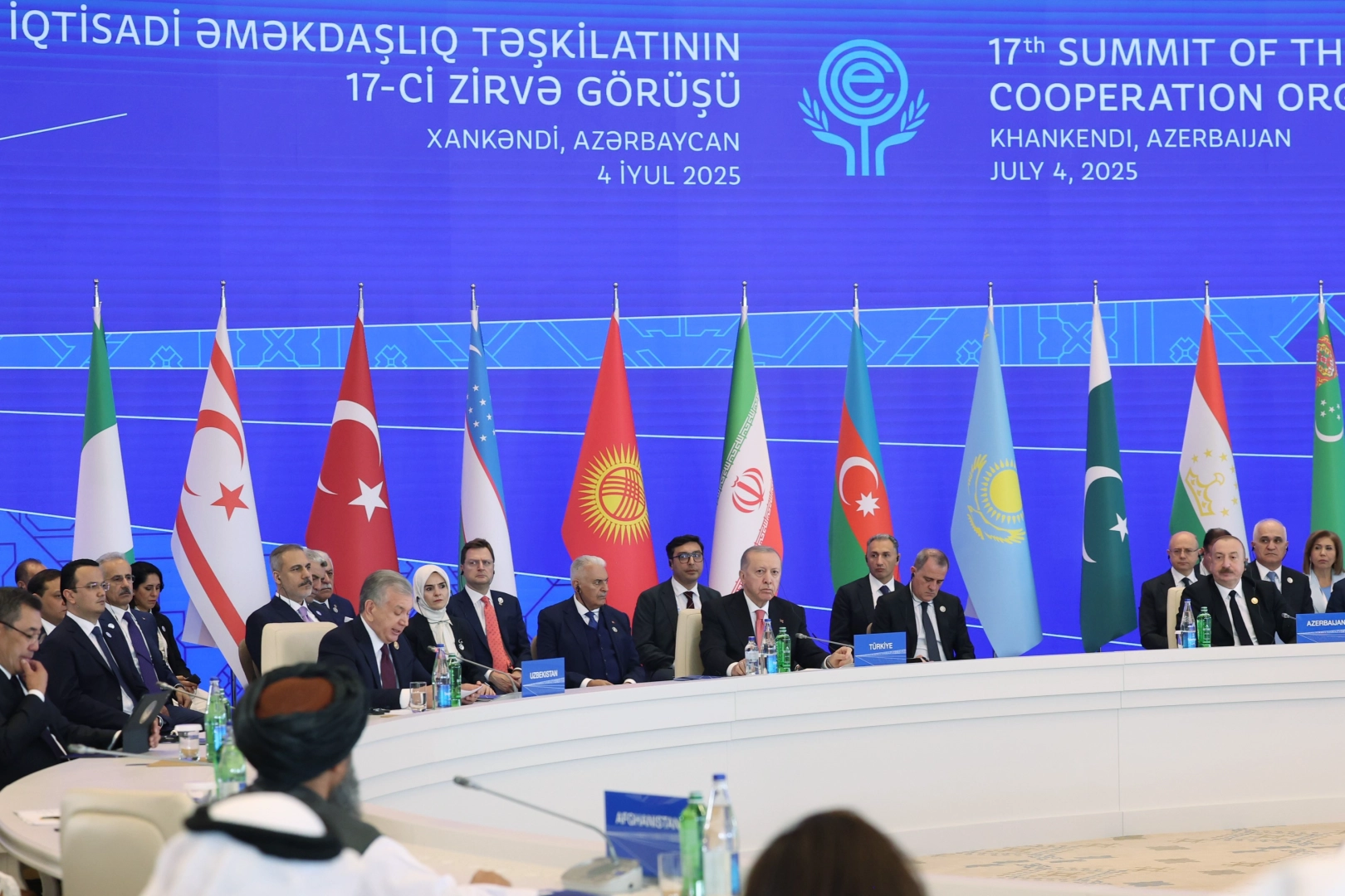 Biz ne Filistin davasını terk edebiliriz ne de Netanyahu yönetiminin bölgemizi kan gölüne çevirmesine sessiz kalabiliriz" dedi. Ekonomik İşbirliği Teşkilatı (EİT) 17. Zirve Toplantısı, Azerbaycan Cumhurbaşkanı İlham Aliyev'in ev sahipliğinde Azerbaycan'ın Hankendi şehrinde gerçekleştirildi. Zirveye katılan Cumhurbaşkanı Recep Tayyip Erdoğan, gerçekleştirdiği konuşmasında toplantının işgalden kurtarılan Hankendi şehrinde yapılması önemli bir anlam kazandırdığını söyleyen Cumhurbaşkanı Erdoğan, "İlham kardeşimin vizyoner yaklaşımıyla bu kadim şehrin Kafkasların yeni kalkınma ve barış merkezi olacağına gönülden inanıyorum. Bugünkü istişarelerimizin ve 1 Temmuz'dan bu yana gerçekleştirilen kadın, gençlik ve iş konulu forumların ülkelerimiz ve bölgelerimiz için hayırlara vesile olmasını temenni ediyorum. Ticaretten ulaştırmaya, çevreden enerjiye geniş bir yelpazede potansiyele sahip teşkilatımızın bu zirvesini iklim değişikliğine odaklanmasını son derece isabetli buluyorum. İklim krizinin menfi etkilerinin en yoğun hissedildiği bölgelerin başında geliyoruz. Tüm üye ülkelerin iklim değişikliğini merkeze alan sürdürülebilir kalkınma vizyonuna katkı sağlamaları özellikle bu dönemde önem arz ediyor" dedi. "YAKLAŞIK 6 MİLYON TON SERA GAZI EMİSYONUNUN ÖNÜNE GEÇTİK" Türkiye olarak 2053 yılı için net sıfır emisyona ulaşma ve yeşil kalkınma vizyonlarını gerçekleştirme yolunda kilit sektörlerini geliştirmeye devam ettiklerini belirten Erdoğan, "Bilhassa enerji alanında yenilikçi girişimlerimizle yenilenebilir enerjinin toplam kurulu güç içerisindeki payını yüzde 59'a çıkardık. Bu oranla Avrupa'da 5'inci dünyada 11. sıraya yükseldik.2024, 2030 yıllarını kapsayan Ulusal Enerji Verimliliği Eylem Planımızla 100 milyon ton karbondioksit eş değeri emisyon azaltımı öngörüyoruz. İklim kanunumuz önceki gün meclisimizde kabul edildi. Eşim Emine Erdoğan'ın himayesinde küresel düzeye taşınan sıfır atık projesi iklim değişikliğiyle mücadelemize ilave güç katıyor. Projenin başlangıcından bu yana yaklaşık 6 milyon ton sera gazı emisyonunun önüne geçtik. Birleşmiş Milletler İklim Değişikliği 31. Taraflar Konferansı (COP) ev sahipliğimiz onaylandığında gelişmiş ve gelişmekte olan ülkeler arasında adil, sürdürülebilir, şeffaf ve kapsayıcı bir yaklaşımı hakim kılmanın gayreti içerisinde olacağız. Türkiye güçlü tecrübesini ve en iyi uygulama örneklerini teşkilatımızla paylaşmaya hazırdır. Bu vesileyle Azerbaycan'da teşkil edilecek temiz enerji ve araştırma merkezleri kurucu belgelerinin onay sürecinin ülkemizde son aşamada olduğunu da sizlerle paylaşmak istiyorum. Teşkilatımızın başlıca işbirliği alanı olan ekonomi ve ticarette vizyonumuzu daha da geliştirmek mecburiyetindeyiz. 100 milyar dolarlık bölgesel ticaret hacmi hedefimizi daha yüksek rakamlara taşıyacak adımları hep birlikte atmalıyız" ifadelerini kullandı. "SEKRETERYAMIZI DESTEKLEYECEK ADIMLARI DA HEP BİRLİKTE ATACAĞIMIZA İNANIYORUM" 5. Ticaret Bakanları Toplantısı'nın mümkün olan ilk fırsatta düzenlenmesine büyük önem atfettiğini belirten Cumhurbaşkanı Erdoğan, konuşmasını şu şekilde sürdürdü: "Teşkilatımızın önümüzdeki 10 yılını şekillendirecek ekonomik işbirliğinin stratejik hedefleri 2035 belgesinin bizler için aynı zamanda bir yol haritası sunacağını düşünüyorum. Bu süreçte teşkilatımızın günümüzün dinamikleri ve ihtiyaçlarıyla uyumlu bir yapıya kavuşturulması da kaçınılmazdır. Bu minvalde uzun süredir ilerleme kaydedemediğimiz konulardan başlamak üzere işbirliği süreçlerinde sadeleştirmeye gitmek suretiyle teşkilatımızın etkinliğinin arttırılması müşterek menfaatimize olacaktır. Aynı şekilde bu sadeleşme bağlı kuruluşlarımızda da gerçekleştirilmelidir. Bu hususlar çerçevesinde şekillendireceğimiz 2035 vizyon belgemizden temel beklentimiz ekonomik ve ticari işbirliğinin ilerletilmesidir. Sekreteryamızı destekleyecek adımları da hep birlikte atacağımıza inanıyorum. Ekonomi ve ticaretin yanı sıra turizm alanındaki işbirliği de teşkilatımıza ayrı bir ödev yüklemektedir. 2025 yılı turizm başkenti Erzurum'da yapılan 6. Turizm Bakanları toplantısında alınan kararların bizlere ışık tutacağına inanıyorum. Program kapsamında Erzurum'da uluslararası düzeyde birçok önemli etkinlik başarıyla düzenlendi. Bunlar yıl sonuna kadar devam edecek. Bu vesileyle Şuşa'nın 2026 yılı Ekonomik İşbirliği Teşkilatı turizm başkenti seçilmesi dolayısıyla Cumhurbaşkanı dostum İlham Aliyev'in şahsında tüm Azerbaycanlı kardeşlerimizi tebrik ediyorum.