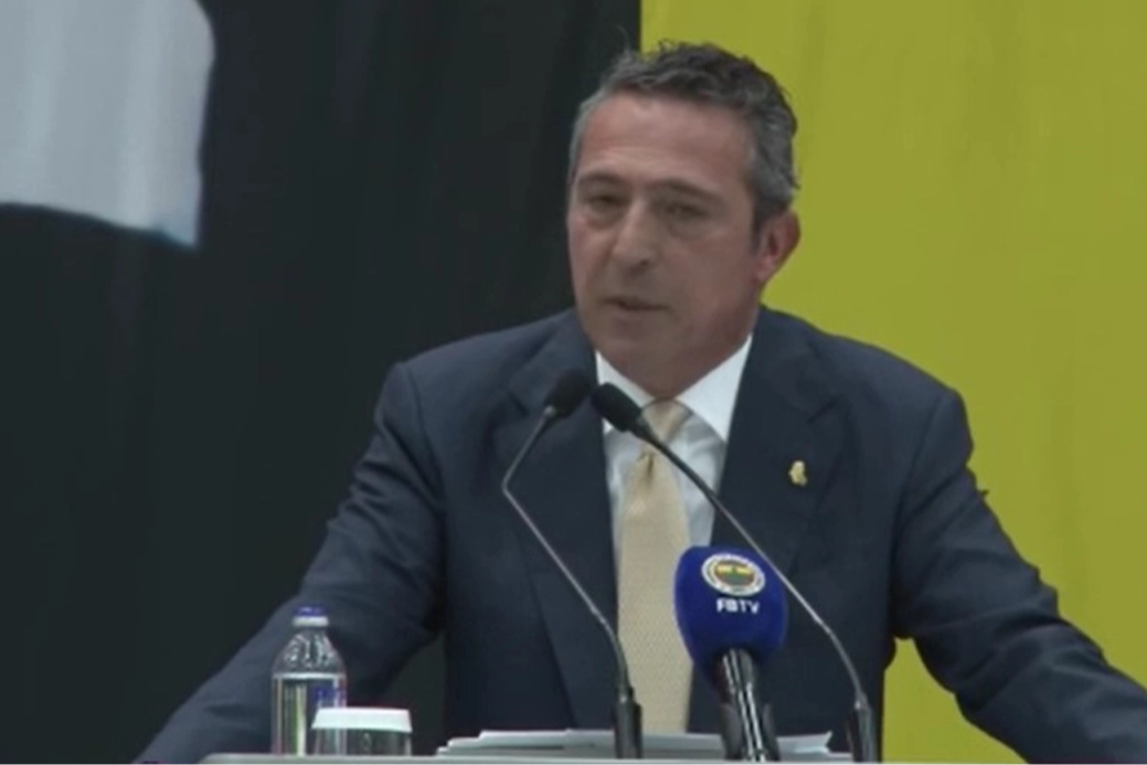 Bu açıklamanın ardından Aziz Yıldırım, kürsüde bulunan Ali Koç’un yanına giderek, tokalaştı.