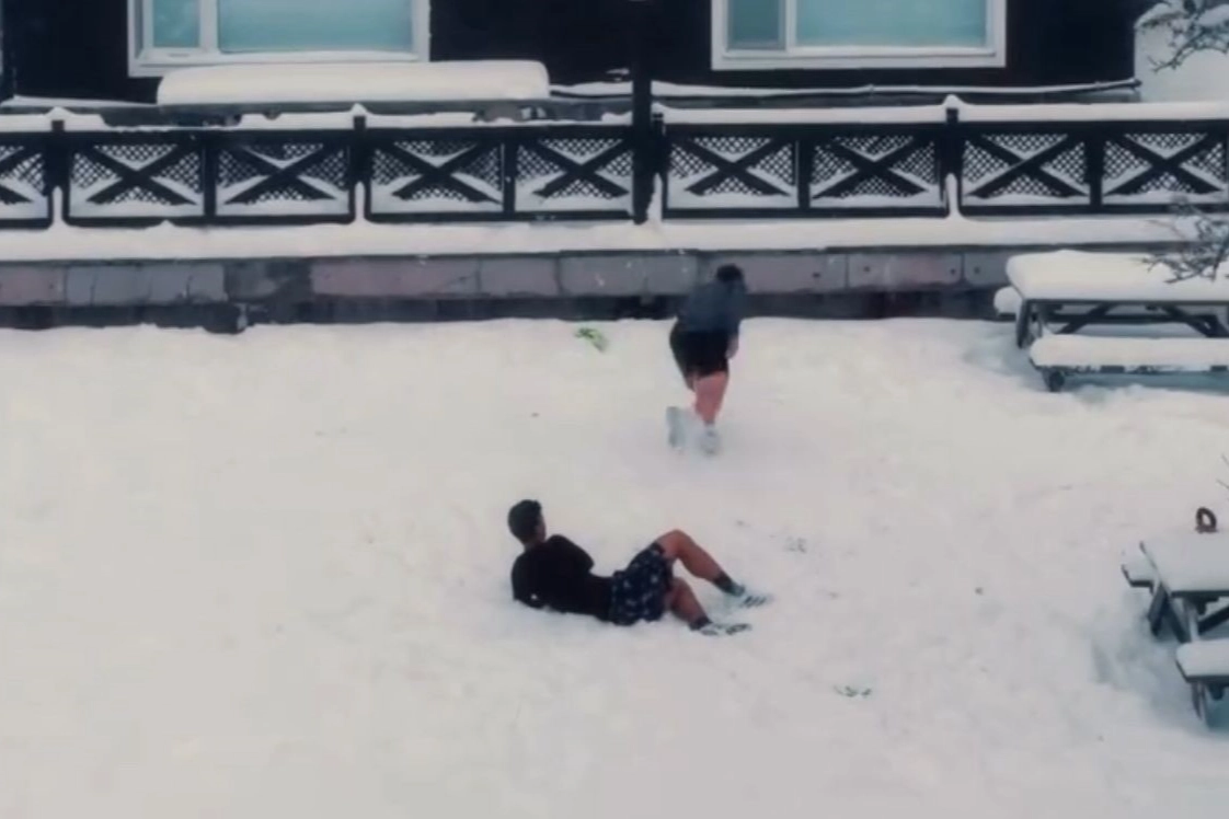 Gölcük Tabiat Parkı'nda konaklayan genç yıldız, kar yağışı altında arkadaşıyla futbol oynadığı anları, "Karın keyfini yine çocuklar çıkardı" notuyla paylaştı.