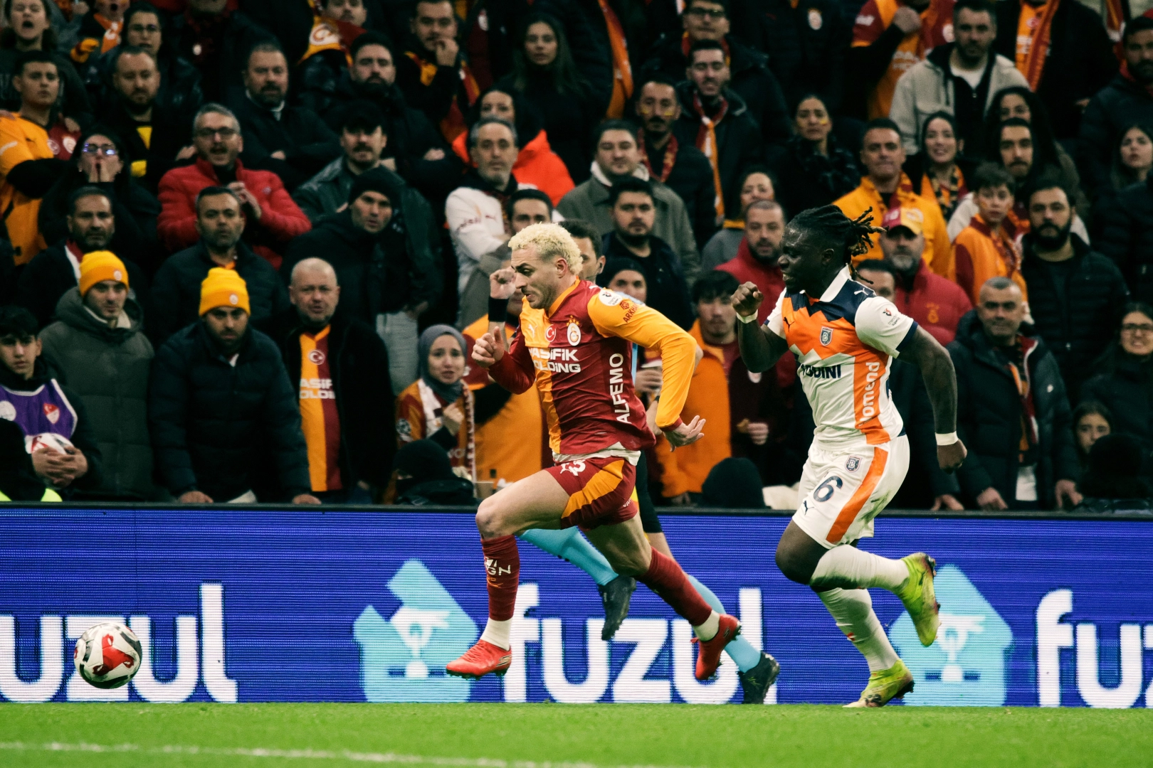 Maçtan dakikalar (İkinci yarı) 47. dakikada sağ kanattan Lang’ın yaptığı ortada savunmada Shomurodov’un kafayla uzaklaştırmak istediği topu önünde bulan Sallai’nin altıpasın önünde dönerek yaptığı vuruşta kaleci Muhammed Şengezer meşin yuvarlağı kornere çeldi. 56. dakikada Ebosele’ye kendi yarı alanı sağ tarafından Sallai’ye yaptığı müdahalenin ardından hakem Batuhan Kolak, ikinci sarıdan kırmızı kartla oyun alanı dışına gönderdi. 57. dakikada sağ kanattan Lang’ın kullandığı serbest vuruşta, arka direkte Singo’nun yaptığı vuruşta meşin yuvarlağı filelere gönderdi. 1-0 64. dakikada sağ kanattan Barış Alper Yılmaz’ın yaptığı ortada ceza sahası içi sol çaprazdan Osimhen’in yaptığı röveşata vuruşta meşin yuvarlak üst direğe çarpıp oyun alanına geri döndü. 66. dakikada Yunus Akgün’ün savunma arkasına attığı pasta göğsüyle topu kontrol eden Osimhen, altıpasın sağ tarafından yaptığı vuruşta savunmaya da çarpan meşin yuvarlak yakın köşeden ağlara gitti. 2-0 84. dakikada Lang’ın savunma arkasına attığı pasta topla buluşan Yunus Akgün, pasını Nhaga’ya çıkardı. Bu oyuncunun altıpasın gerisinden boş kaleye yaptığı vuruşta meşin yuvarlak ağlara gitti. Ancak yardımcı hakemin ofsayt bayrağını kaldırmasının ardından pozisyon VAR’da incelendi. Yapılan kontrol sonrası ofsayt olmadığı tespit edilince gol geçerli sayıldı. 3-0 90. dakikada sol kanattan Eren Elmalı’nın ortasında, ön direkte Icardi’nin kafa vuruşunda kaleci Muhammed Şengezer meşin yuvarlağı iki hamlede kontrol etti. Stat: RAMS Park Hakemler: Batuhan Kolak, Çağlar Uyarcan, Kerem Ersoy Galatasaray: Uğurcan Çakır, Sallai (Nhaga dk. 82), Sanchez, Singo (Kaan Ayhan dk. 79), Eren Elmalı, Torreira (Boey dk. 74), Sara, Barış Alper Yılmaz (İlkay Gündoğan dk. 74), Yunus Akgün, Lang, Osimhen (Icardi dk. 75) Yedekler: Günay Güvenç, Jakobs, Ahmed Kutucu, Asprilla, Lemina Teknik Sorumlu: İrfan Saraloğlu Başakşehir: Muhammed Şengezer, Ömer Ali Şahiner, Duarte, Opoku, Ebosele, Kemen, Umut Güneş (Onur Ergün dk. 79), Yusuf Sarı (Onur Bulut dk. 59), Shomurodov (Crespo dk. 70), Brnic (Ba dk. 58), Selke (Bertuğ Yıldırım dk. 70) Yedekler: Doğan Alemdar, Berat Özdemir, Nuno da Costa, Kaluzinski, Harit Teknik Direktör: Nuri Şahin Goller: Singo (dk. 57), Osimhen (dk. 66), Nhaga (dk. 84) (Galatasaray) Kırmızı kart: Ebosele (dk. 56) (Başakşehir)