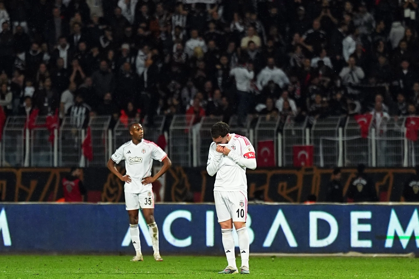 Trendyol Süper Lig’in 19. haftasında Beşiktaş, deplasmanda Eyüpspor ile 2-2 berabere kaldı. Siyah-beyazlı taraftarlar, maç içinde ve müsabakanın sona ermesinin ardından yaptıkları tezahüratlarla transferlerin gecikmesine tepki gösterdi. Beşiktaş taraftarı, ‘Transferler nerede?’ ‘Serdal Adalı, Beşiktaş nerede?’, ‘Yönetim istifa’ ve ‘Trnasfer yapmayın bırakın gidin’ tezahüratlarıyla yönetime tepkilerini dile getirdi.