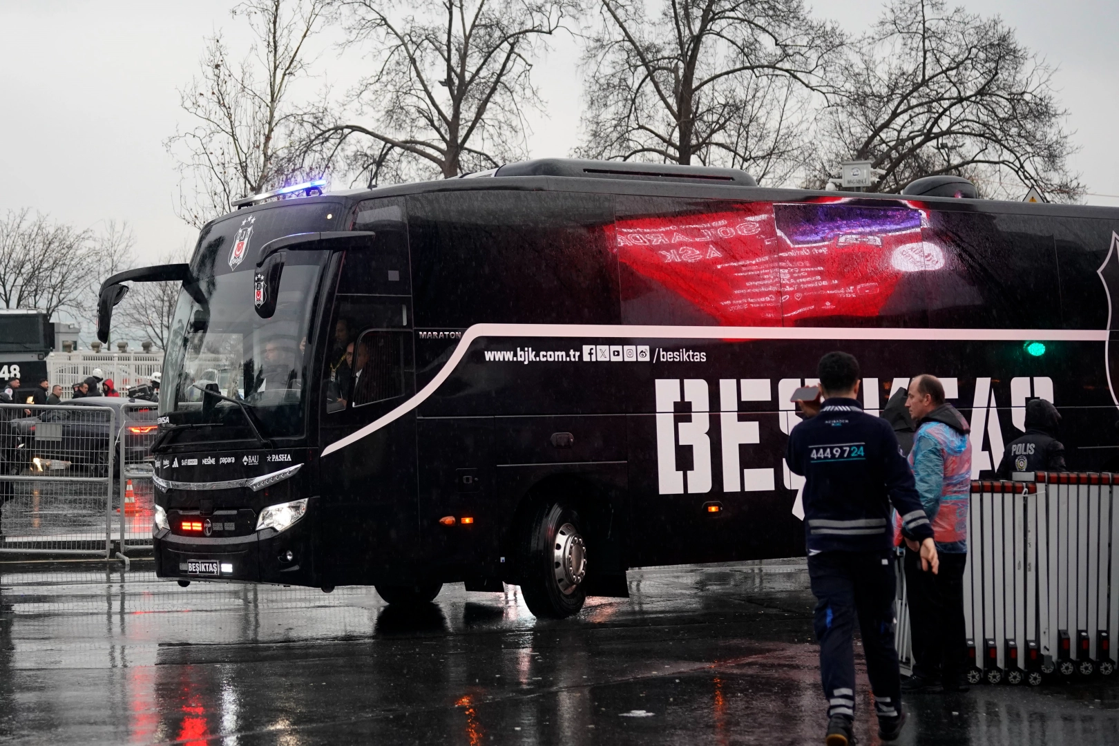 Trendyol Süper Lig’in 24. haftasında Beşiktaş, saat 19.00’da başlayacak müsabakada Trabzonspor’u ağırlayacak. Siyah beyazlılar, Ümraniye Nevzat Demir Tesisleri’nden ayrılarak Tüpraş Stadyumu’na geldi. Siyah-beyazlı kafile, yoğun güvenlik önlemleri altında stadyuma girdi.